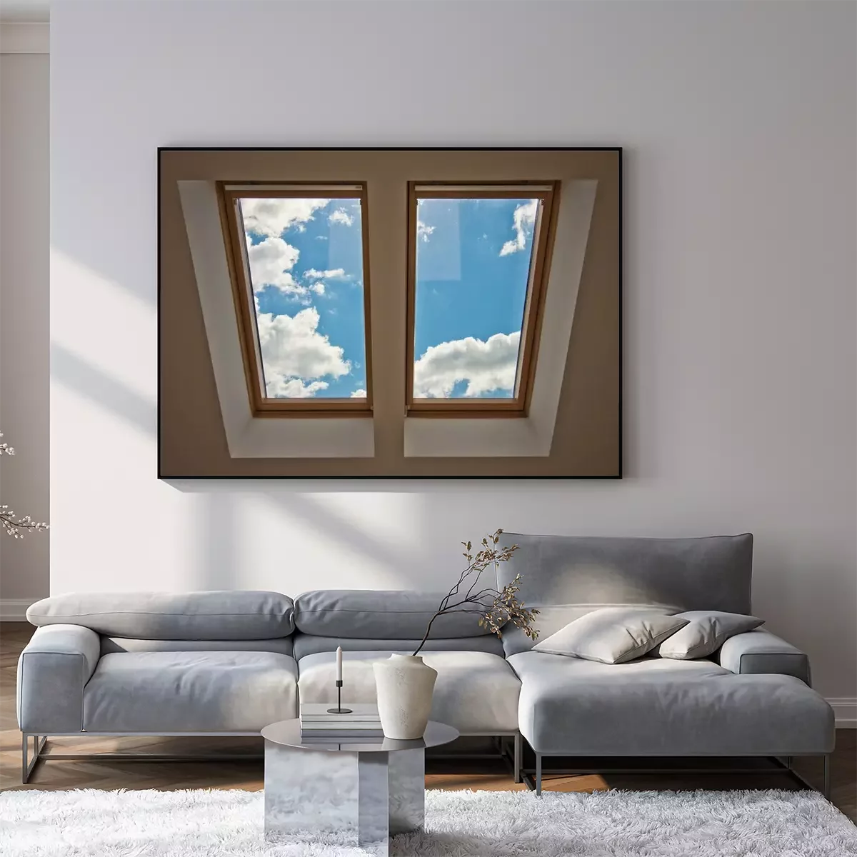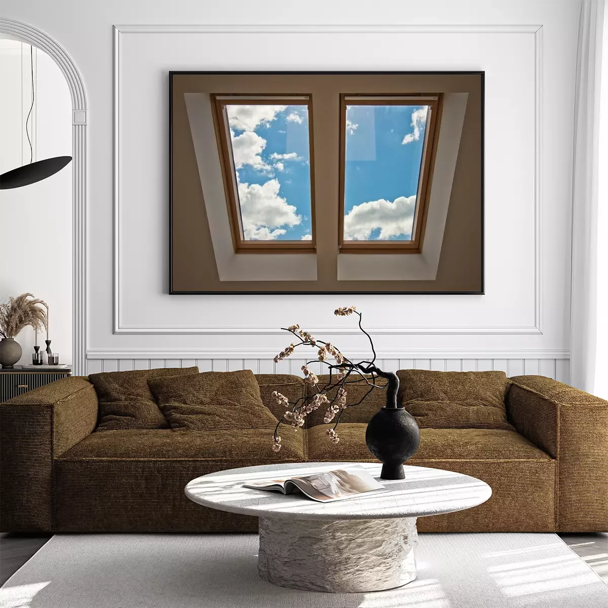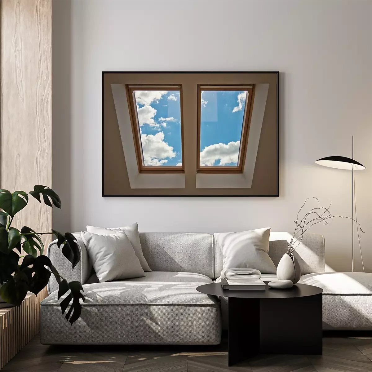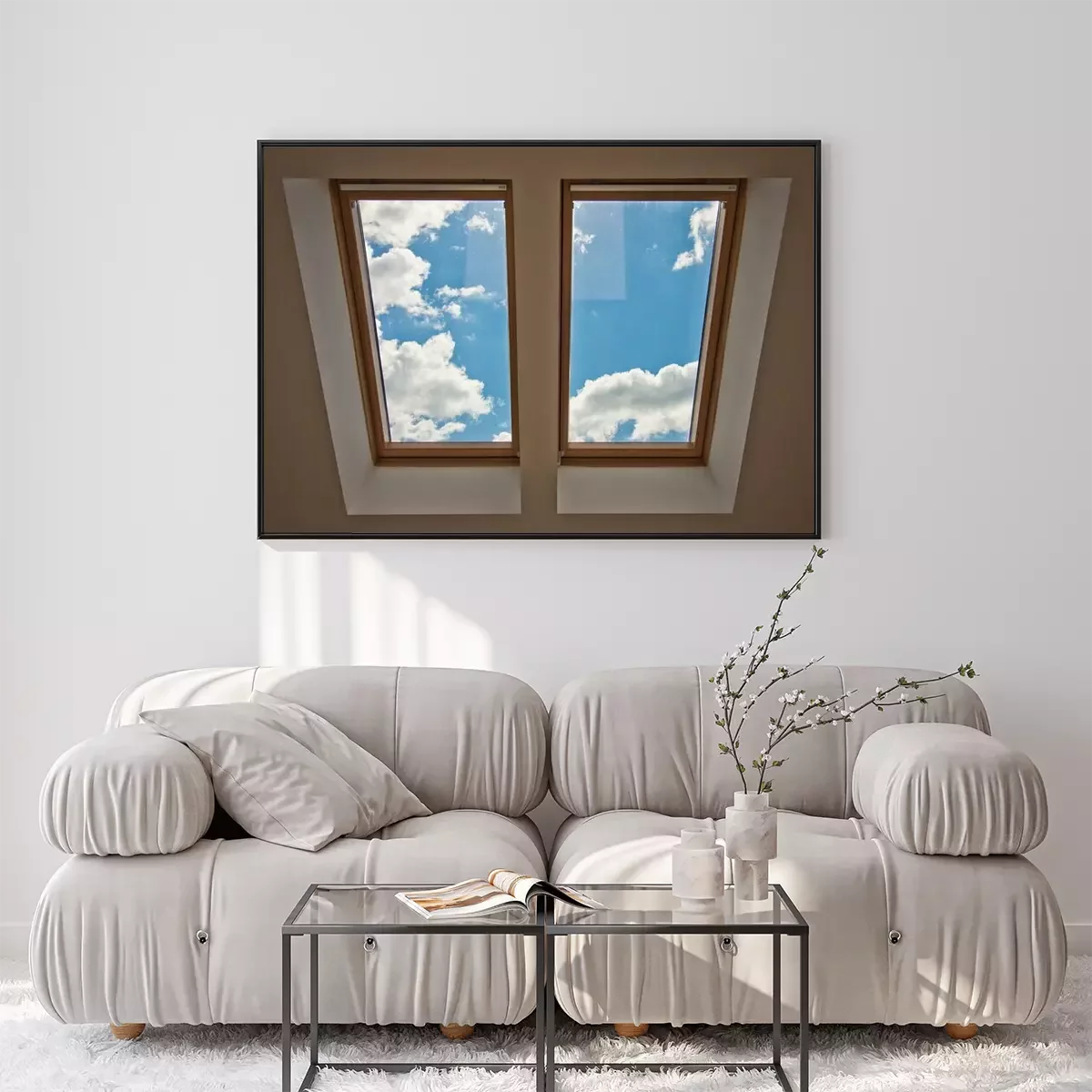 Poster: Uitzicht op de heldere lucht vanuit het dakraam