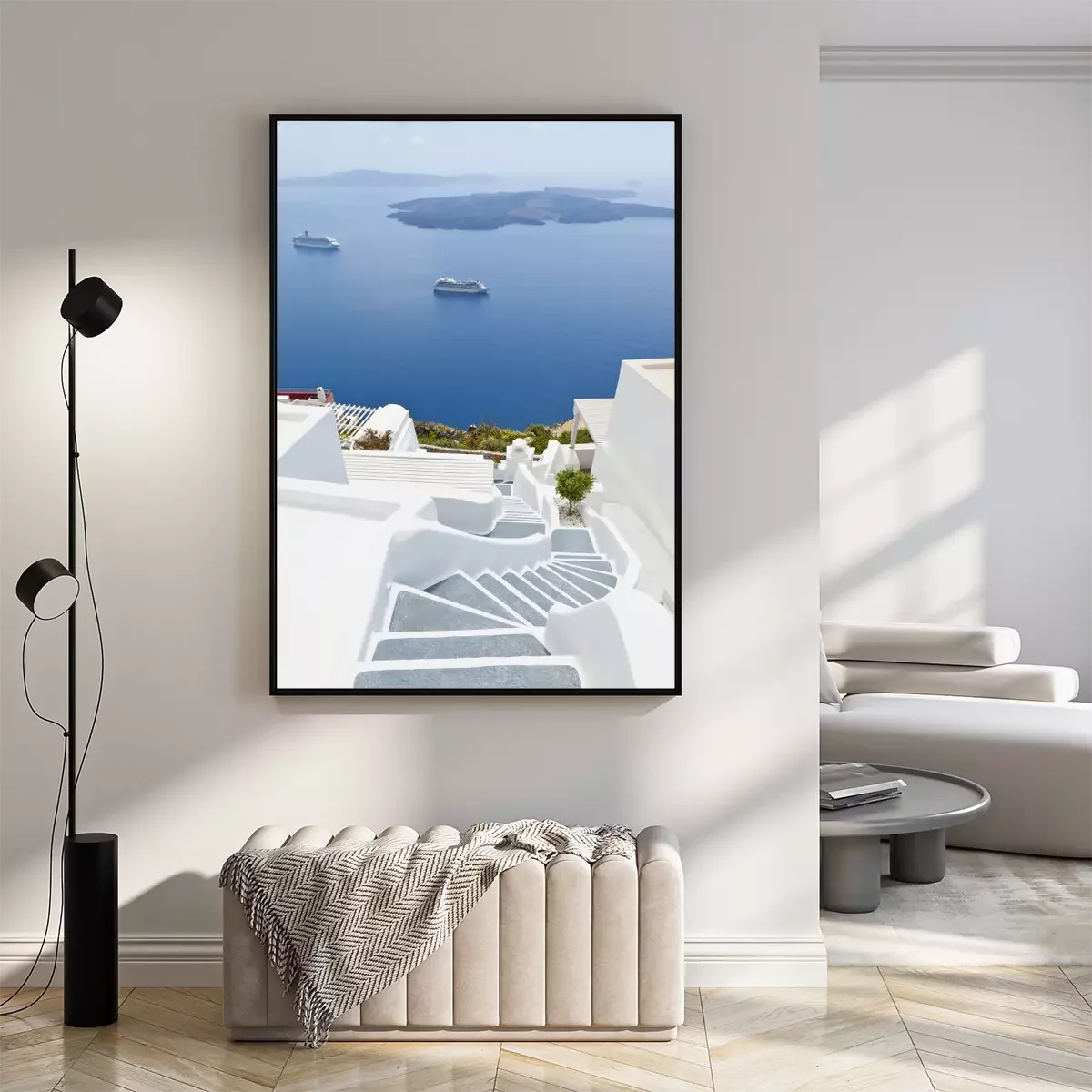 Poster: Uitzicht vanaf een hoogte op Santorini