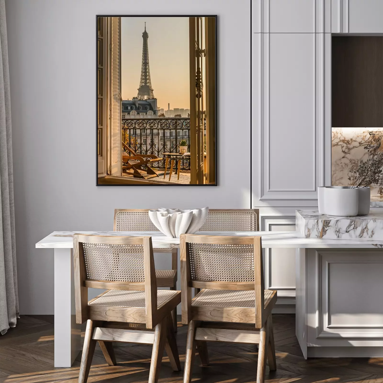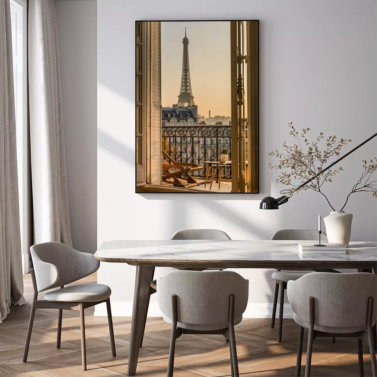 Poster: Uitzicht vanuit het raam op de Eiffeltoren in Parijs