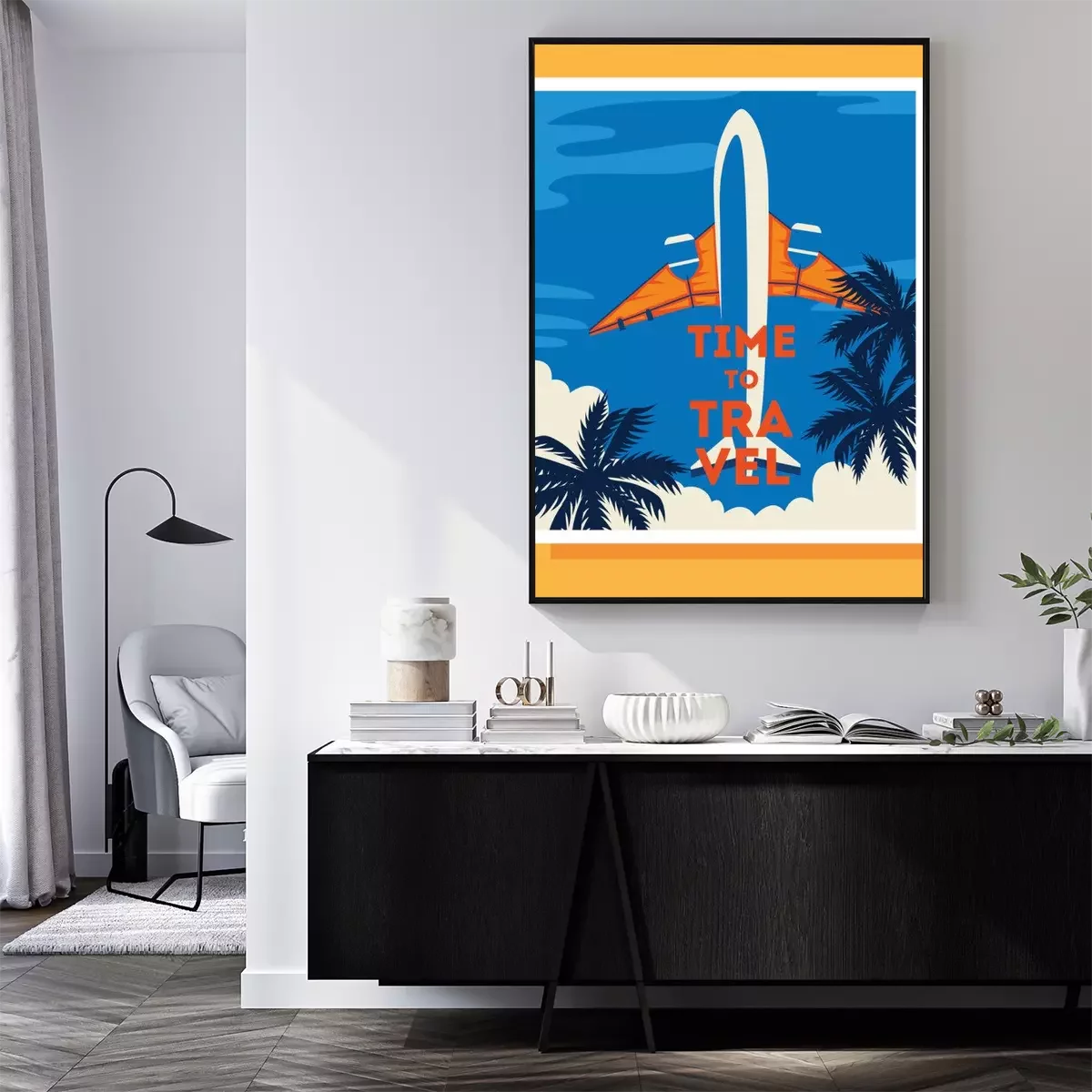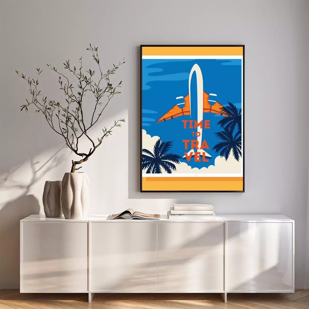 Poster: Vakantie ansichtkaart over reizen per vliegtuig