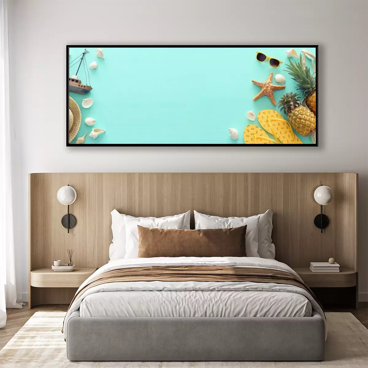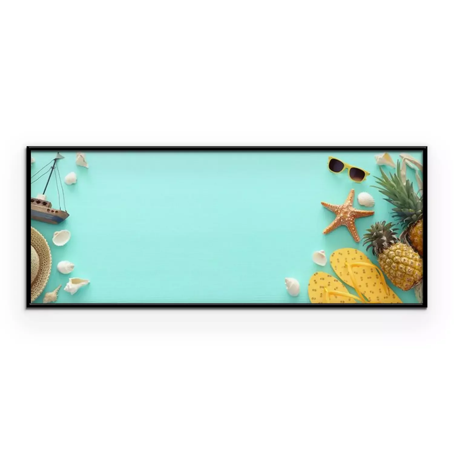 Poster: Vakantiemotieven op een blauwe achtergrond