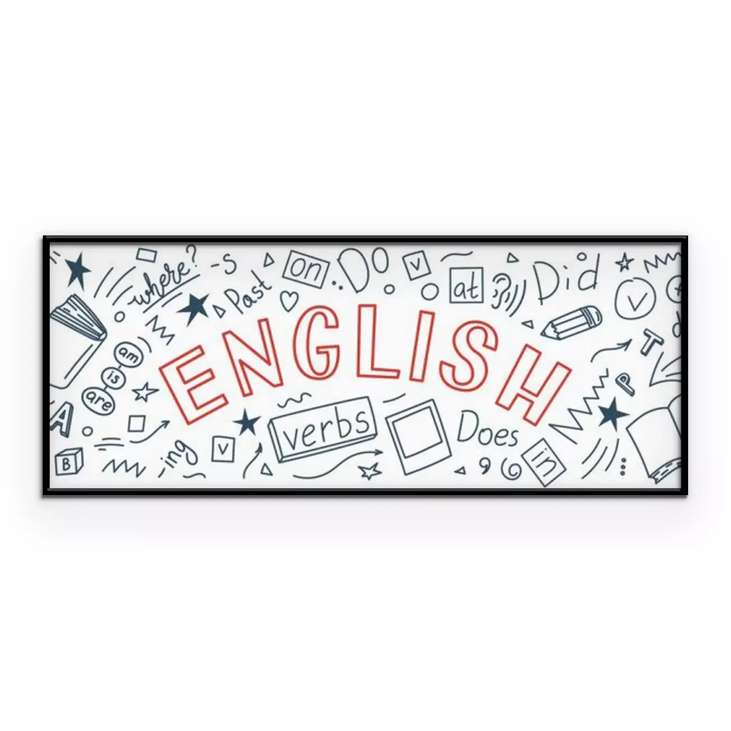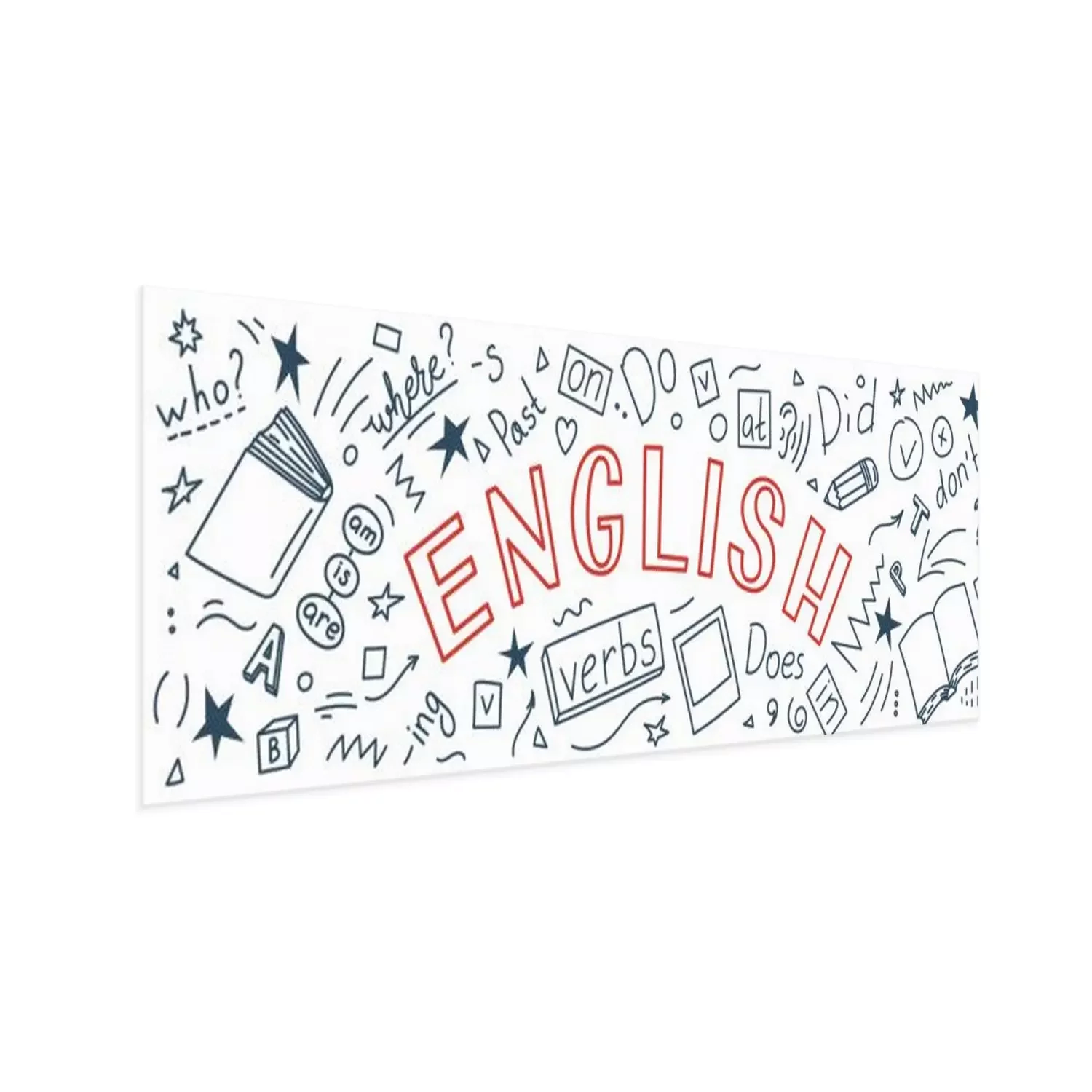 Engels. Open boek met taal hand getrokken doodles en belettering op witte achtergrond. Onderwijs vectorillustratie.