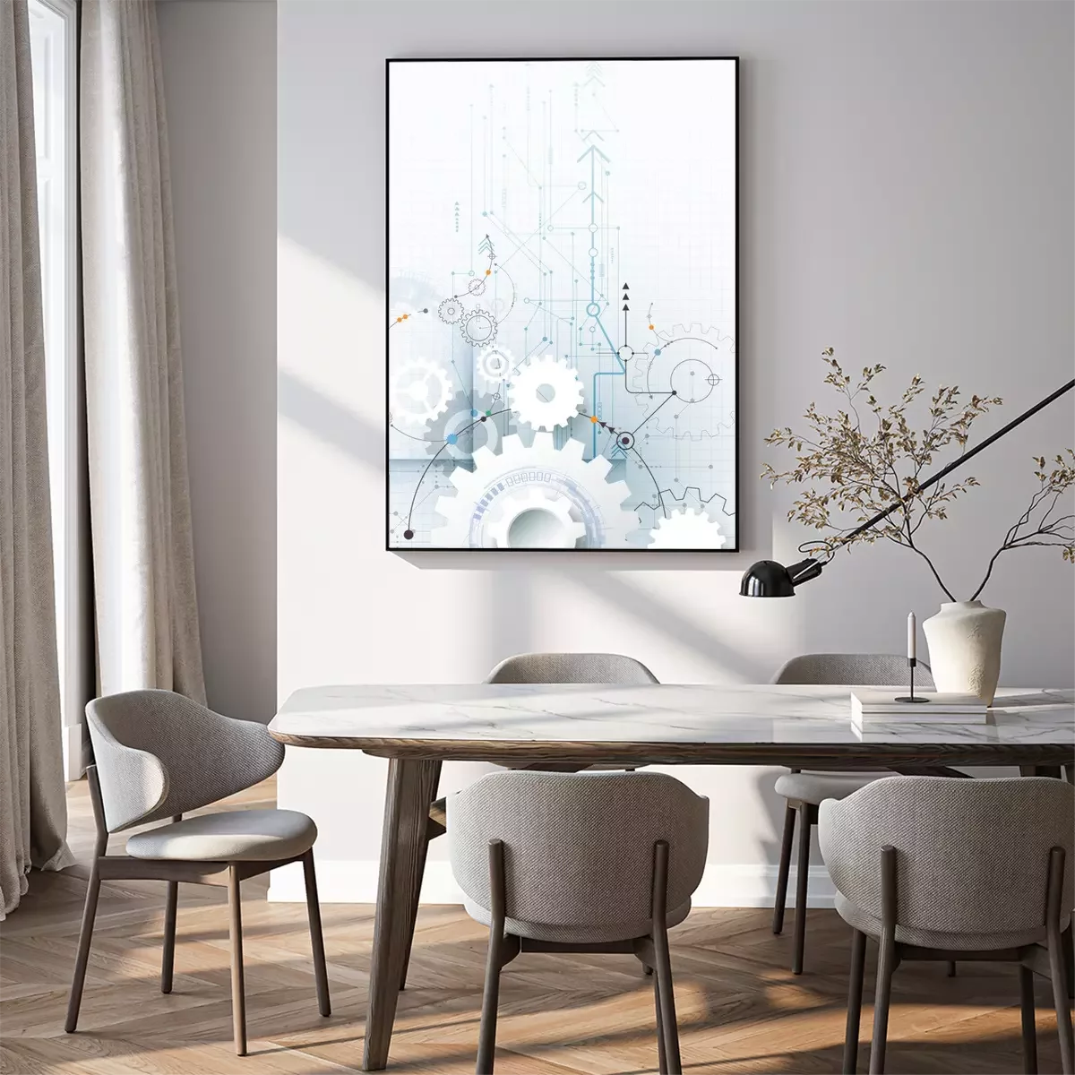 Poster: Vector illustratie tandwiel, zeshoeken en printplaat, Hi-tech digitale technologie en engineering, digitale telecom-technologie concept. Abstracte futuristische op lichte blauwe kleur achtergrond