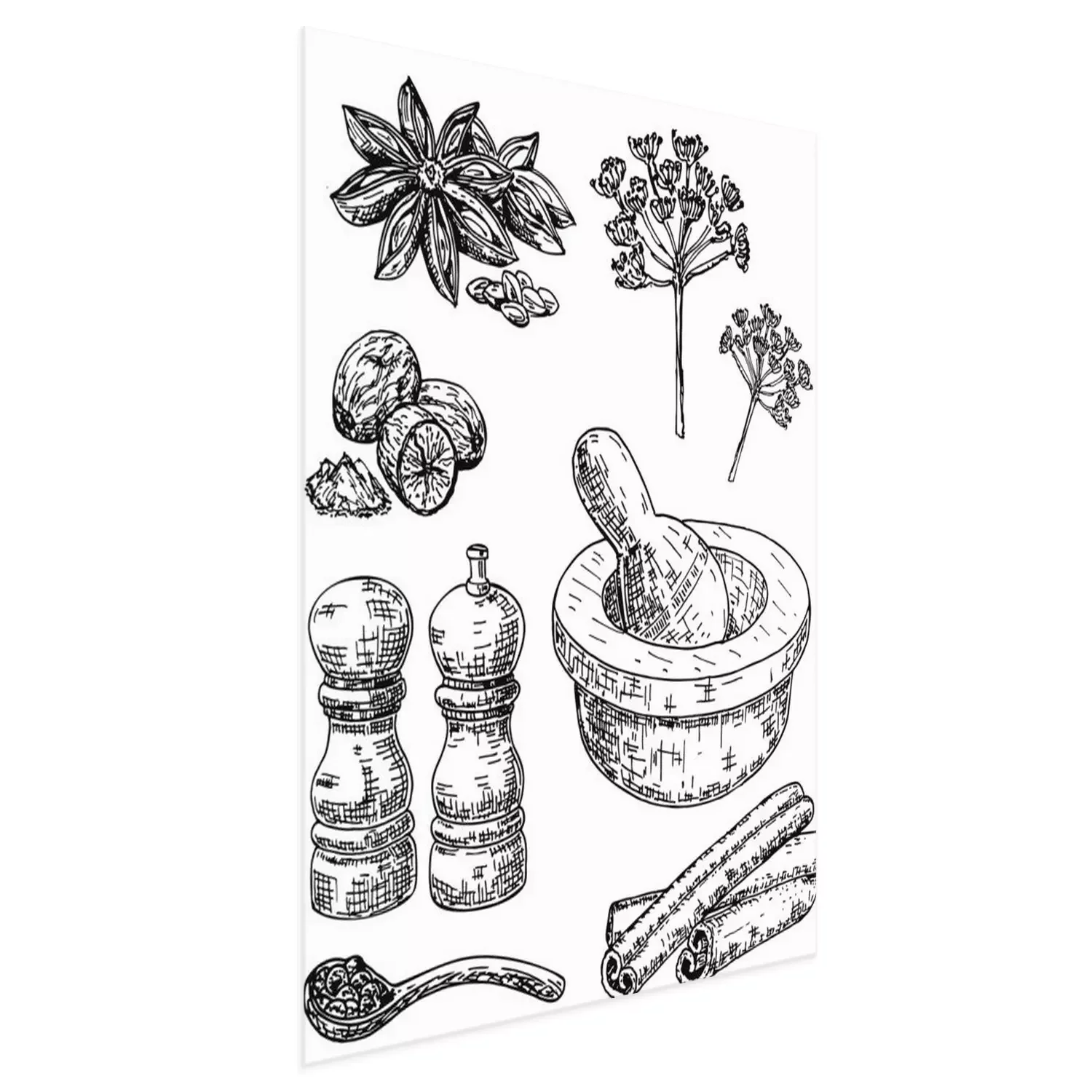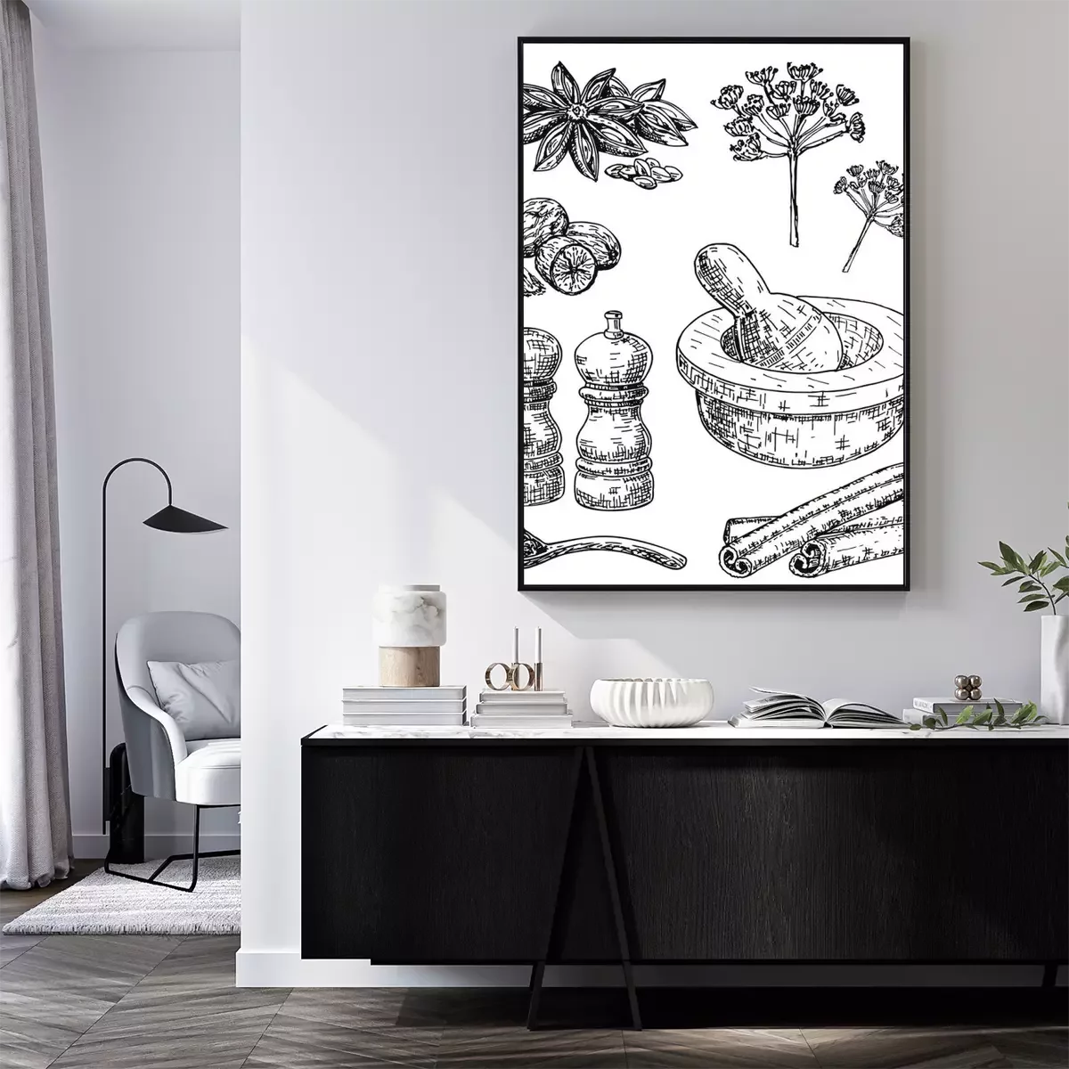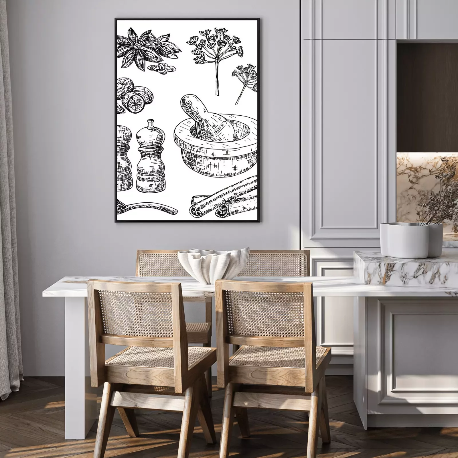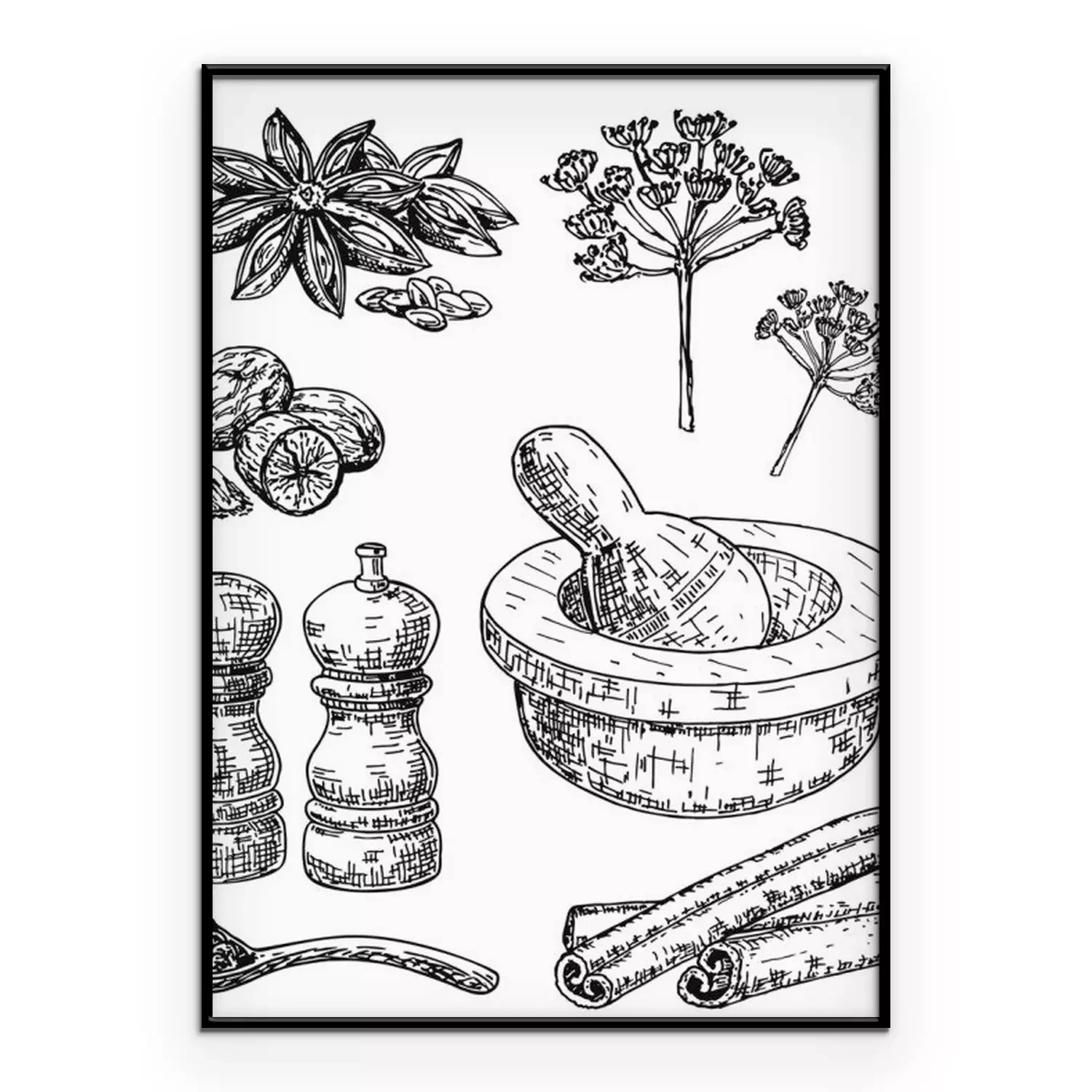 Poster: Vector inkt hand getrokken culinaire kruiden en specerijen set