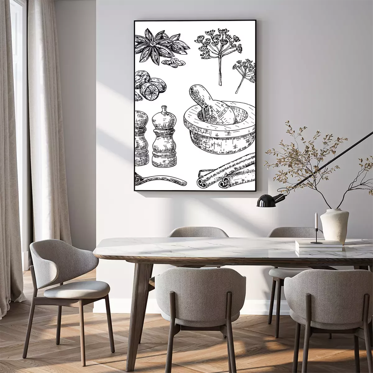 Poster Vector inkt hand getrokken culinaire kruiden en specerijen set