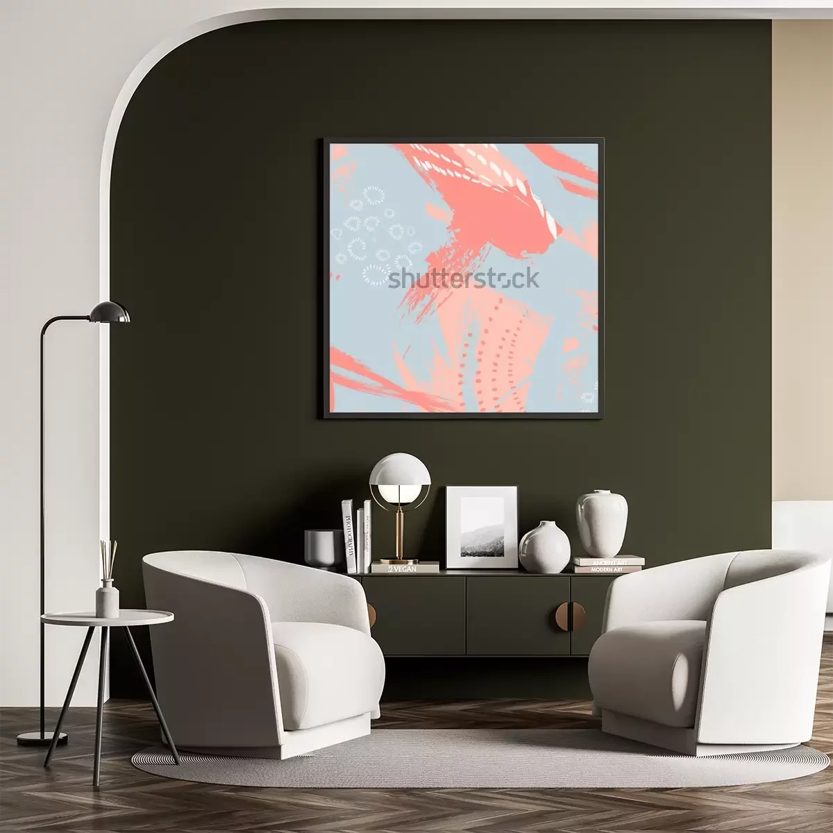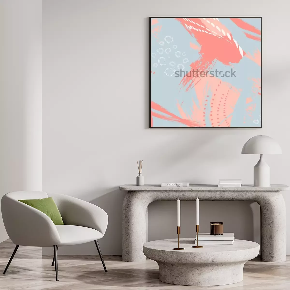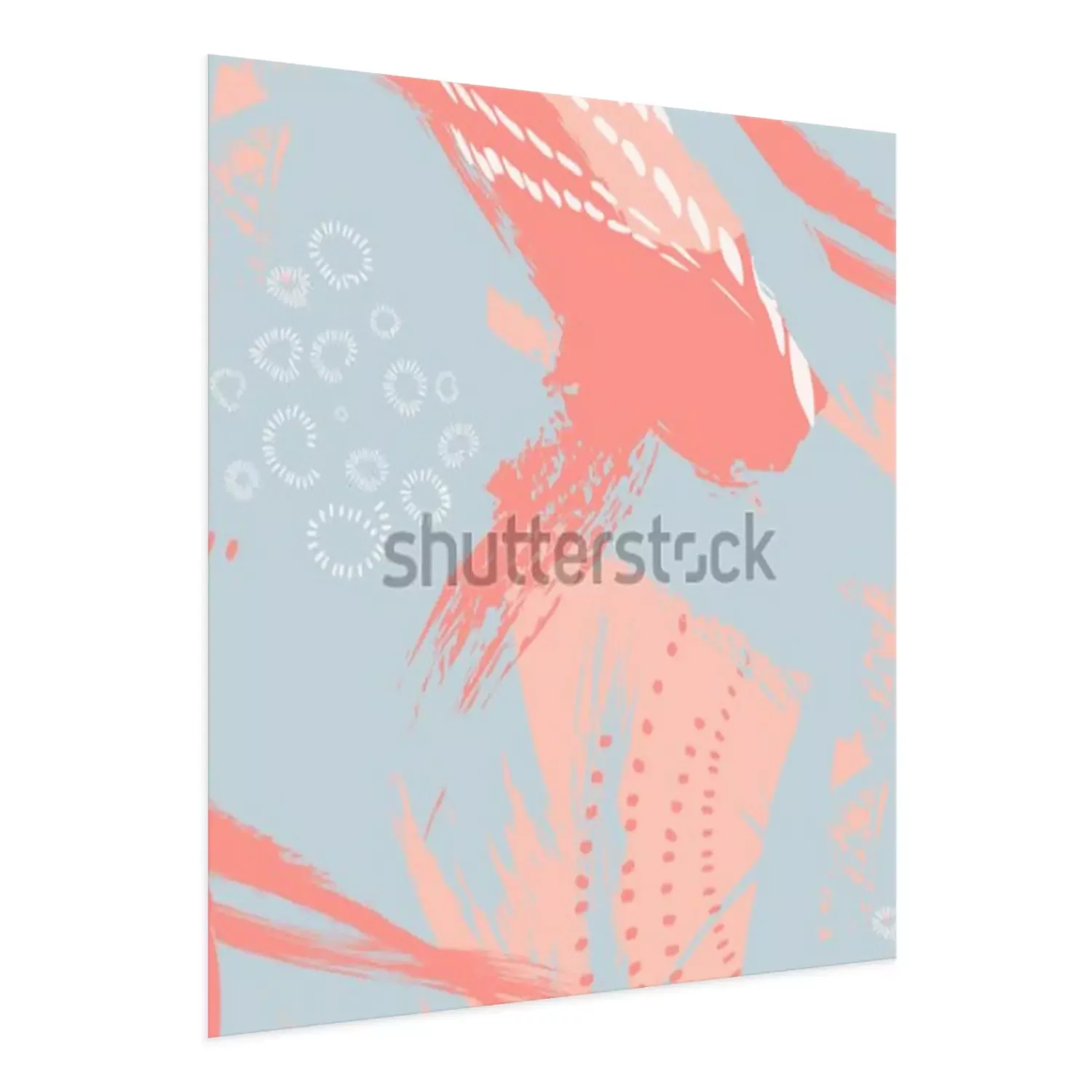 Poster: Vector pastel omslag. Eenvoudige dekkingstextuur met kleurrijke vlekken. Koraal grijs marine kalm patroon. Decoratieve geometrische vormen. Dynamische minimalistische expressieve afdruk
