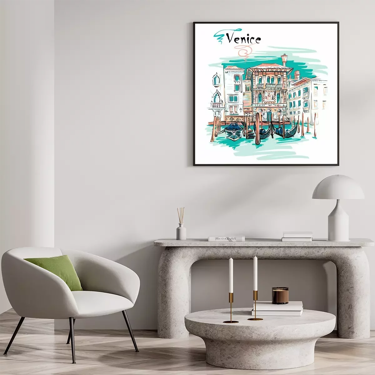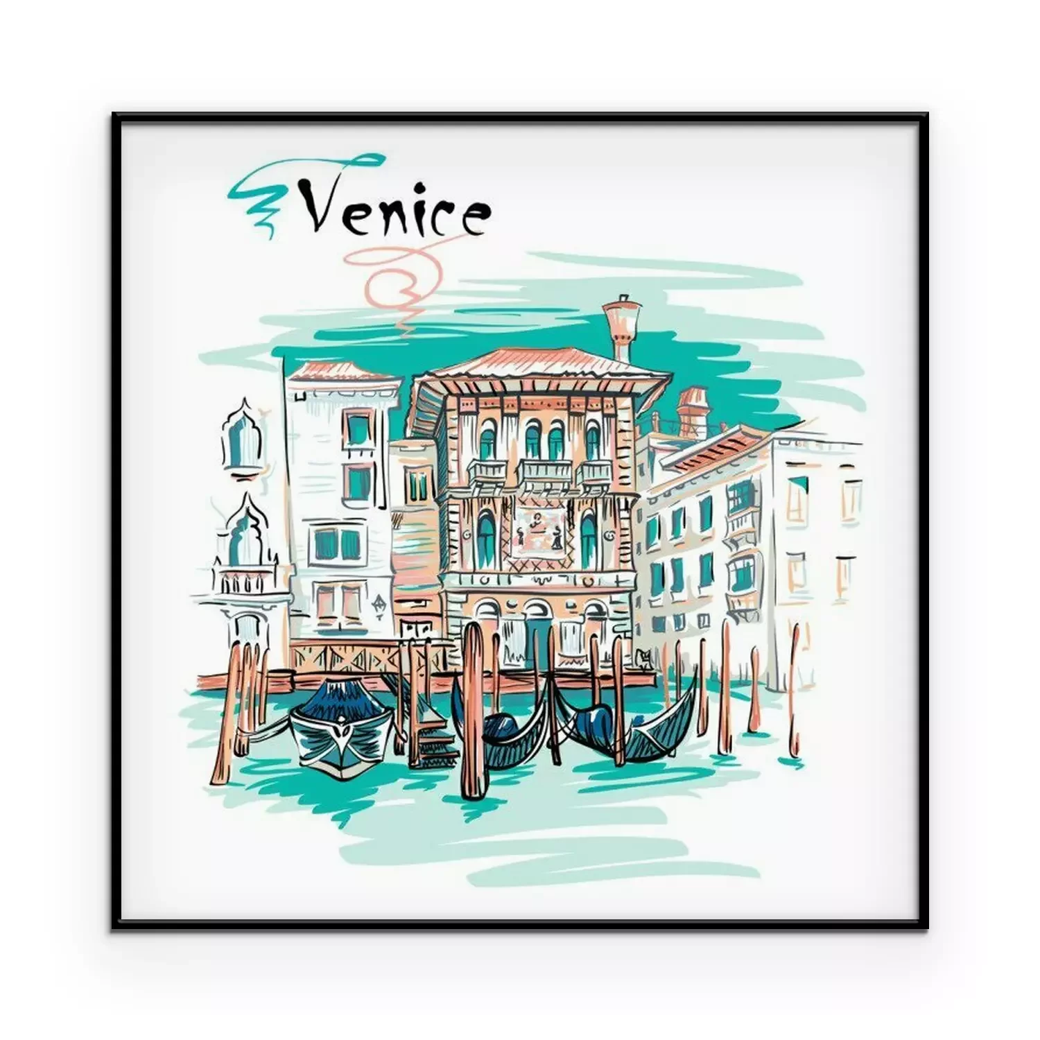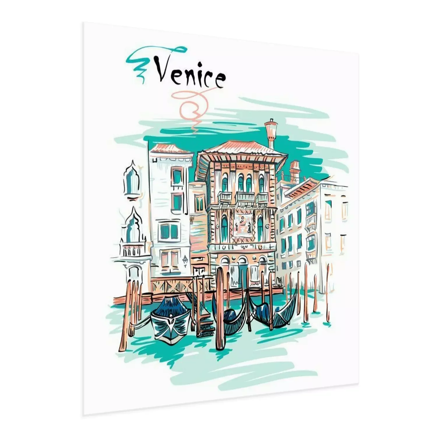 Poster: Vector schilderachtig uitzicht met Palazzo in Venetiaanse gotische stijl op het Canal Grande in de zomerdag, Venetië, Italië.