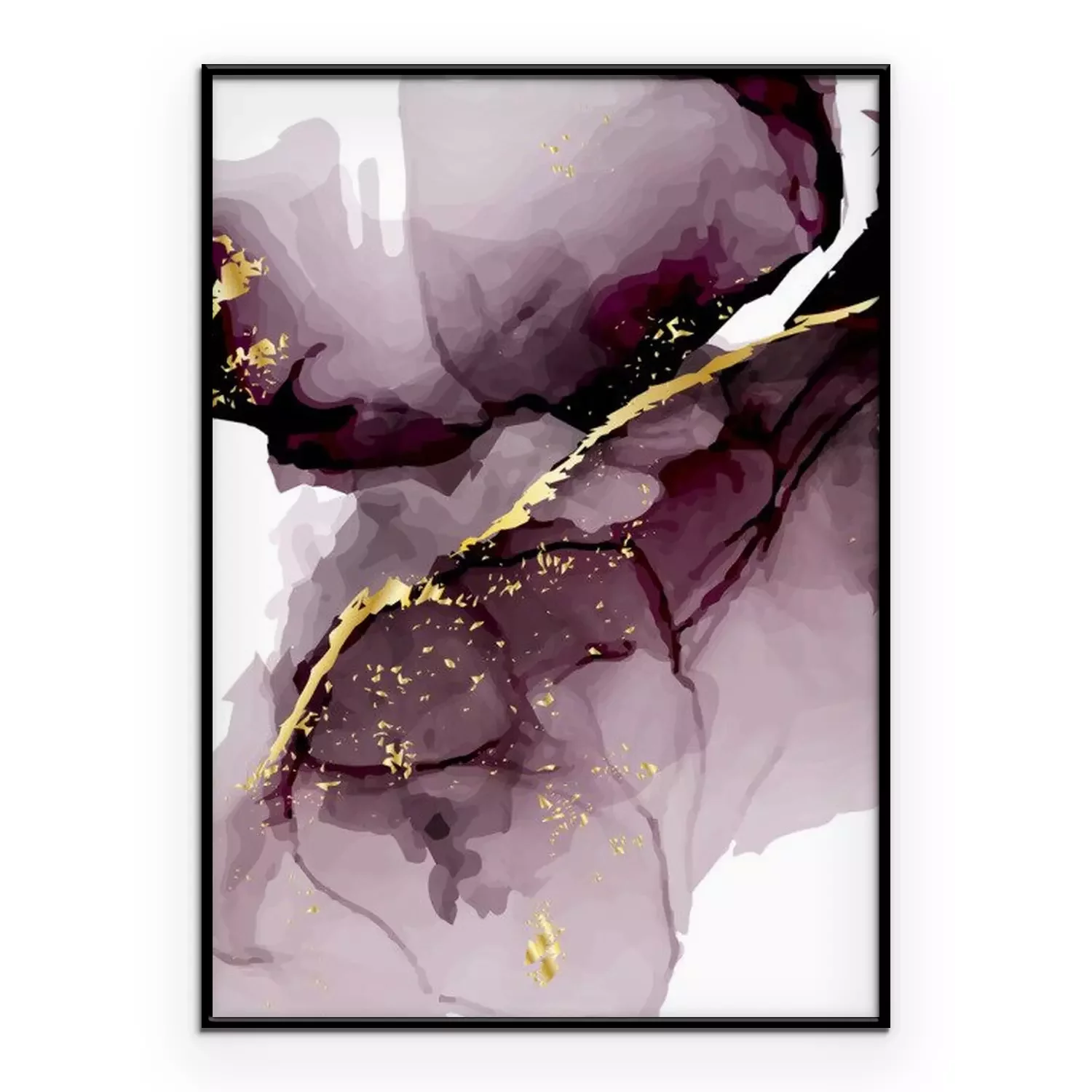 Poster Vector watercolor repetition liquid flow in tender dark violet grey colors with gold glitters. Vector alcohol ink grunge abstract background. Wedding abstract  decoration design.