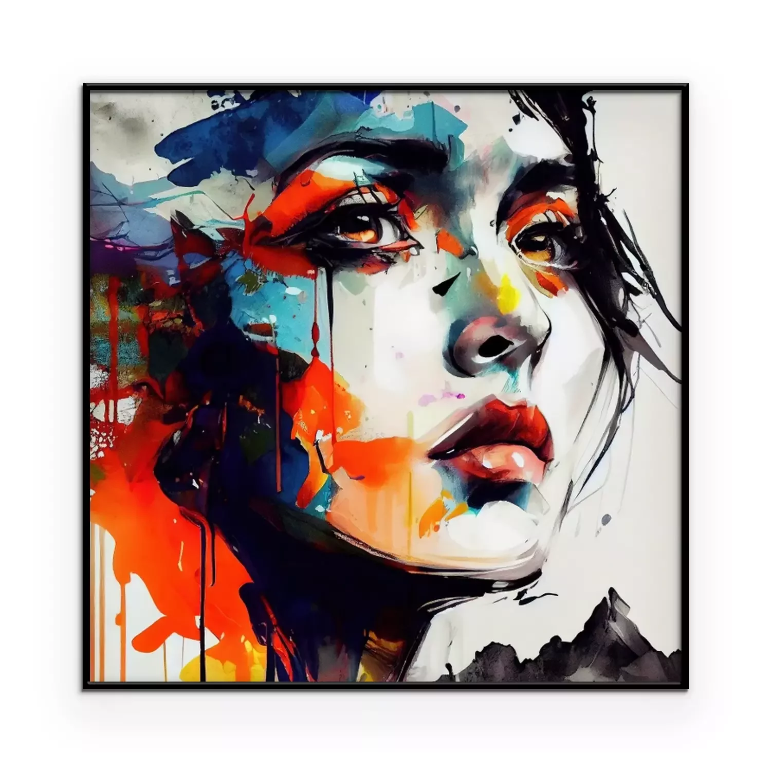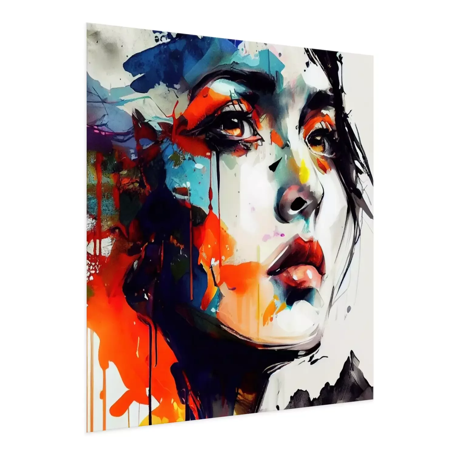 Poster: Veelkleurig portret van het gezicht van een vrouw
