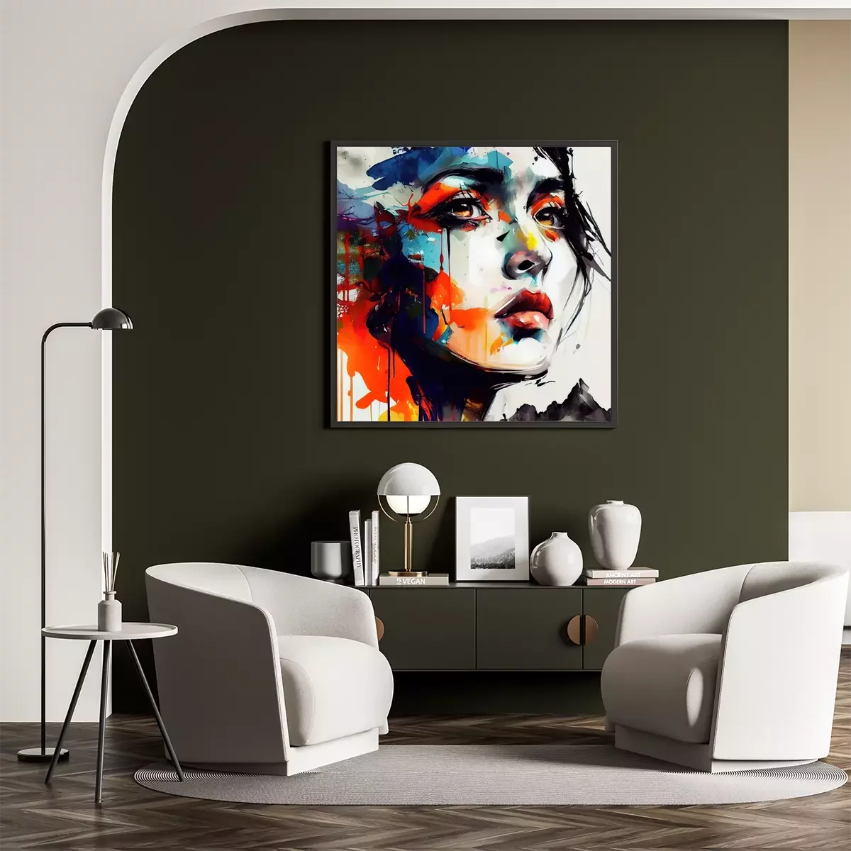 Poster Veelkleurig portret van het gezicht van een vrouw