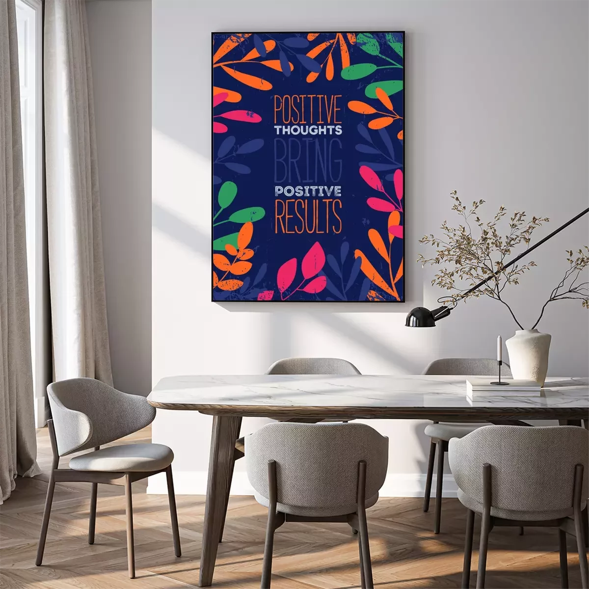 Poster: Veelkleurige afbeeldingen over positief denken