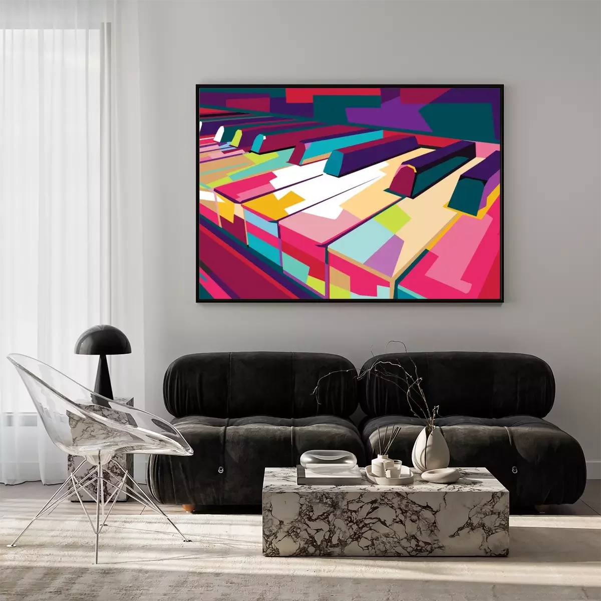 Poster: vektor piano pop art warna-warni, ilustrasi