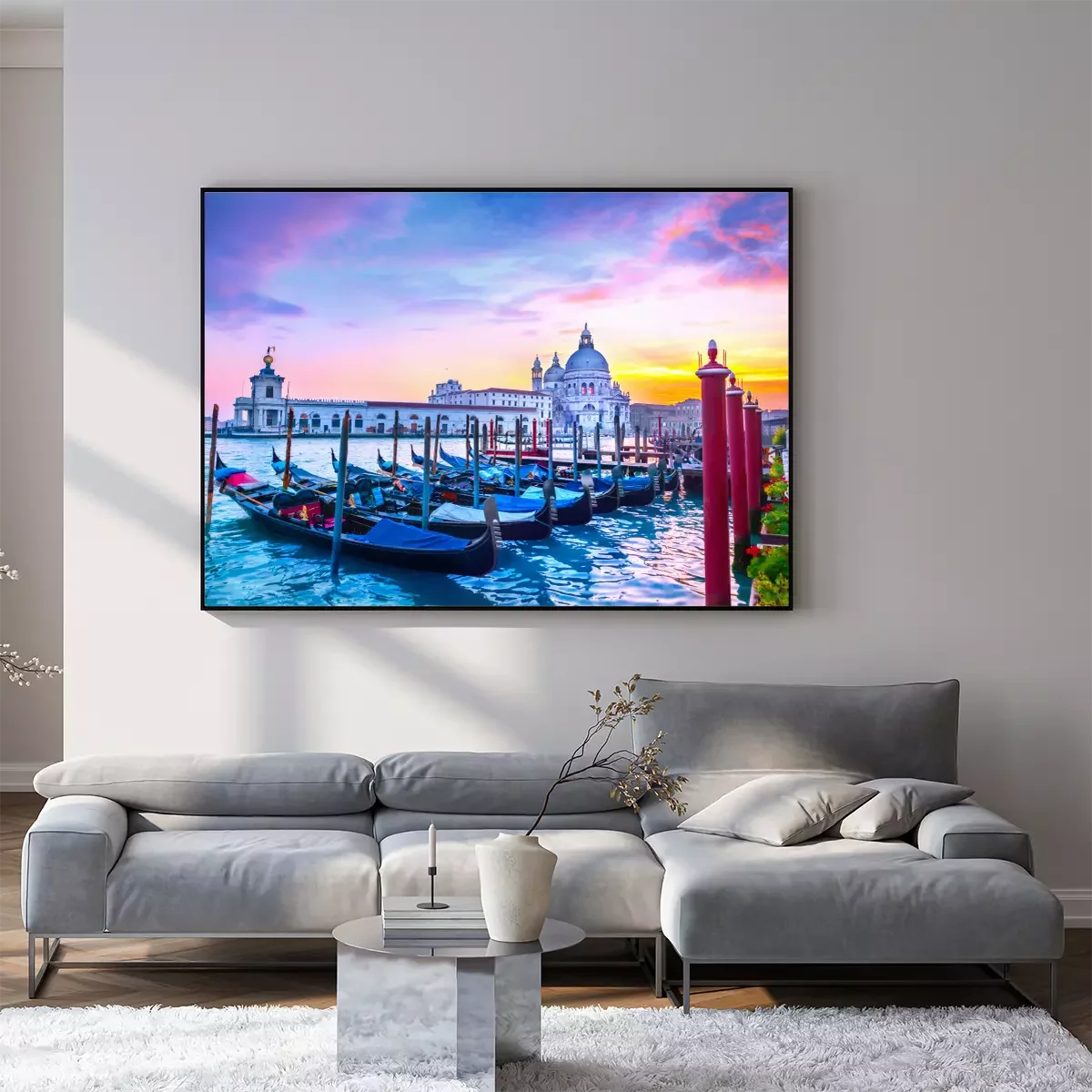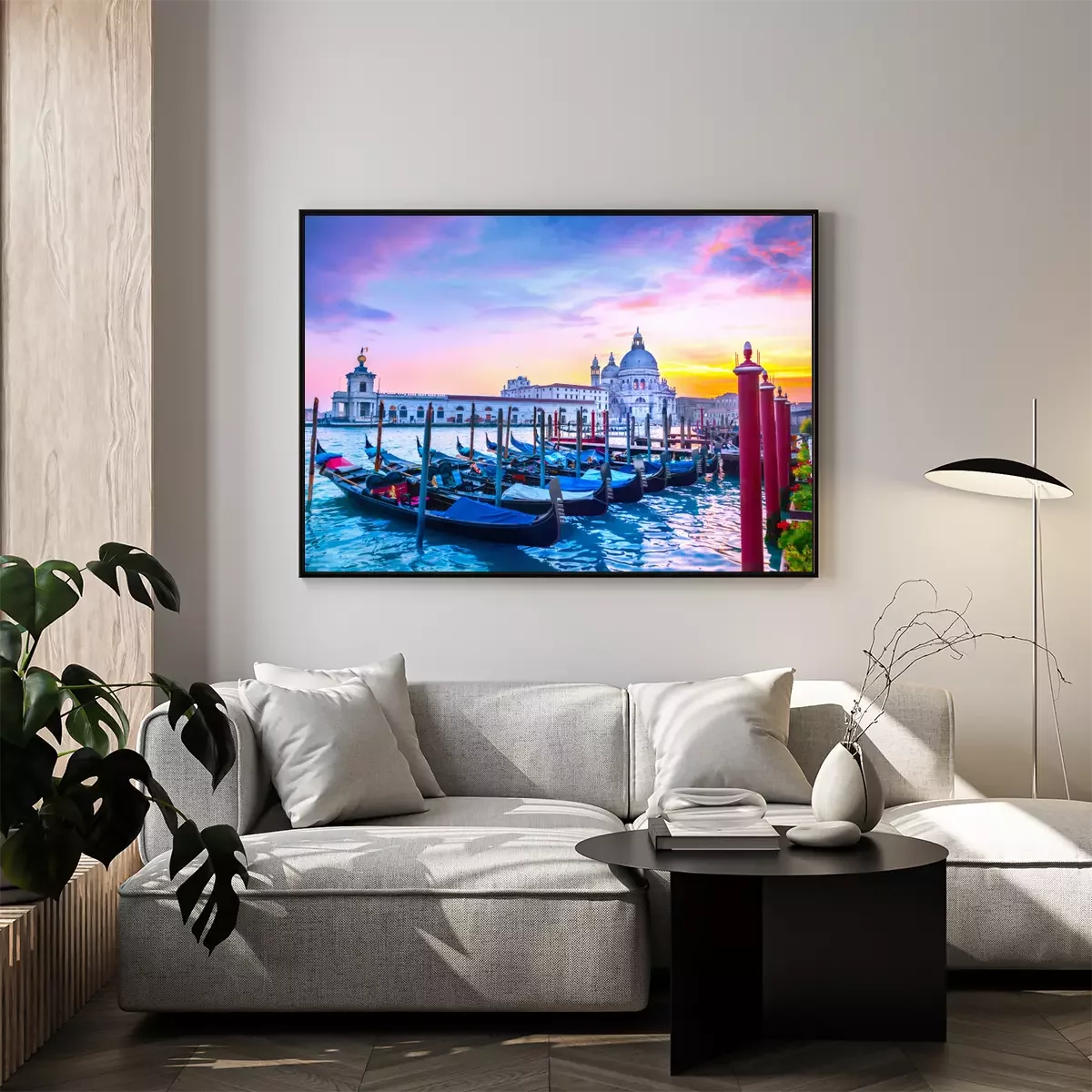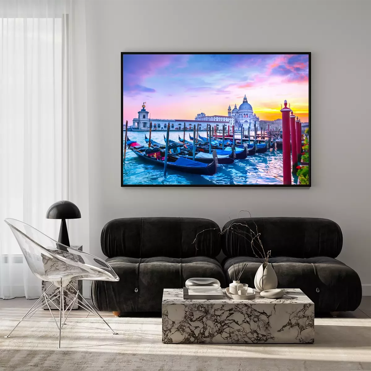 Poster: Venetiaanse officiële gondels beat zonsondergang