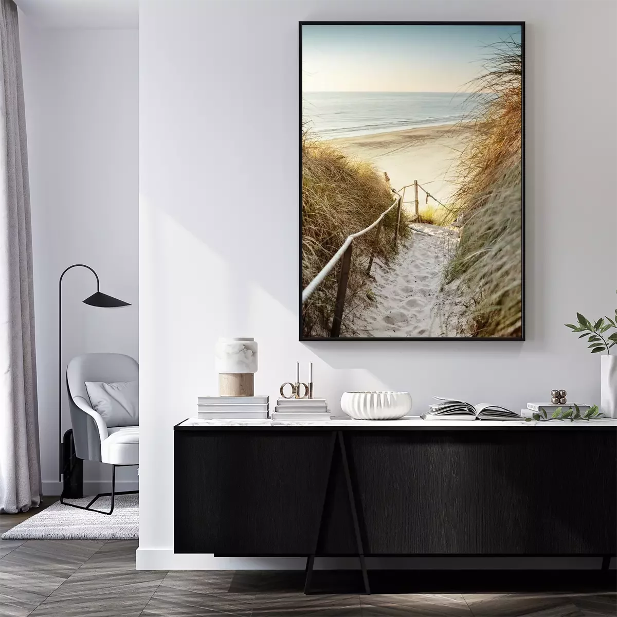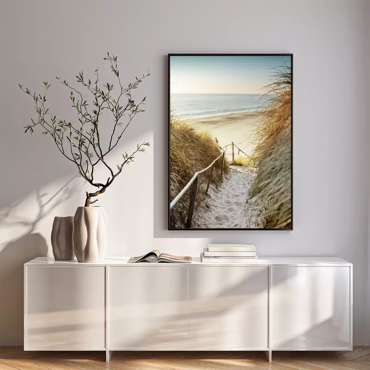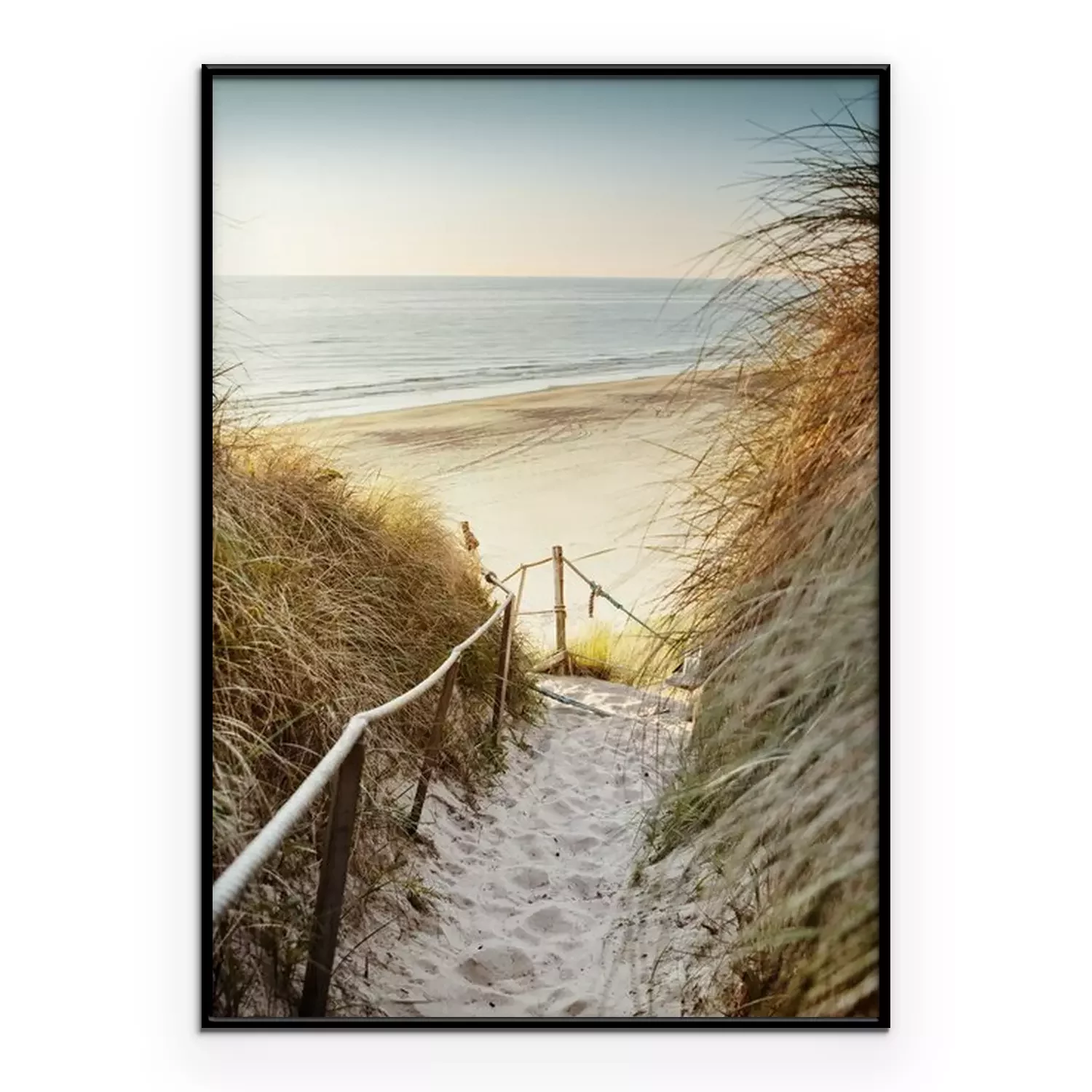 Poster: Verlaten strand achter de duinen