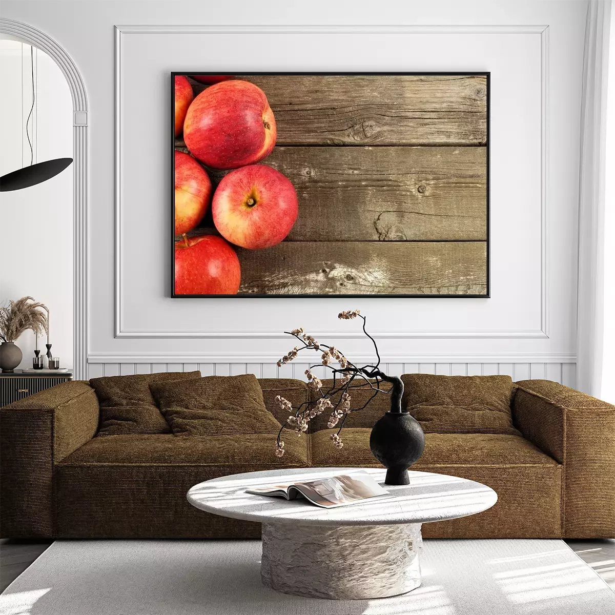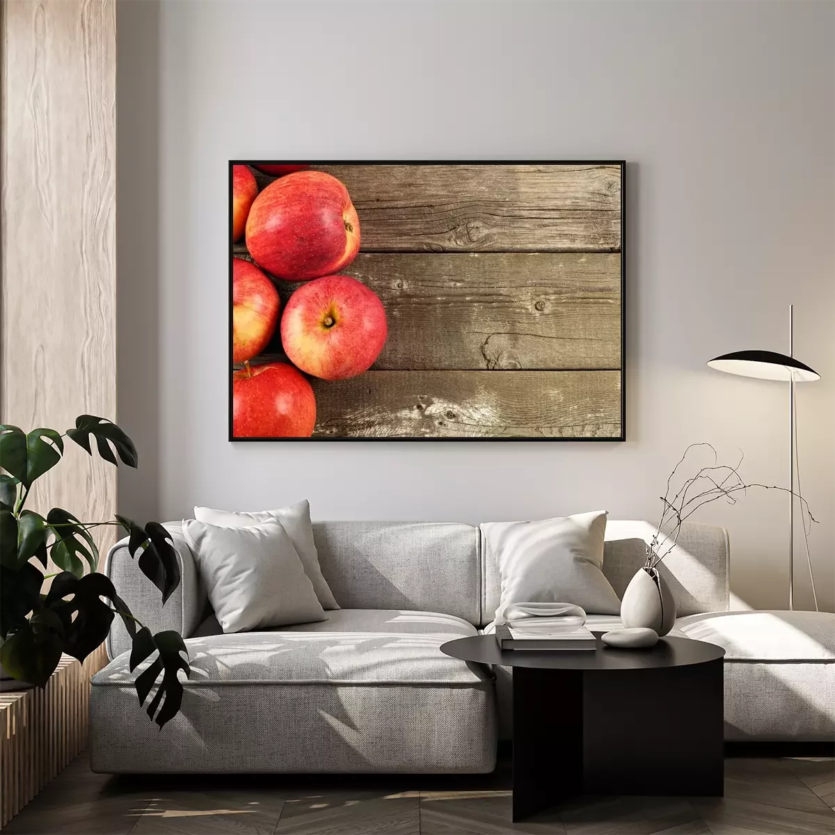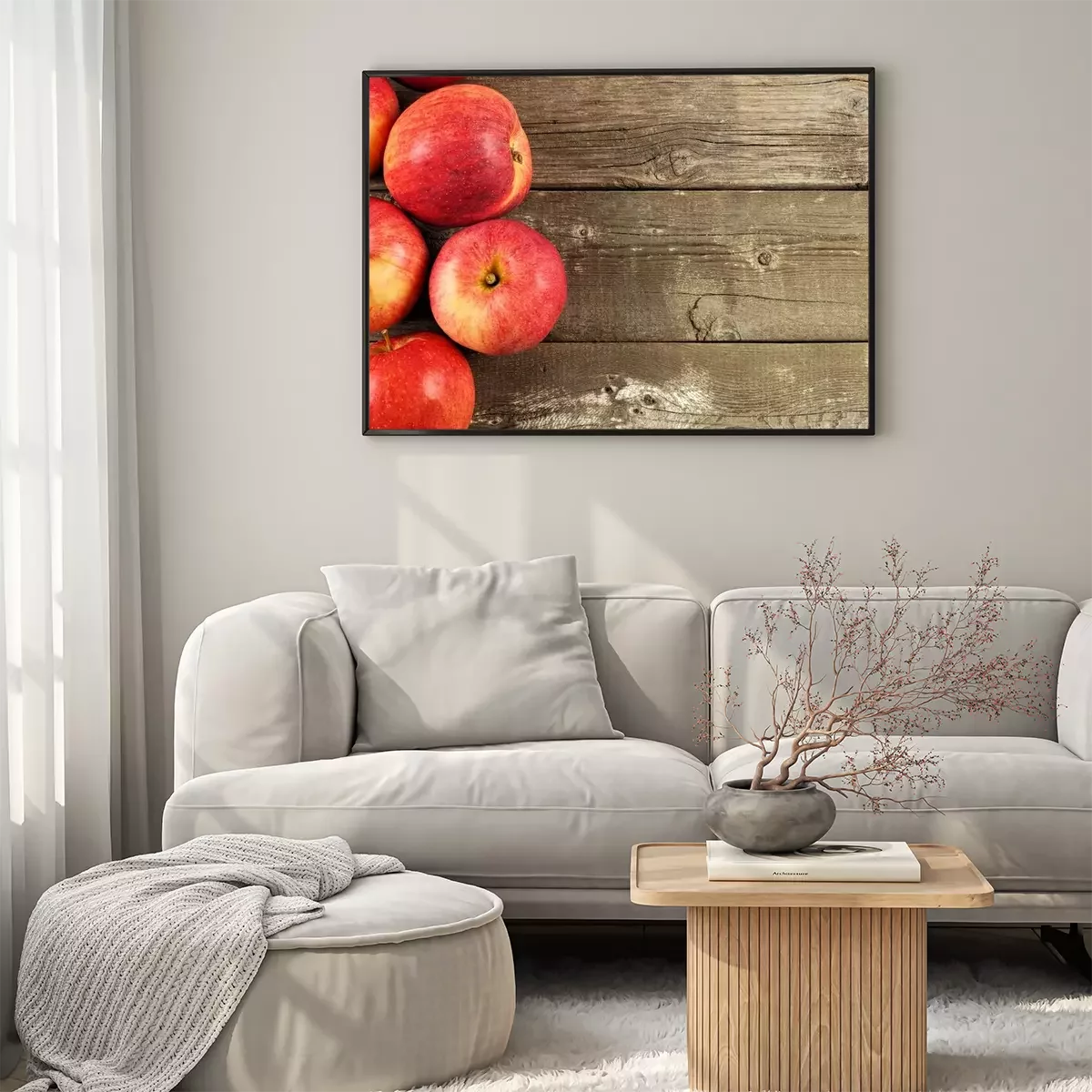 Poster Vers geoogste appels, kant grens op rustieke oude houten achtergrond