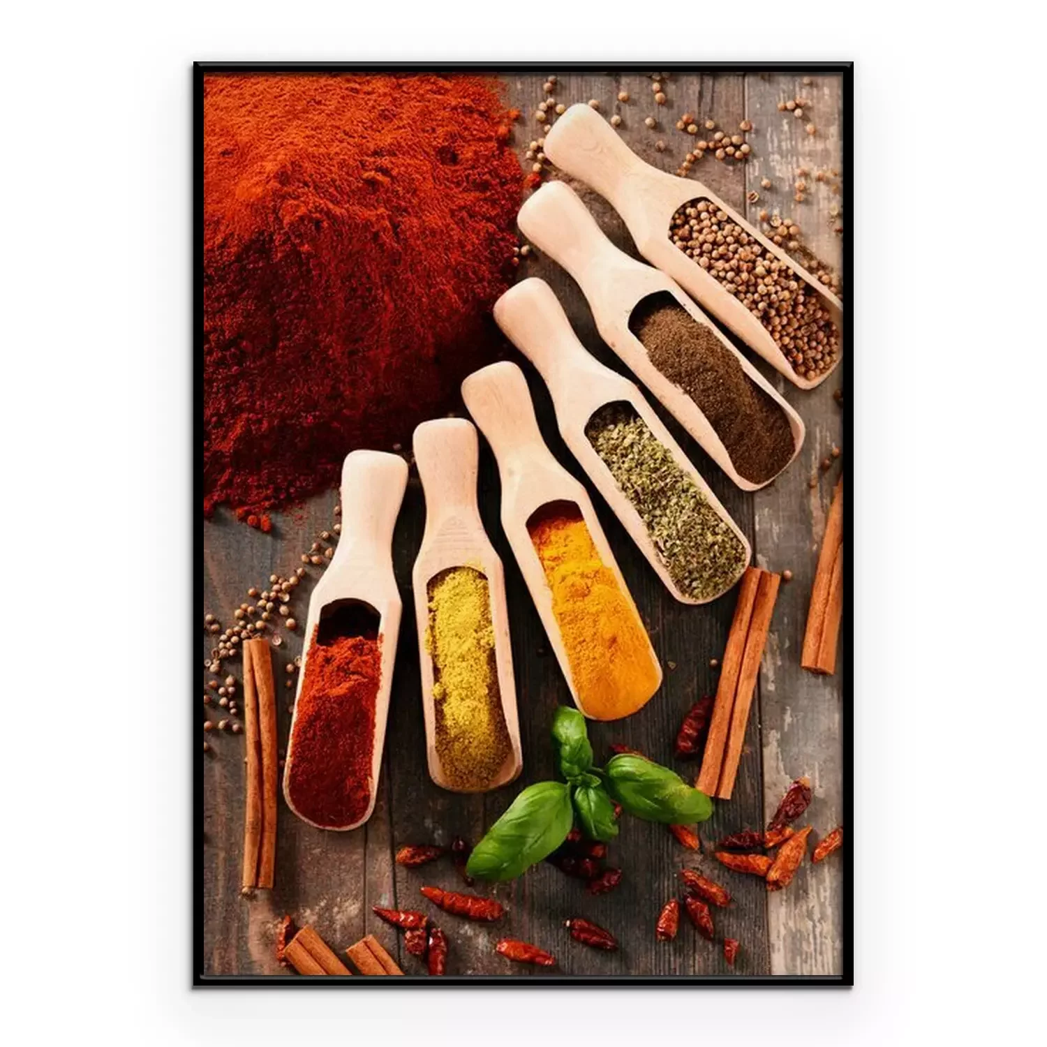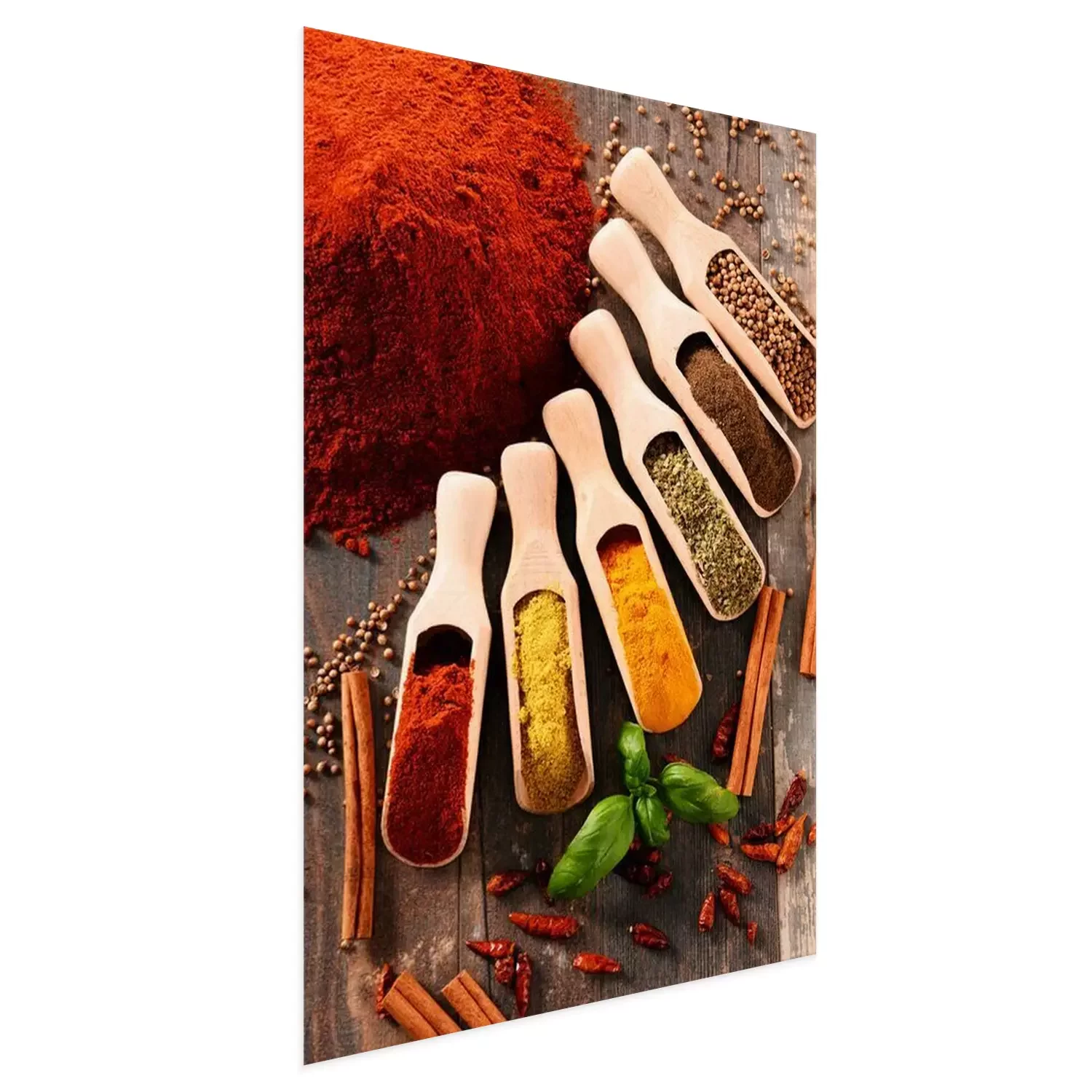 Poster Verscheidenheid van kruiden op keukentafel