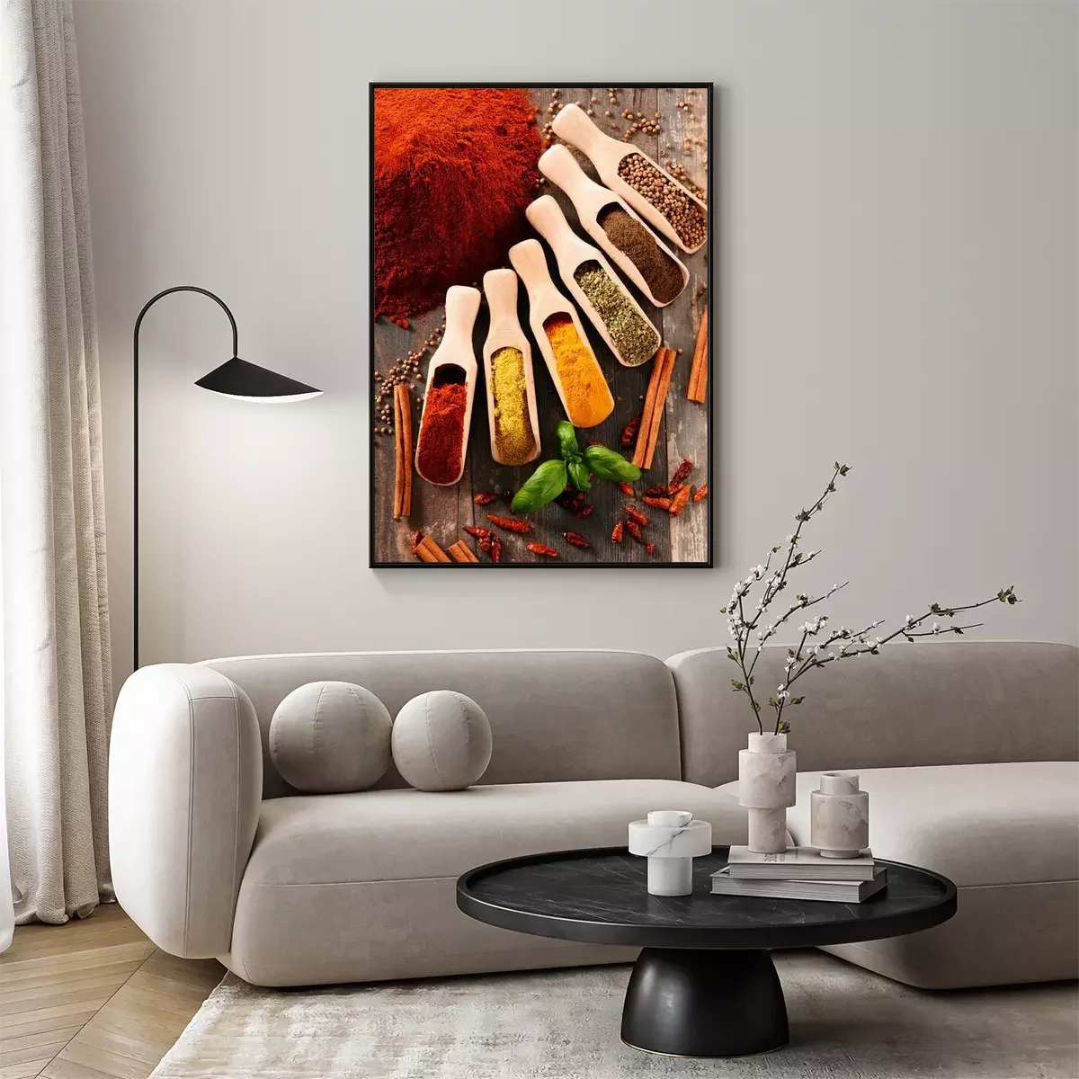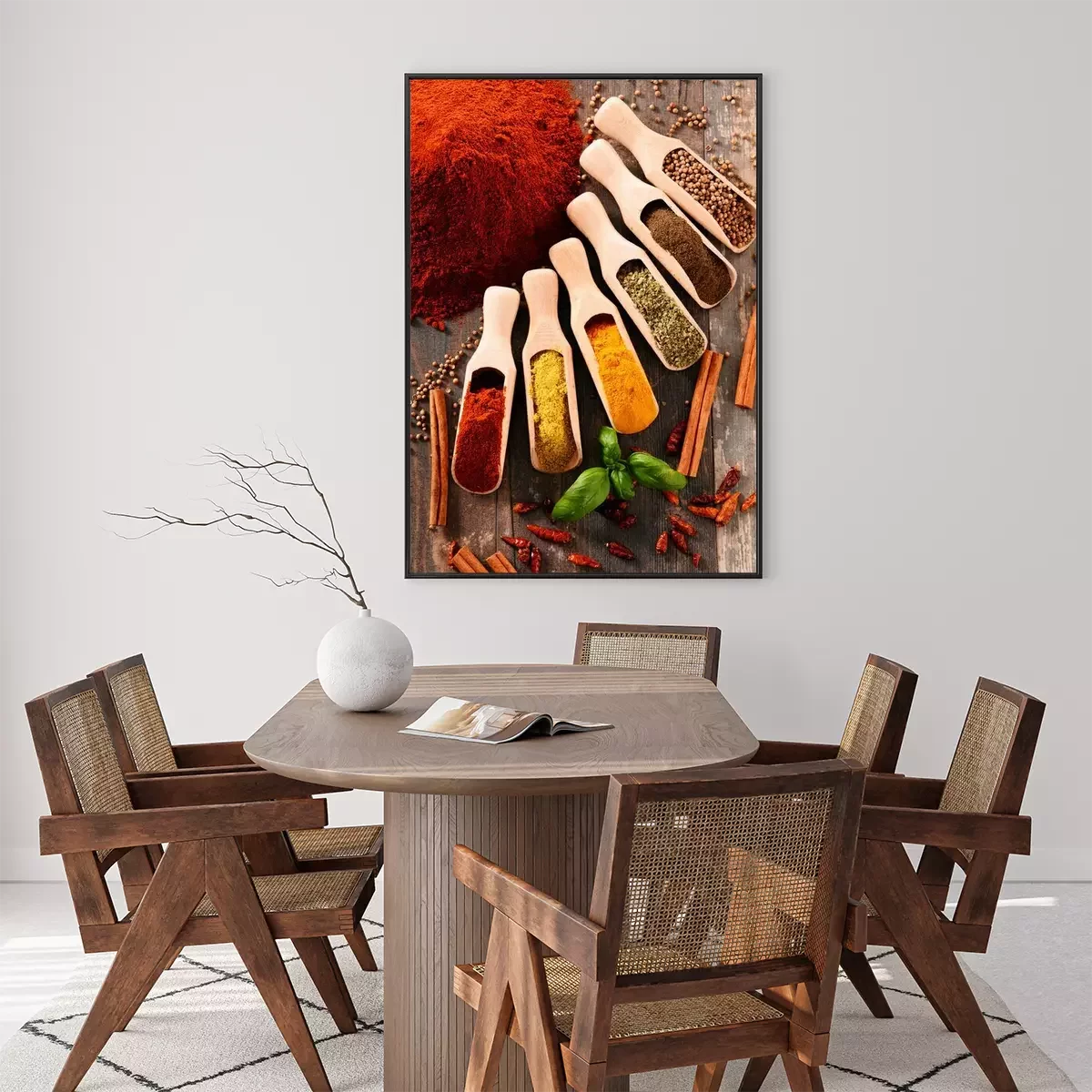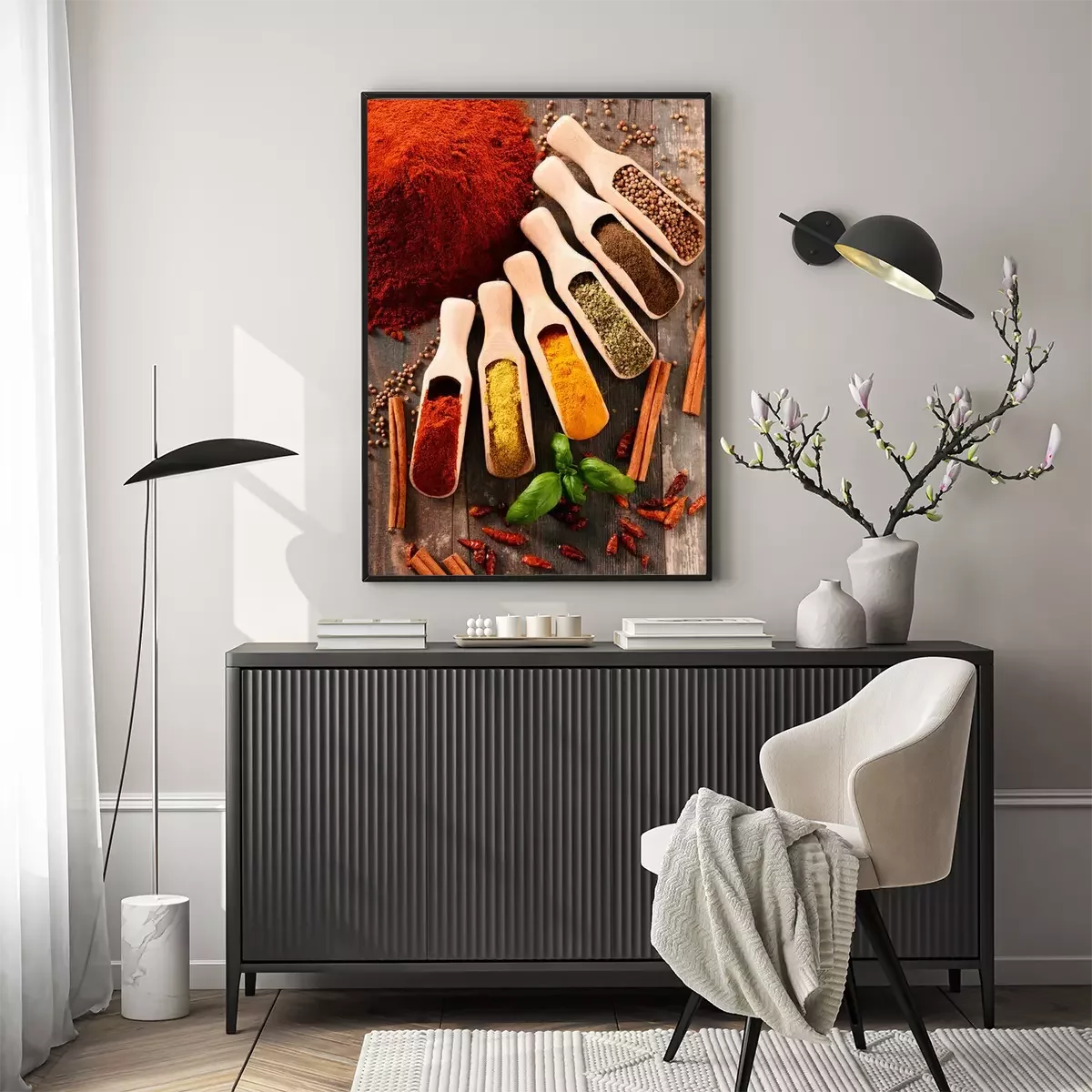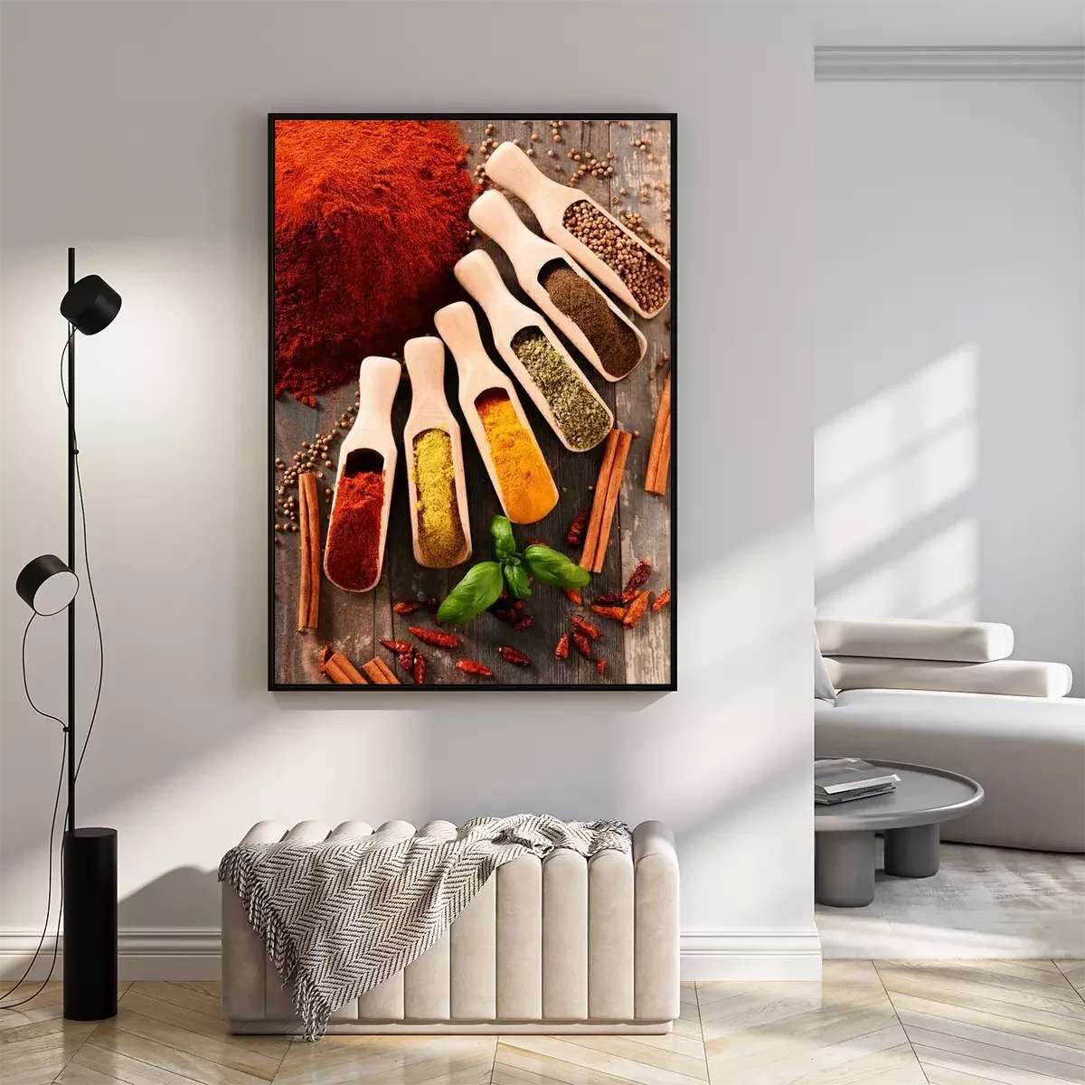 Poster: Verscheidenheid van kruiden op keukentafel