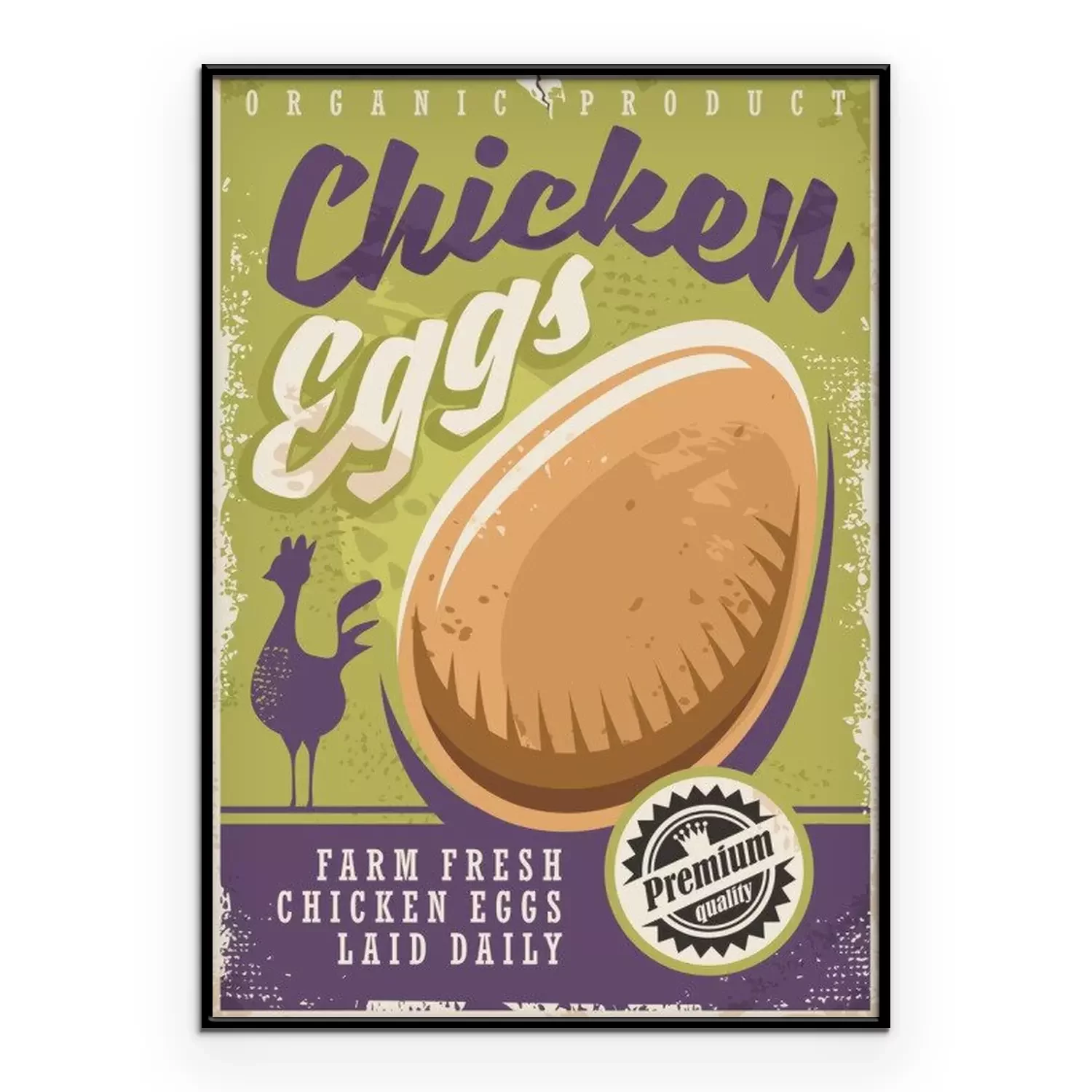 Poster: Versier de eierenaffiche van het landbouwbedrijf met kippensilhouet en organisch grafisch ei