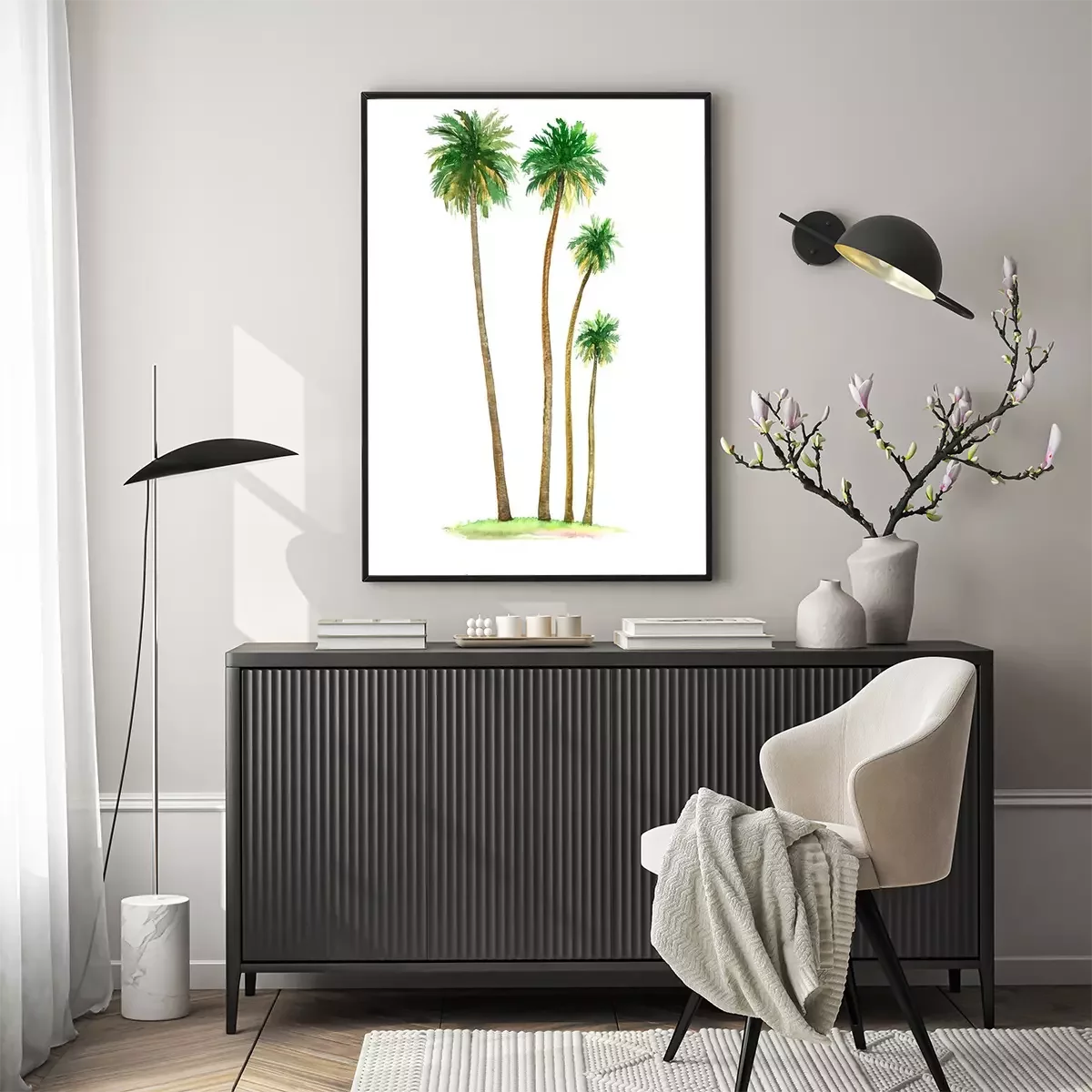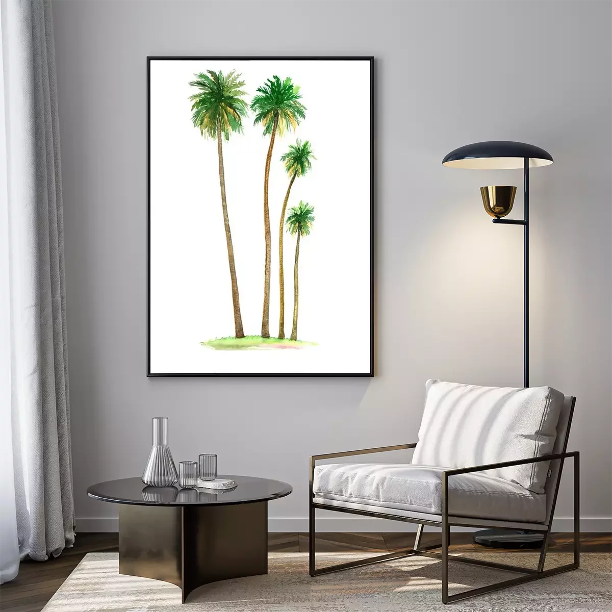 Poster: Vier palmbomen op een witte achtergrond