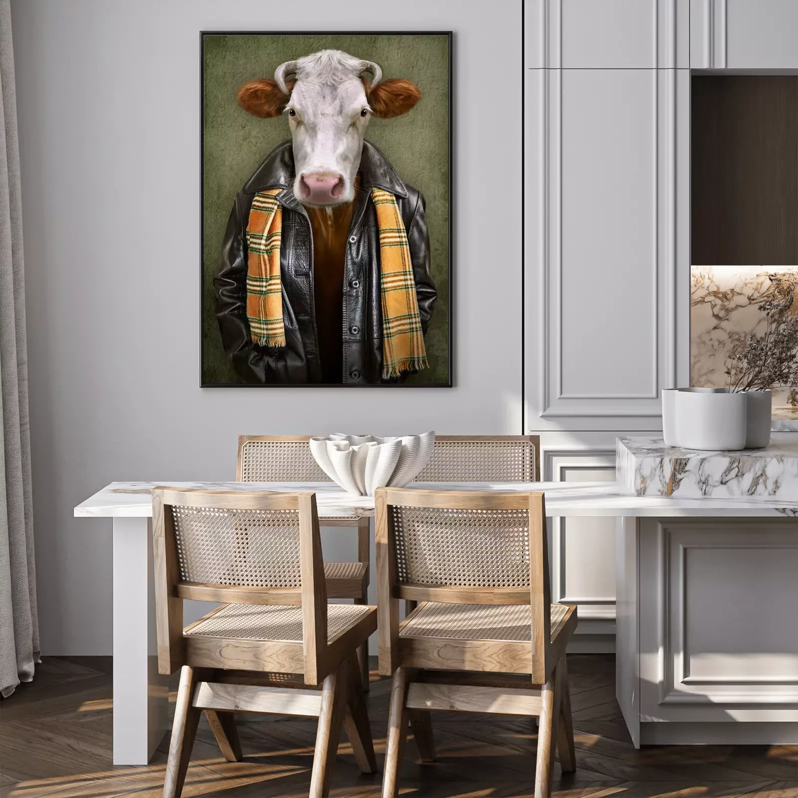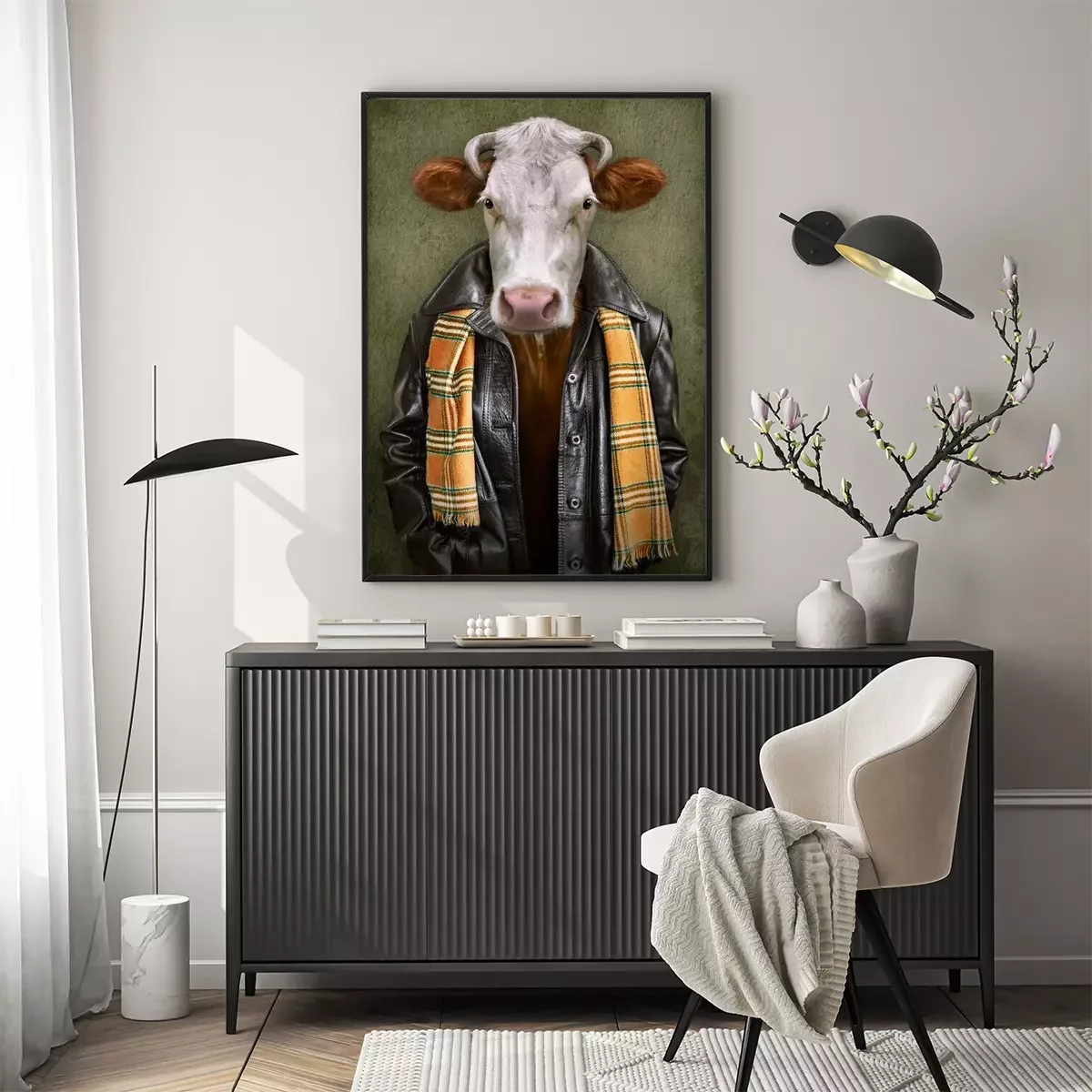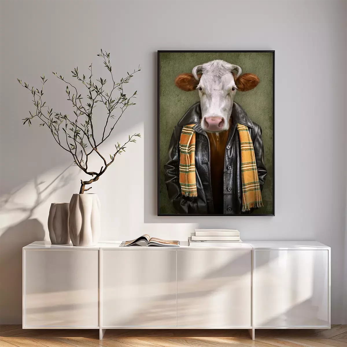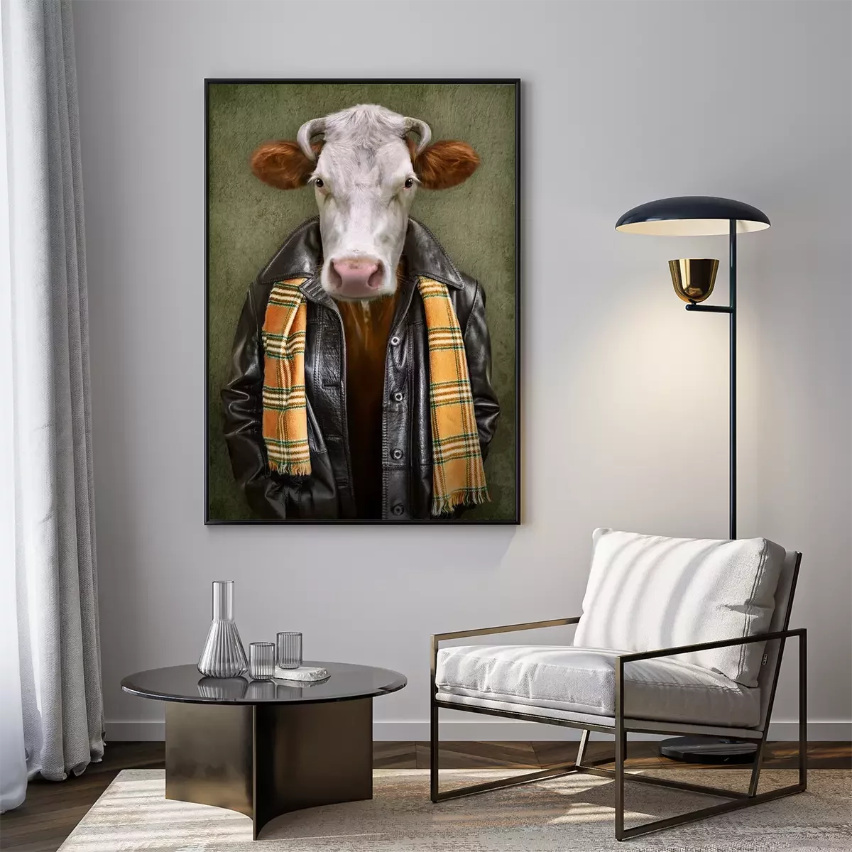 Poster: Vintage concept van een koe in kleding