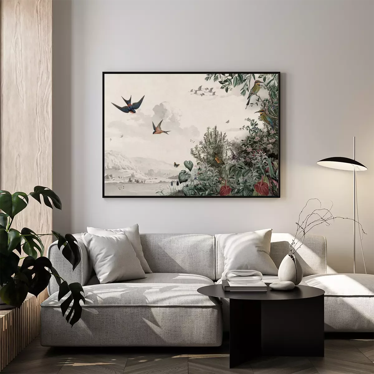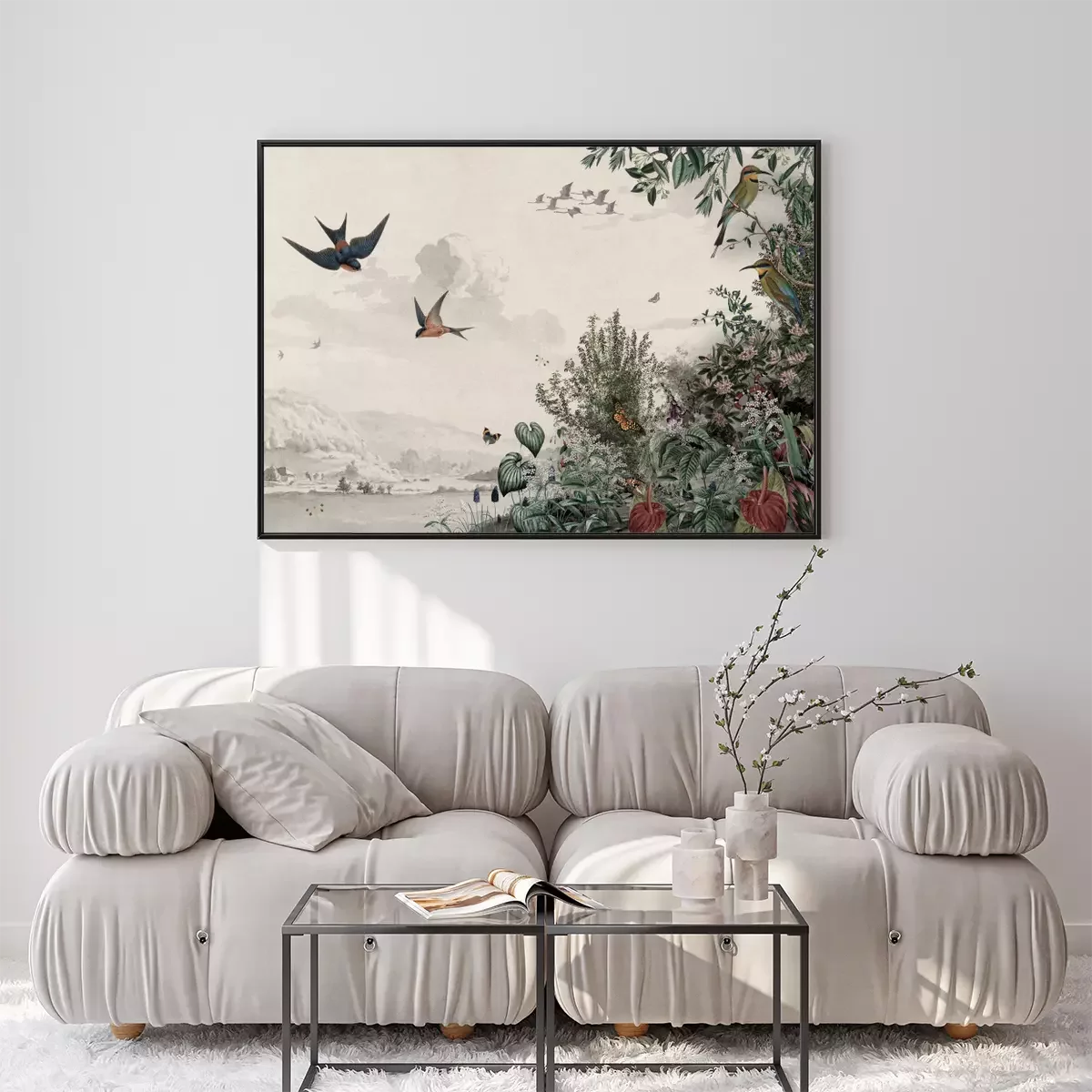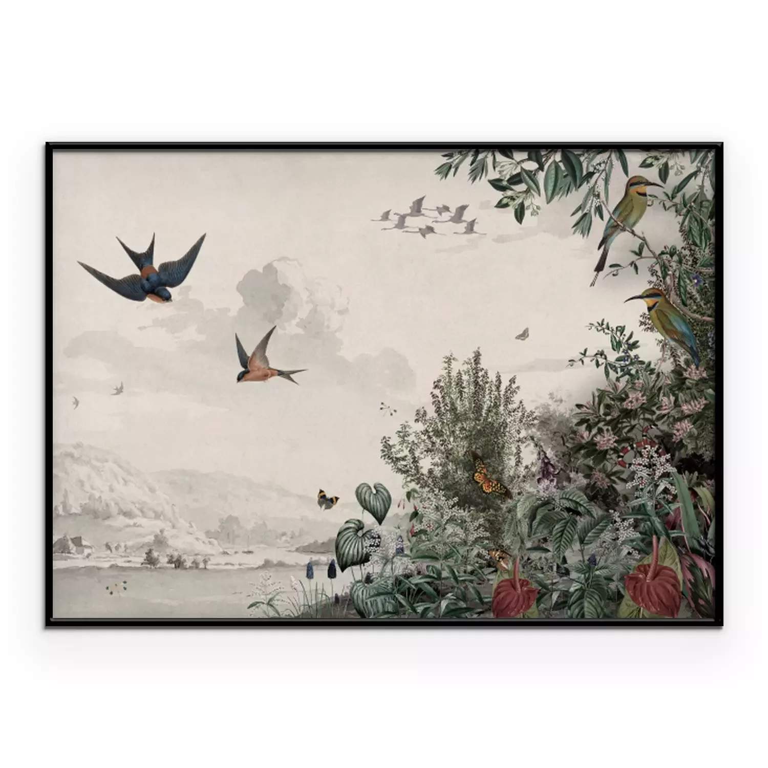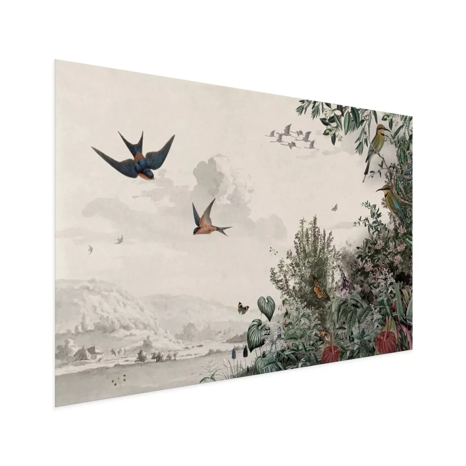 Poster: Vintage illustratie van wilde planten en vogels