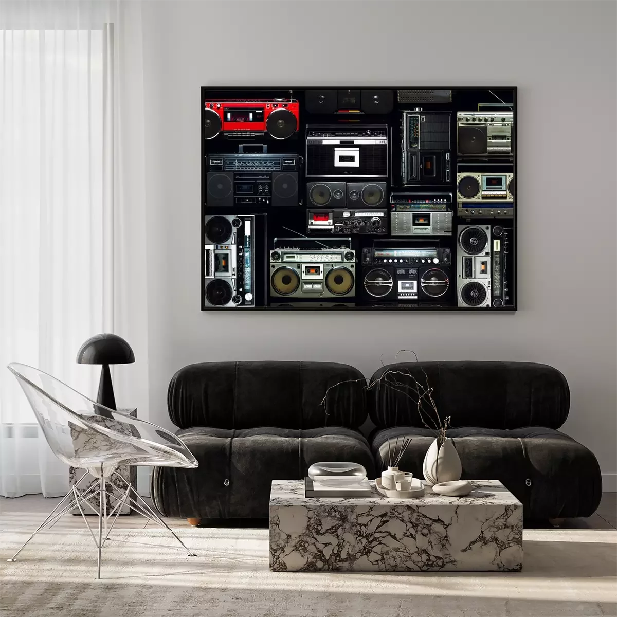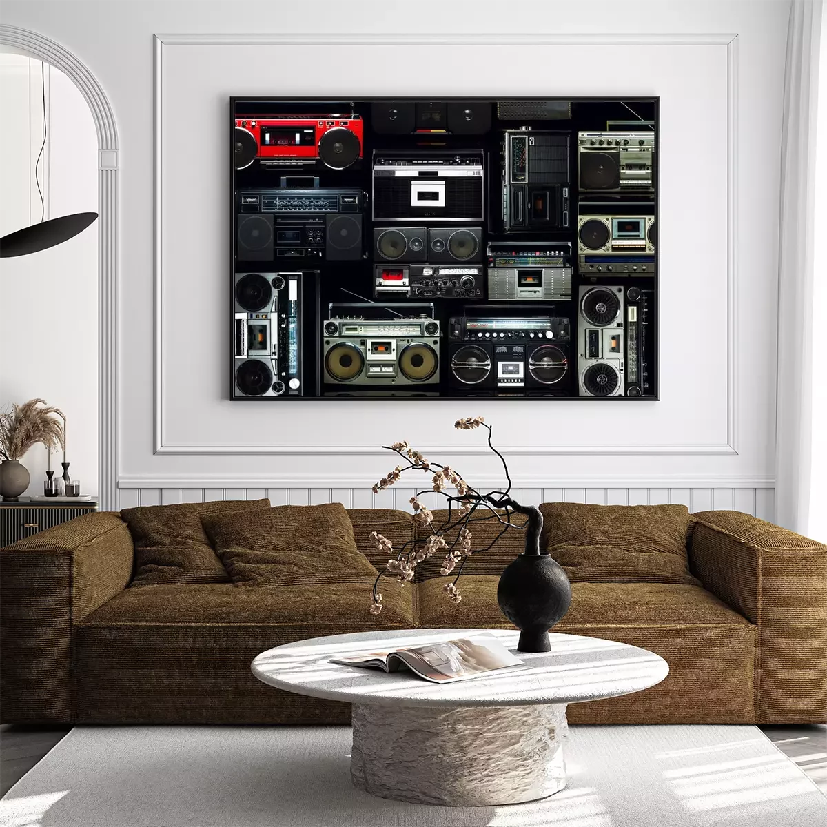Poster Vintage muur vol radio-boombox van de jaren 80