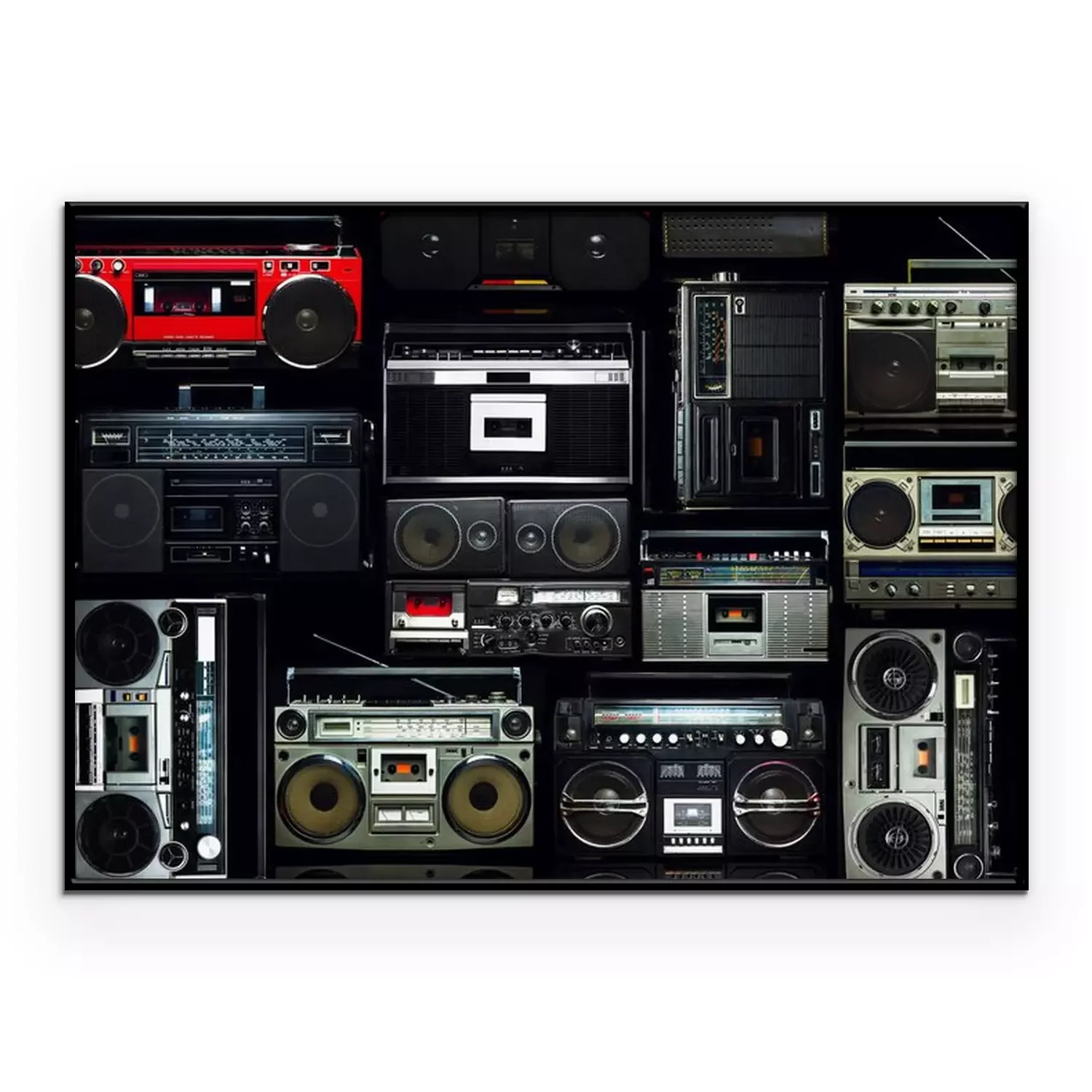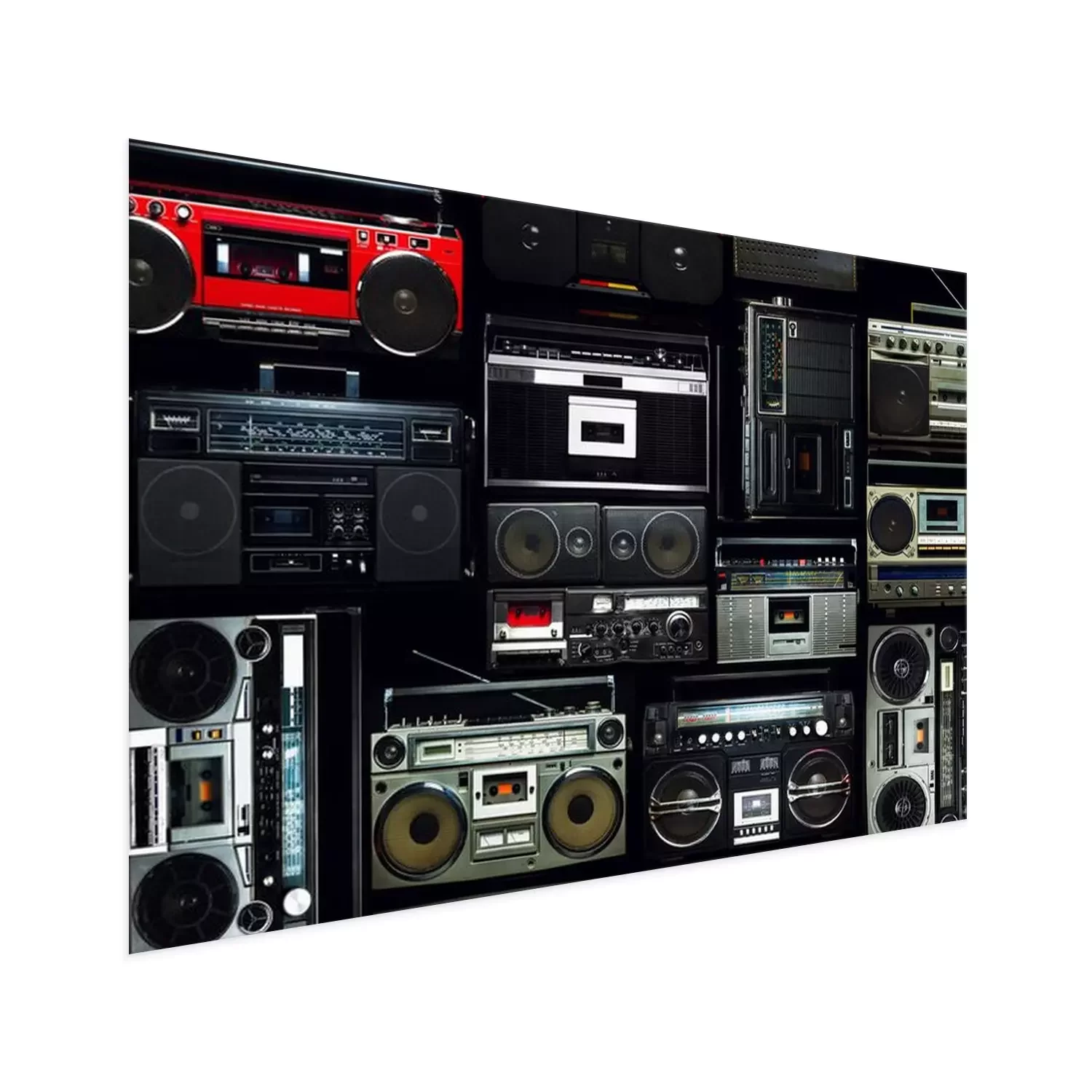 Poster: Vintage muur vol radio-boombox van de jaren 80