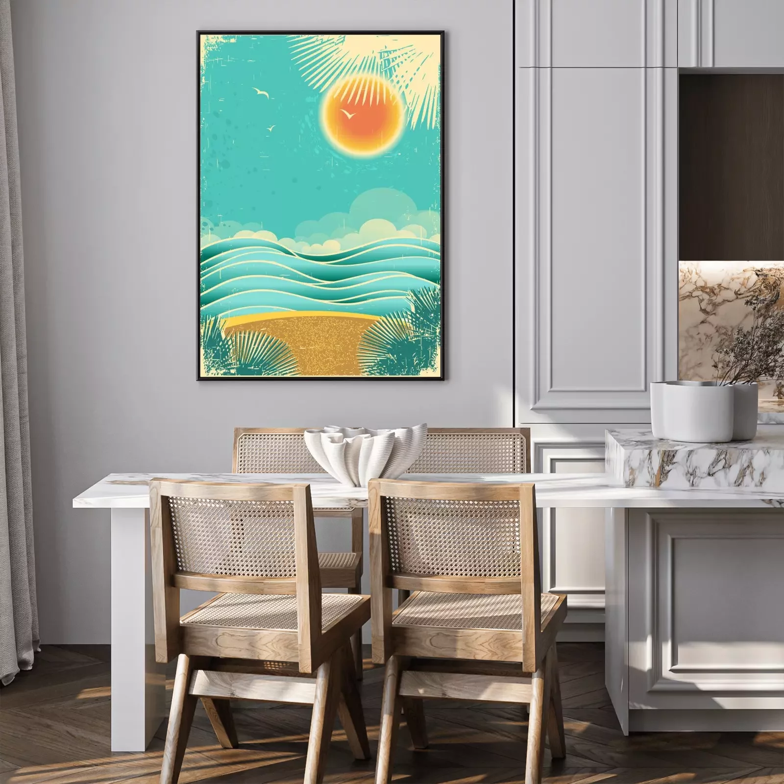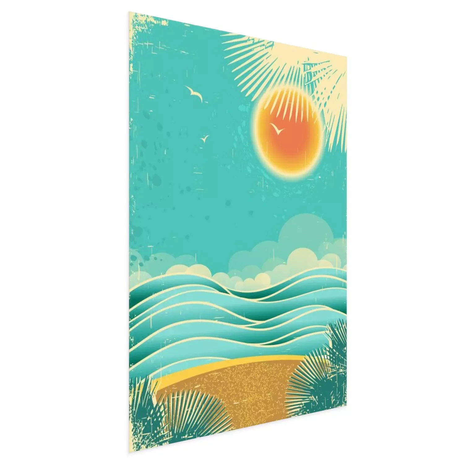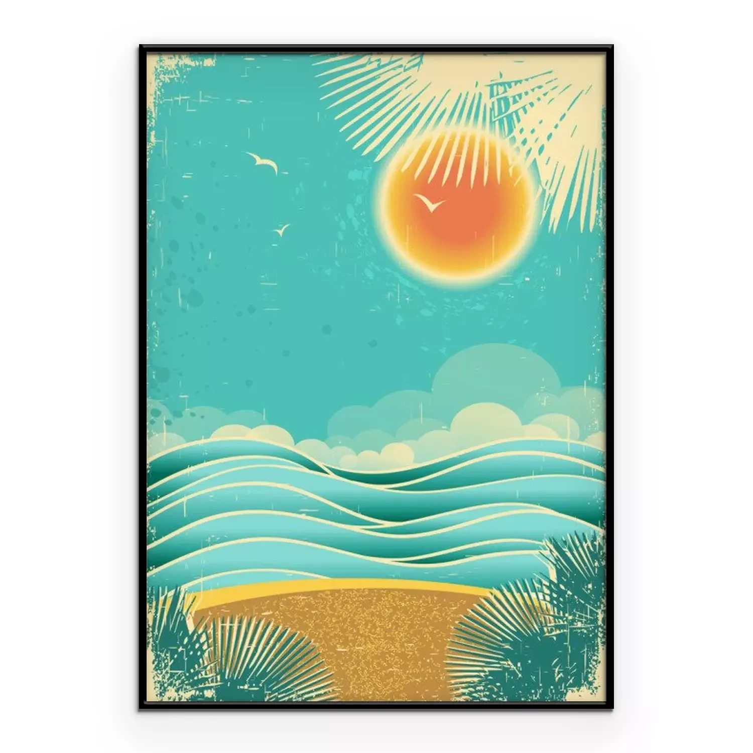 Poster: Vintage natuur tropische zeegezicht achtergrond met zonlicht en pa