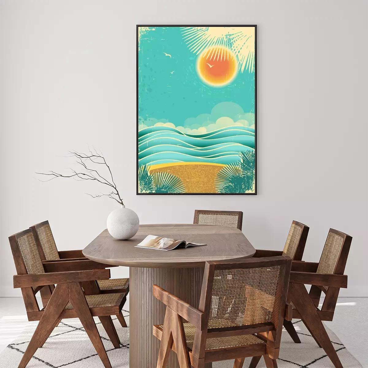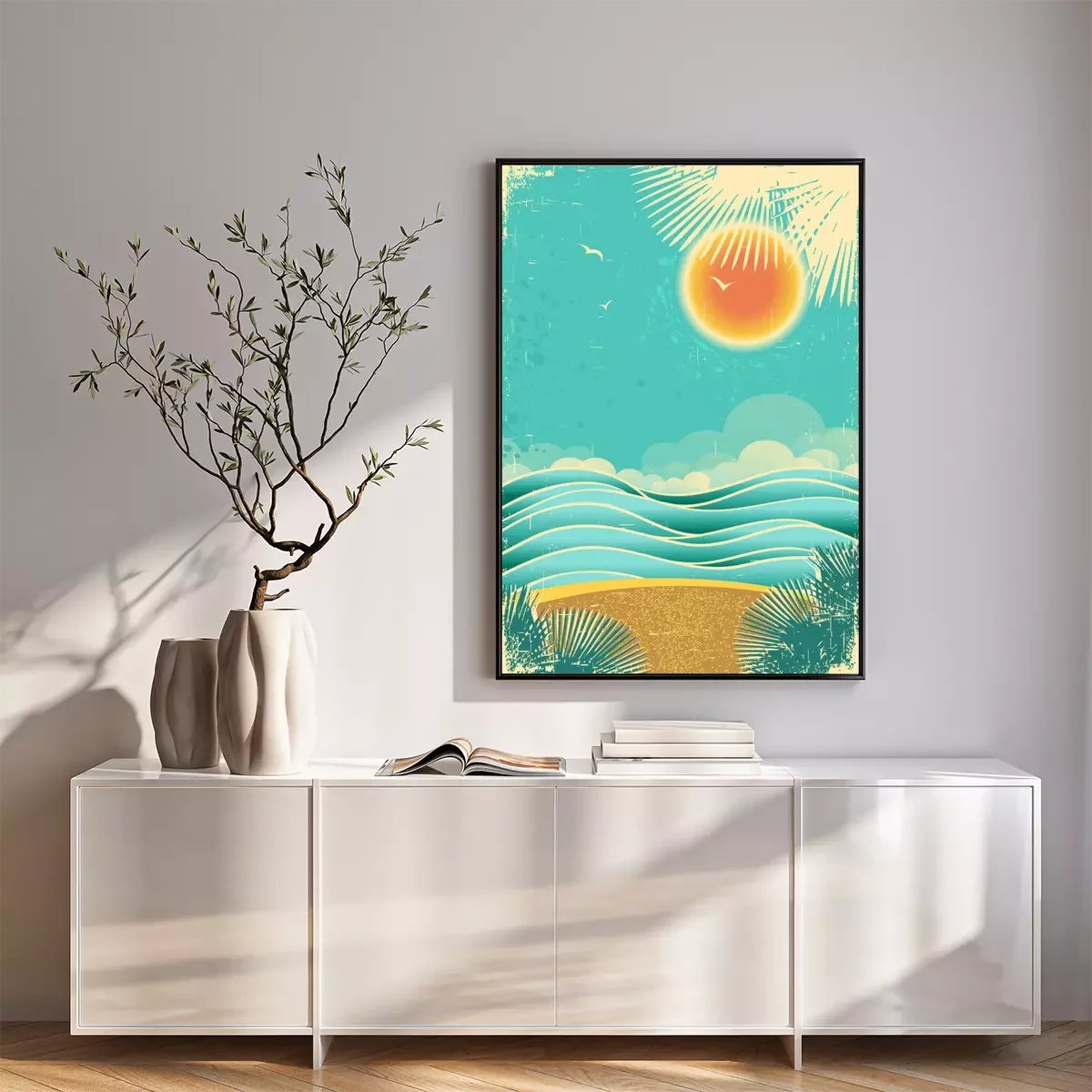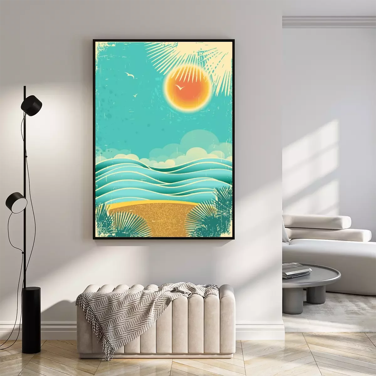 Poster: Vintage natuur tropische zeegezicht achtergrond met zonlicht en pa