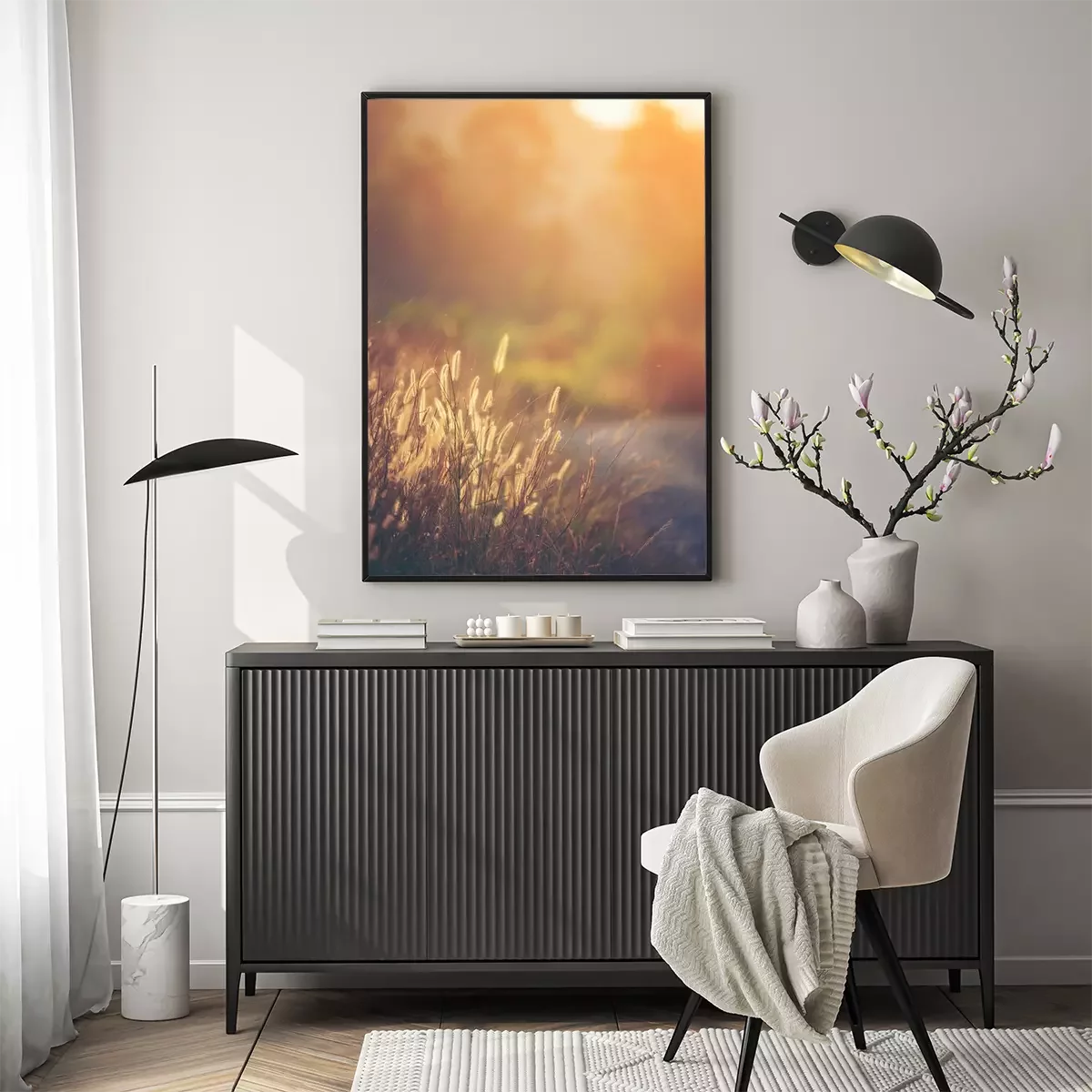 Poster Vintage photo of beautiful wild flower, sunset
