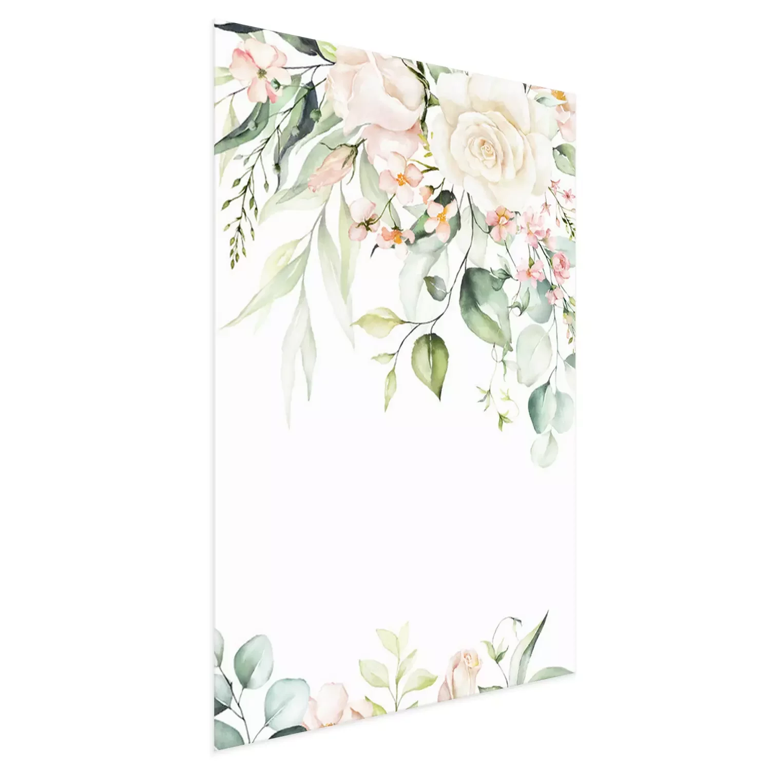 Seamless watercolor floral pattern - pink flowers, green leaves & branches on white background; for wrappers, wallpapers, postcards, greeting cards, wedding invitations, romantic events.