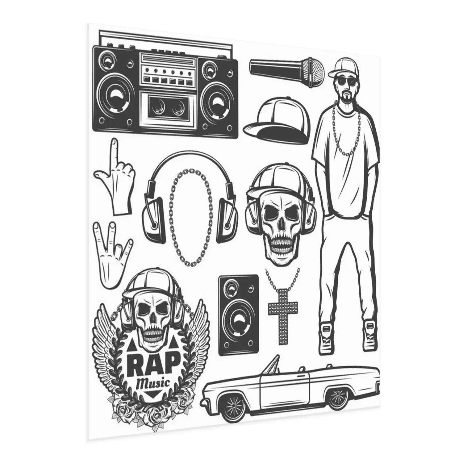Poster: Vintage Rap Music Elements-collectie