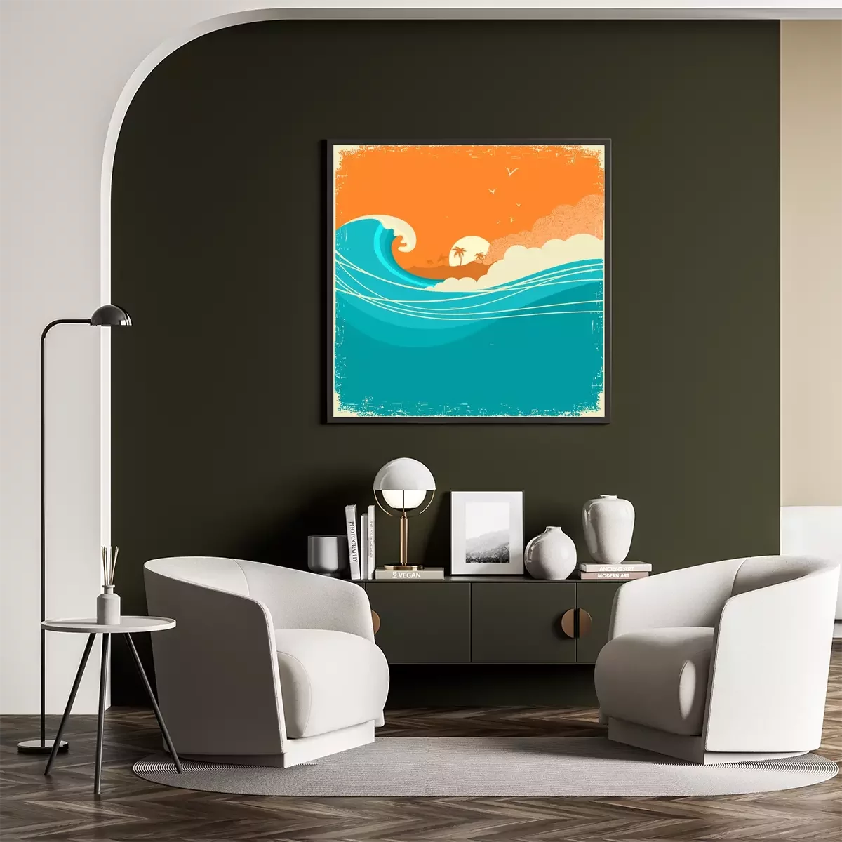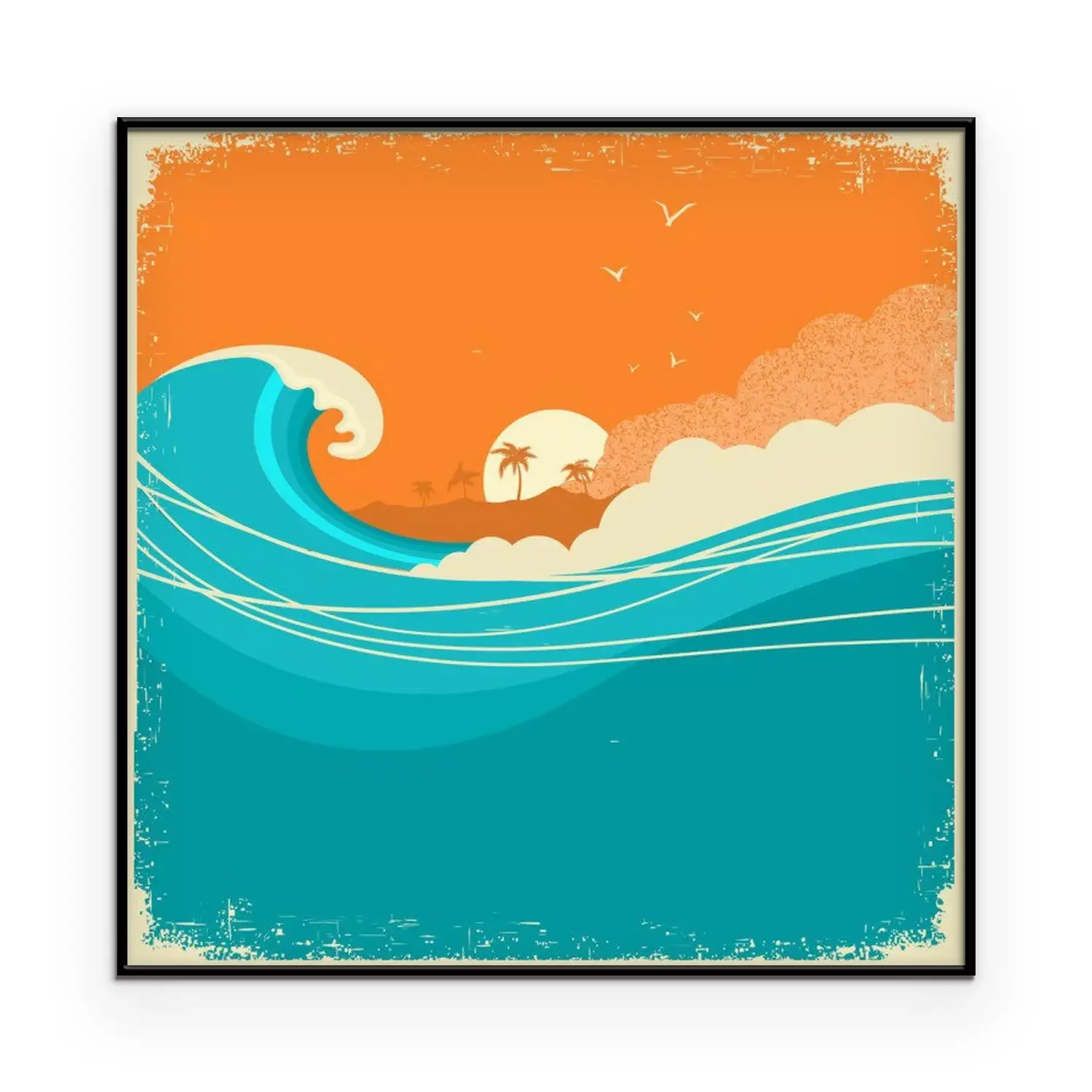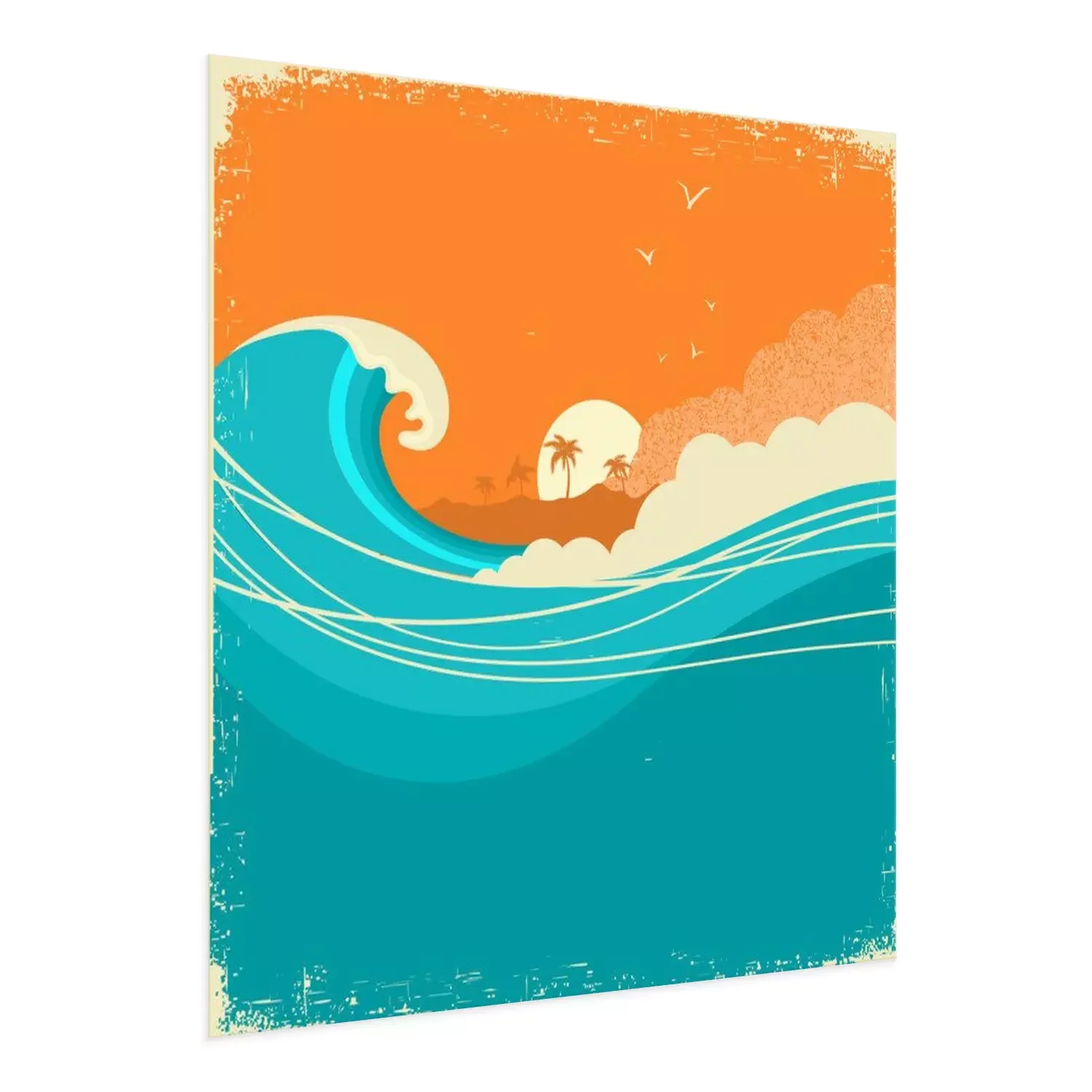Sea waves poster.Grunge illustration of sea landscape.