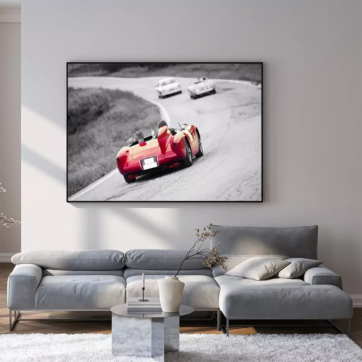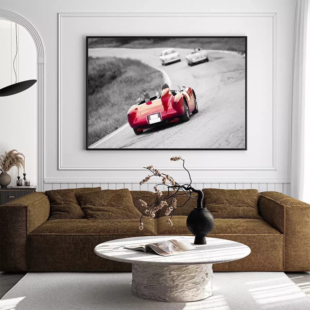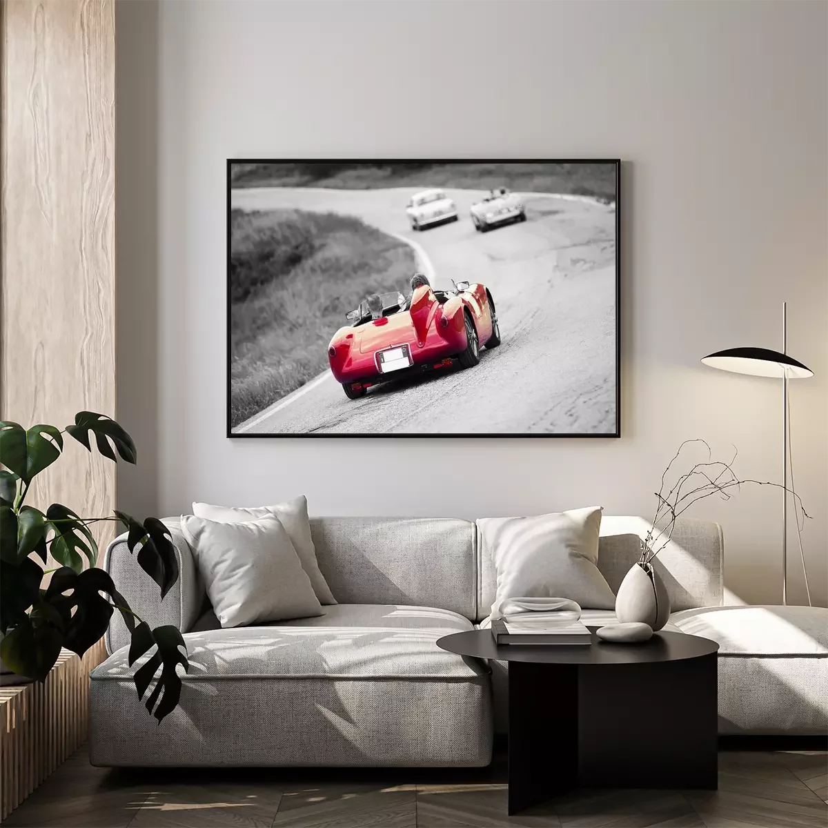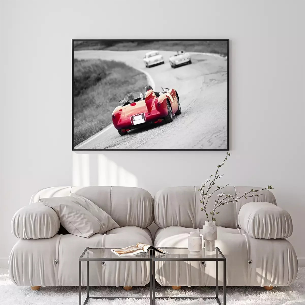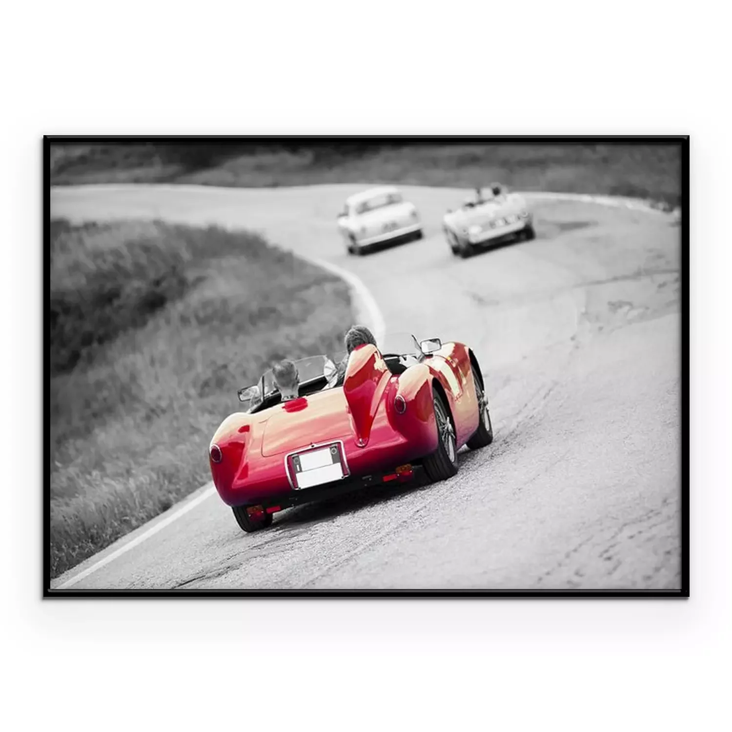 Poster: Vintage sport auto op zwarte en witte achtergrond