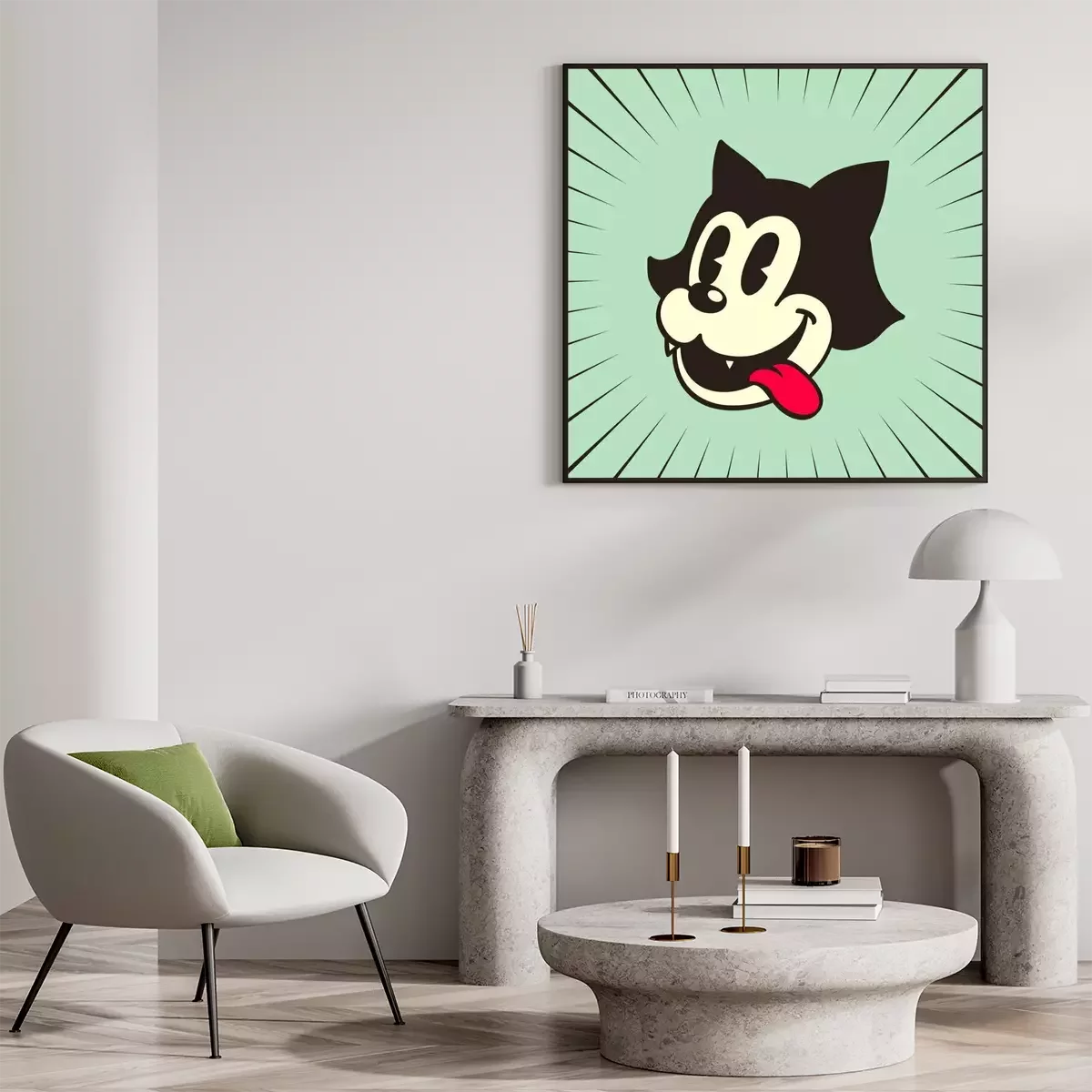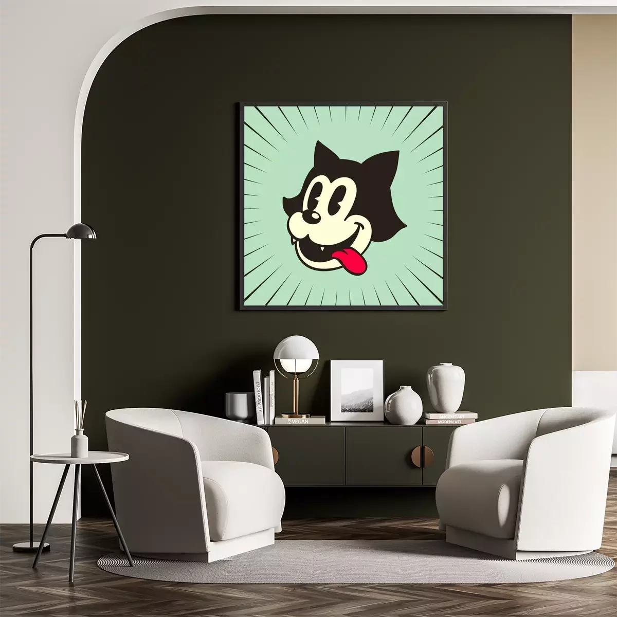 Poster: vintage toons: retro cartoon kat karakter glimlachen tong uit