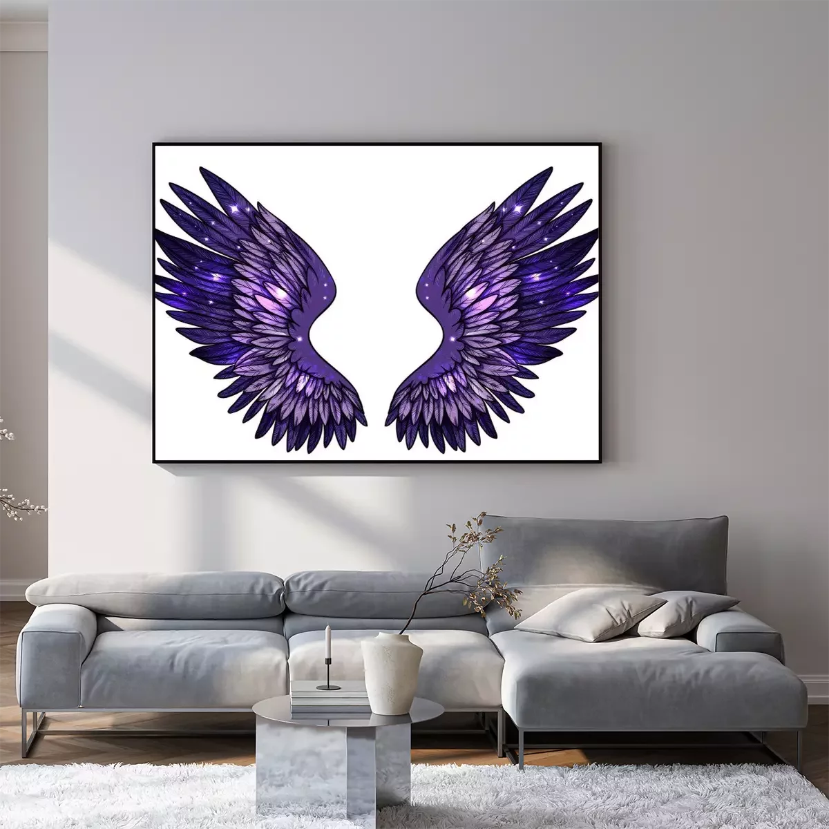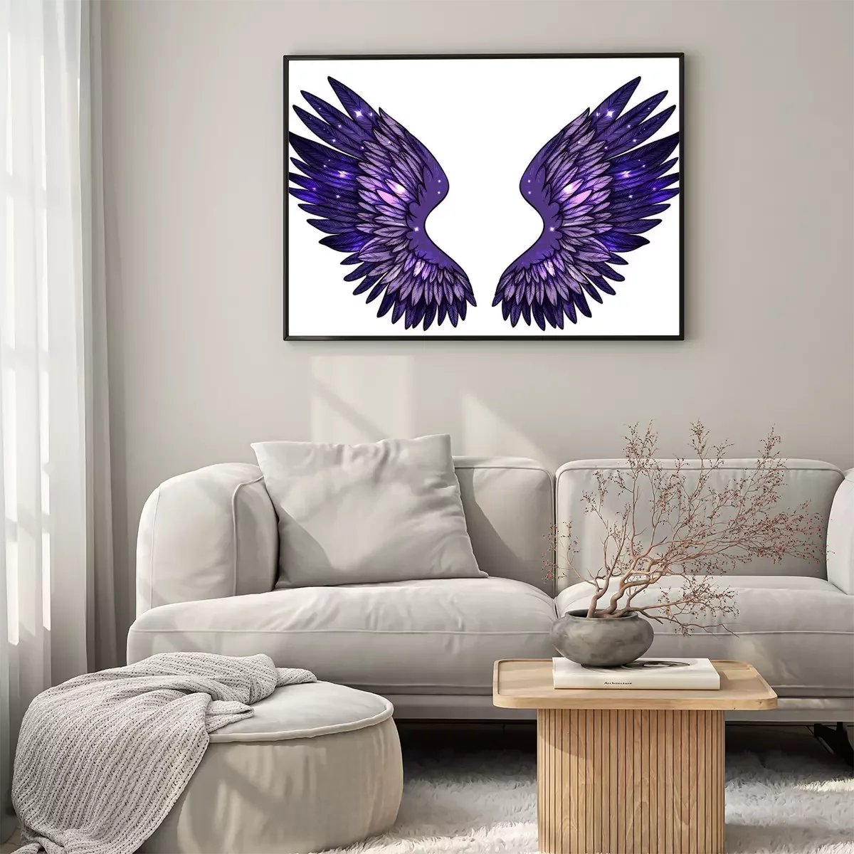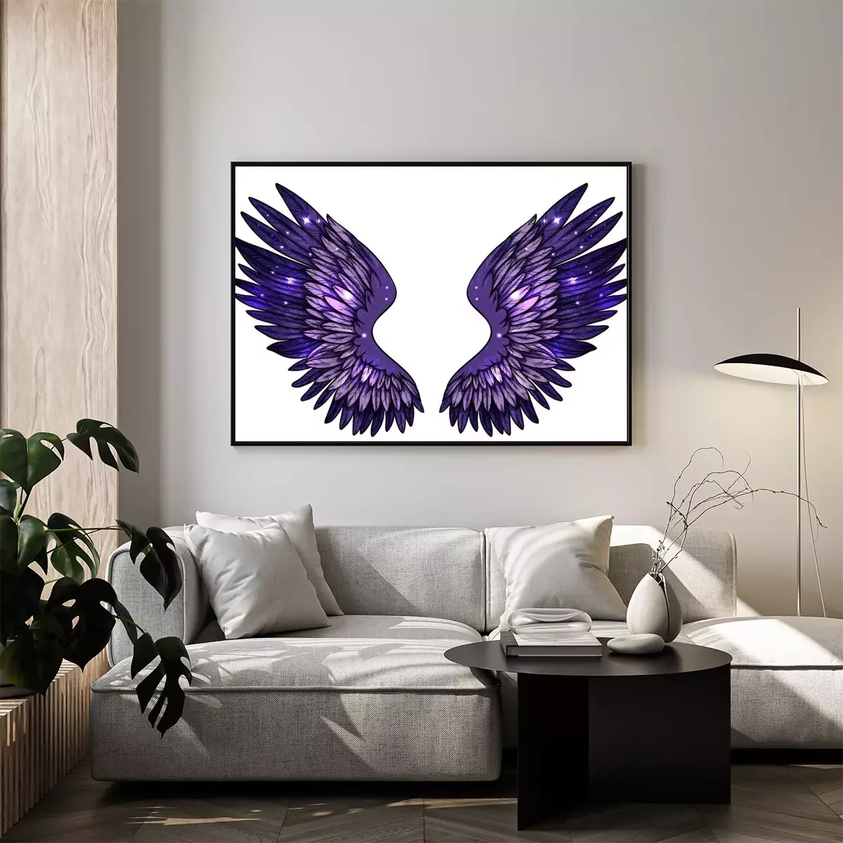 Poster: Violetblauwe vleugels die sterren reflecteren
