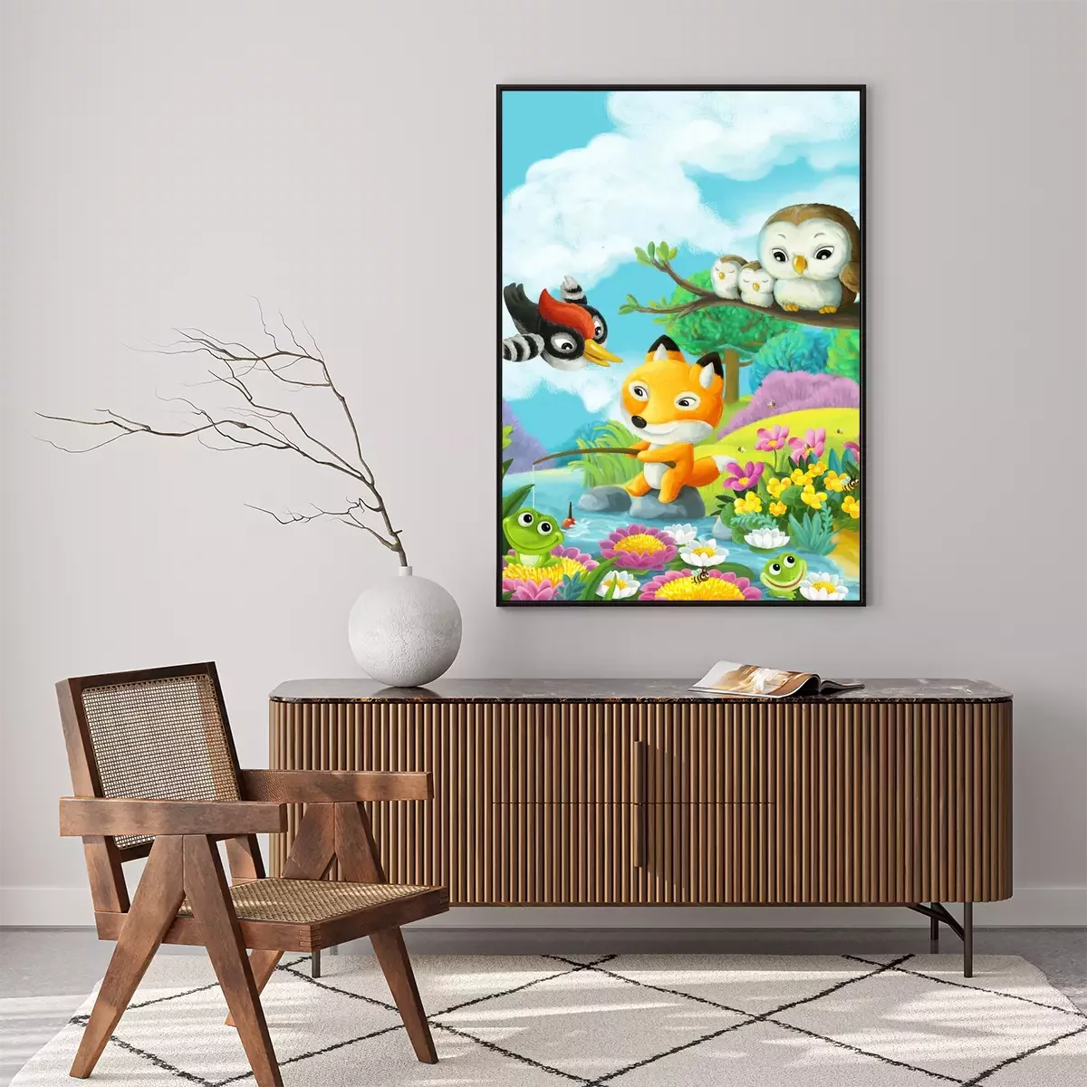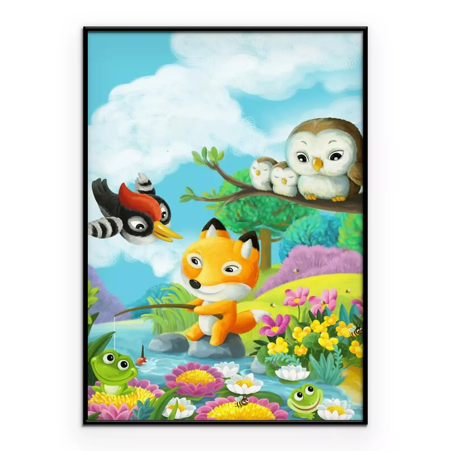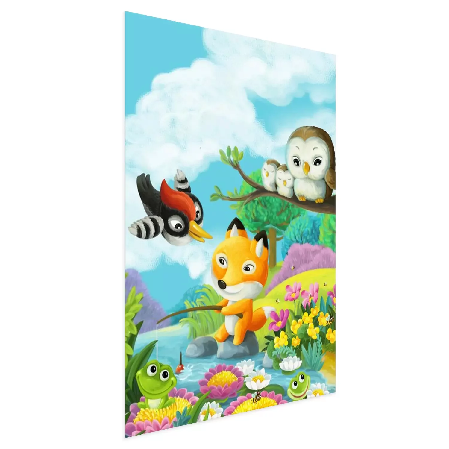 Poster Vissende vos met vrienden bij de rivier