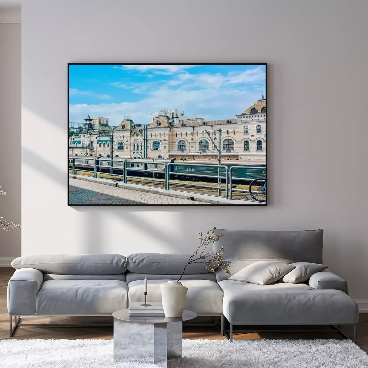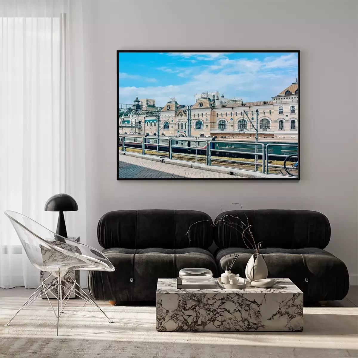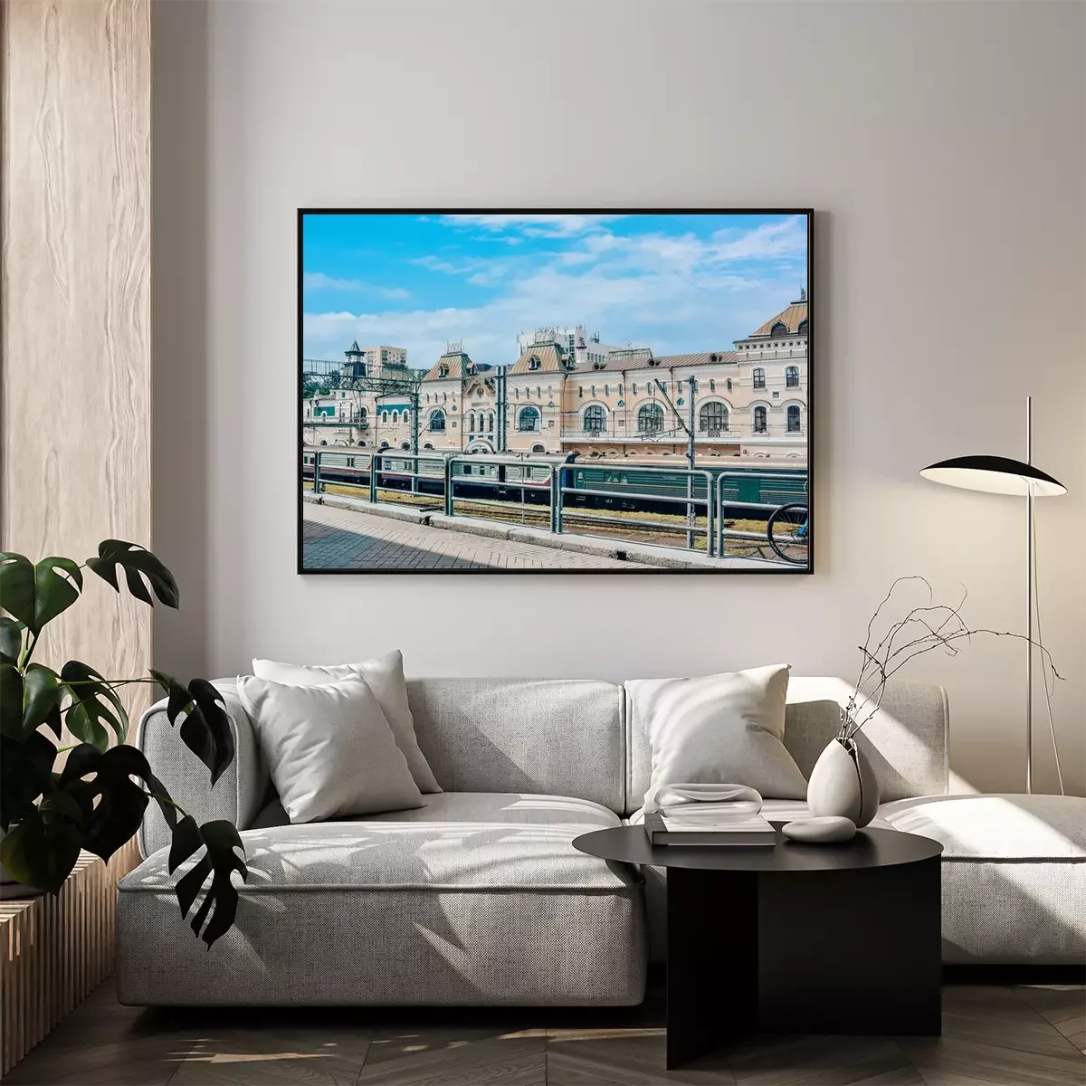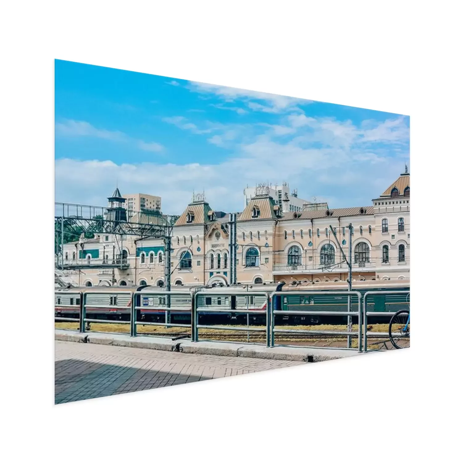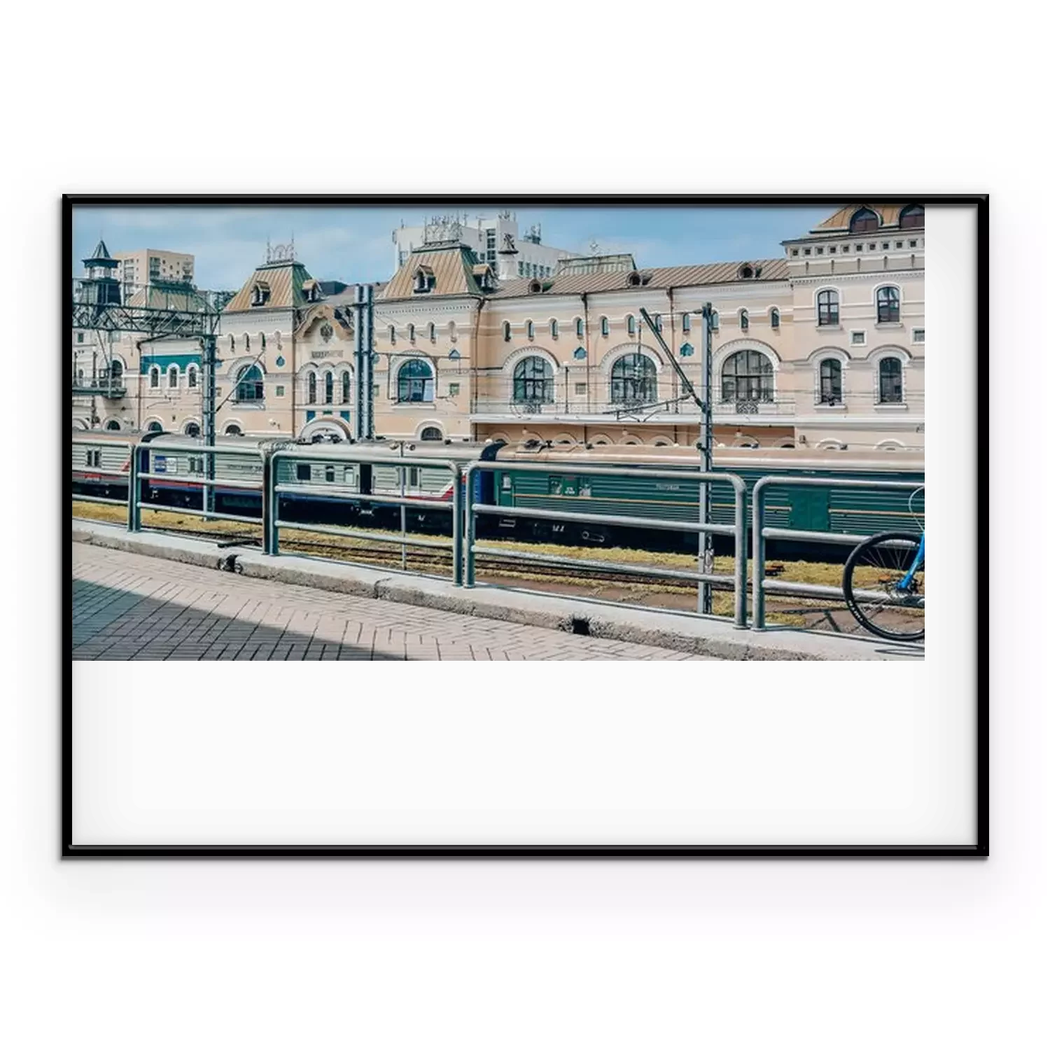Poster Vladivostok, Russia-August 15, 2015: platform station, railway station
