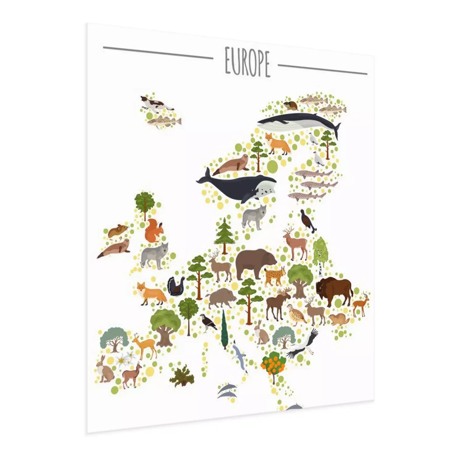 Poster Vlakke Europese flora en fauna kaart constructor elementen. Dieren, vogels en het zeeleven op witte grote reeks worden geïsoleerd die. Bouw uw eigen Infographics-collectie voor geografie