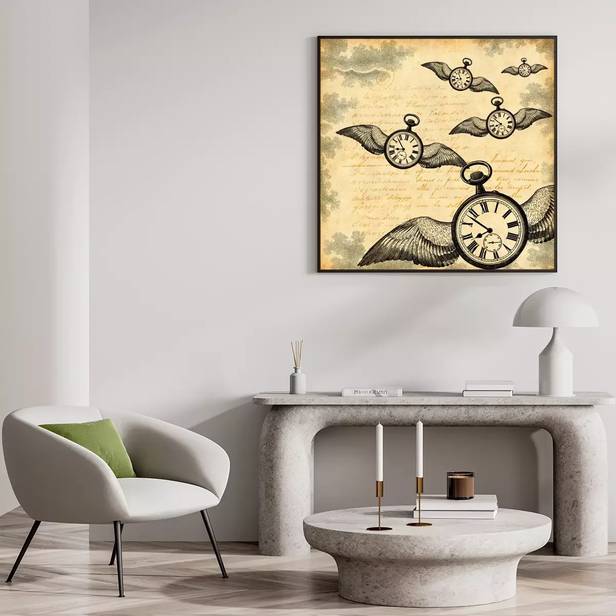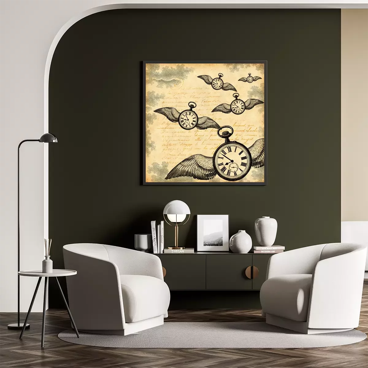 Poster Vliegende horloges in vintage stijl