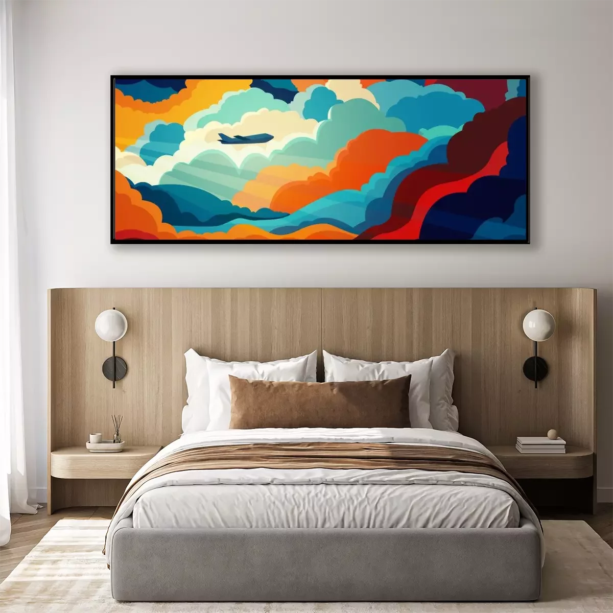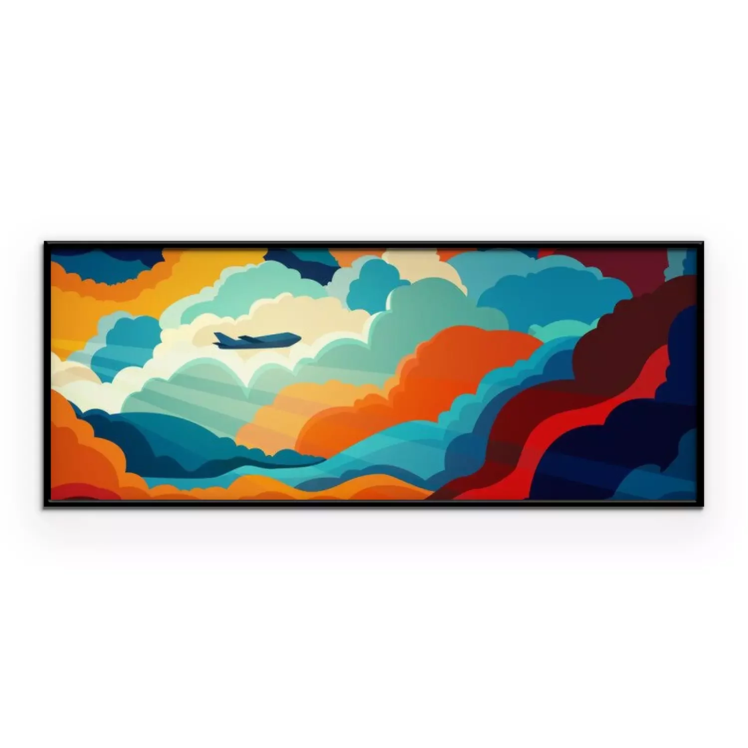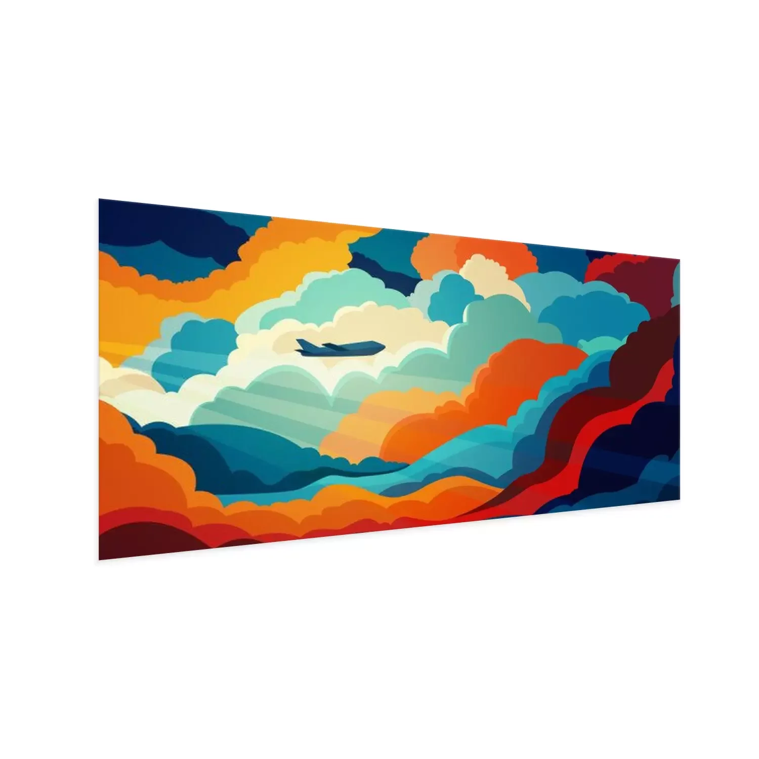 Poster: Vliegtuig op een achtergrond van zonsondergang