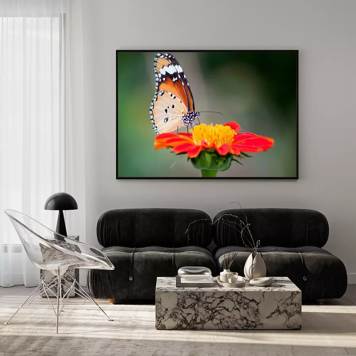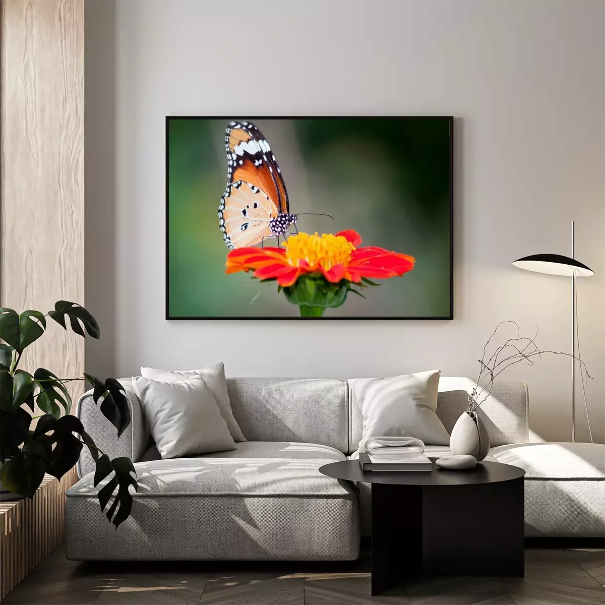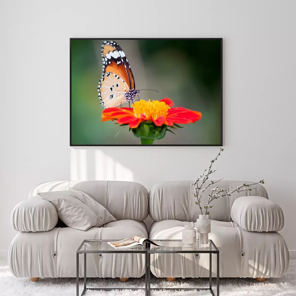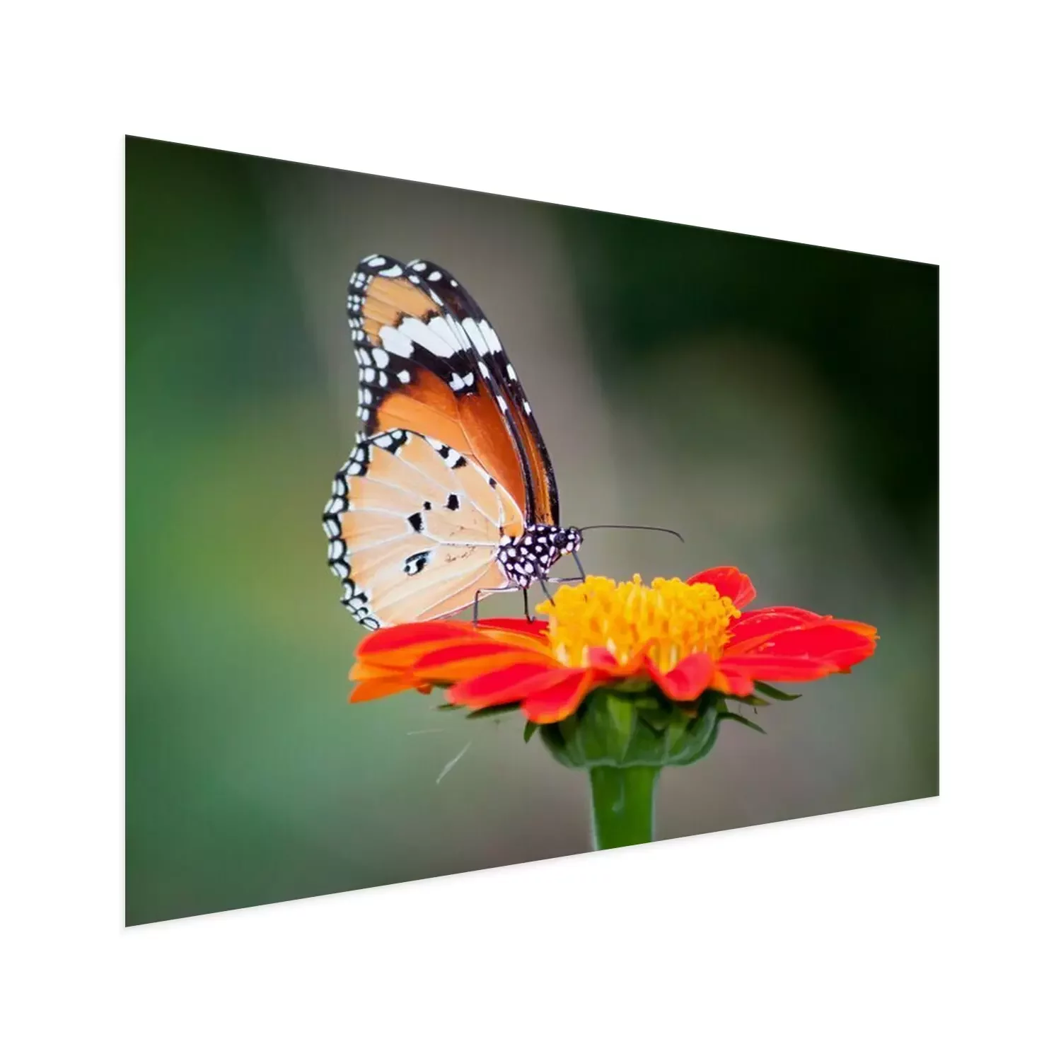 Poster: Vlinder aan een rode bloem