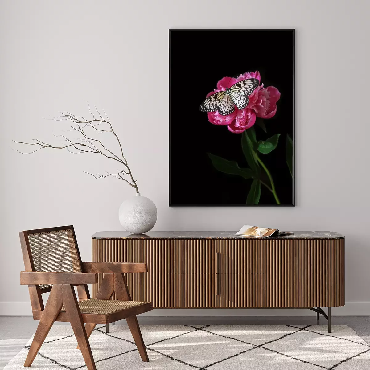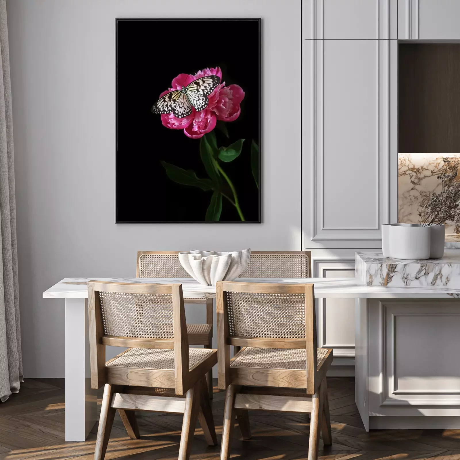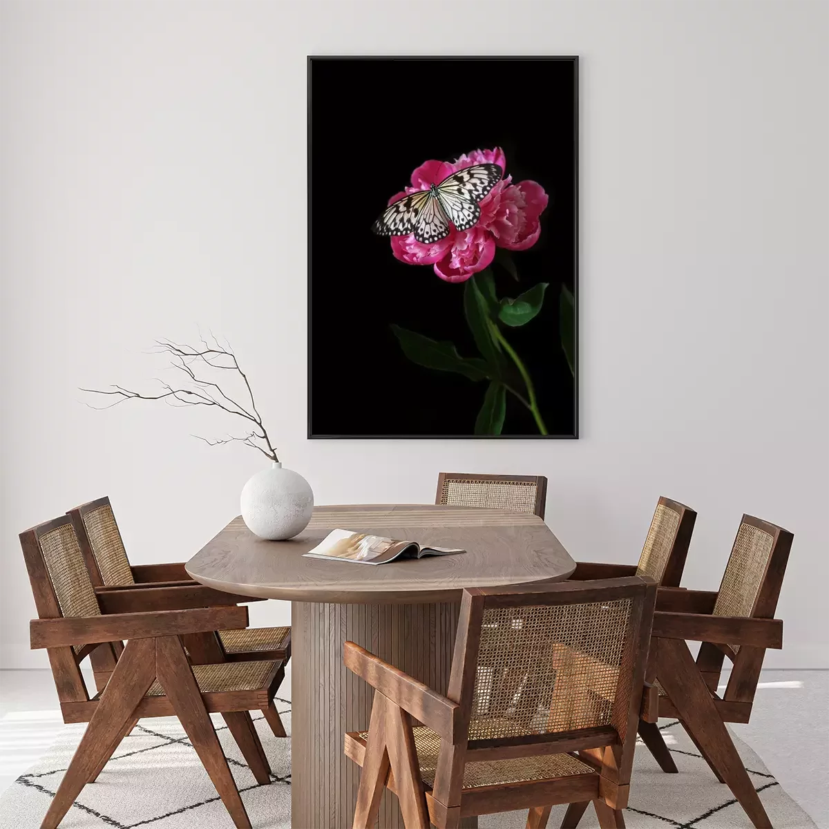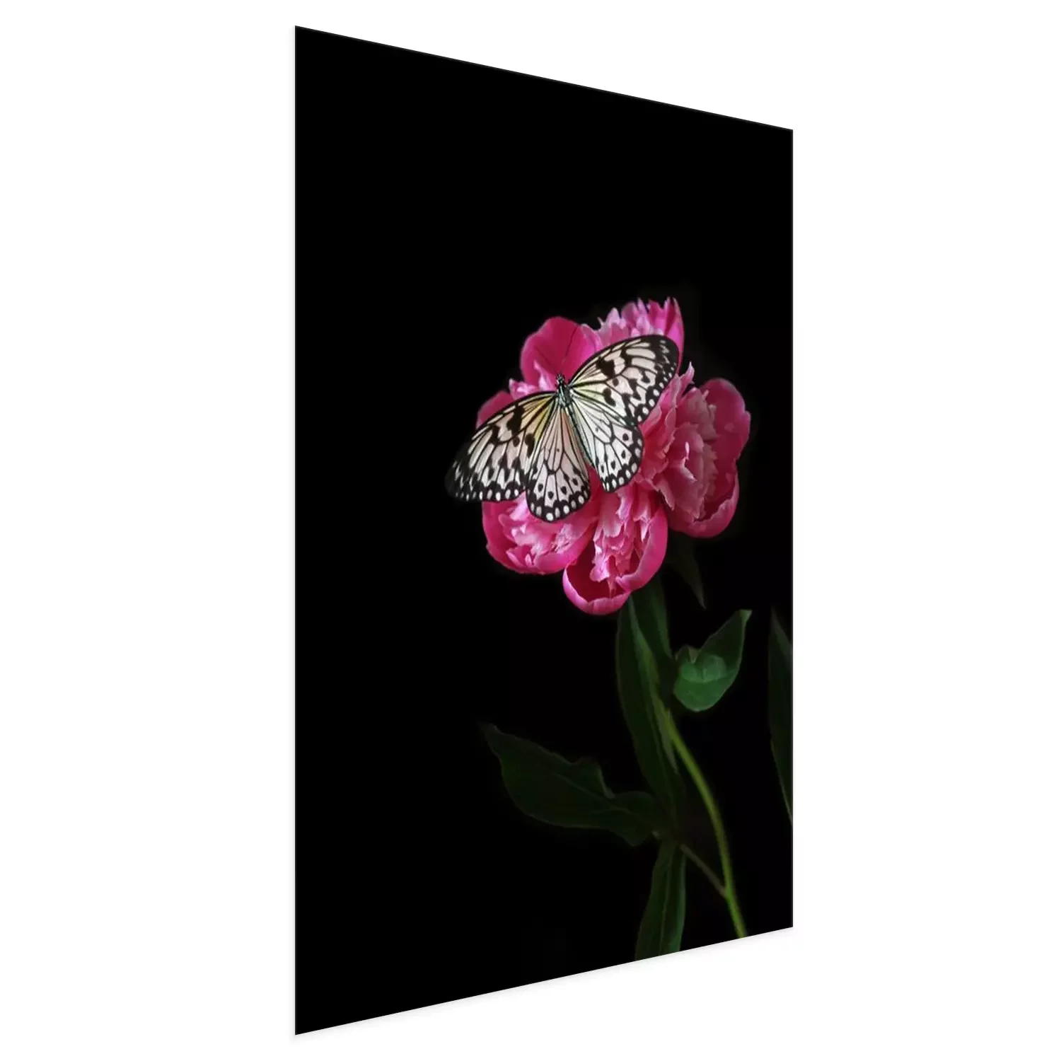 Poster: Vlinder aan een roze bloem