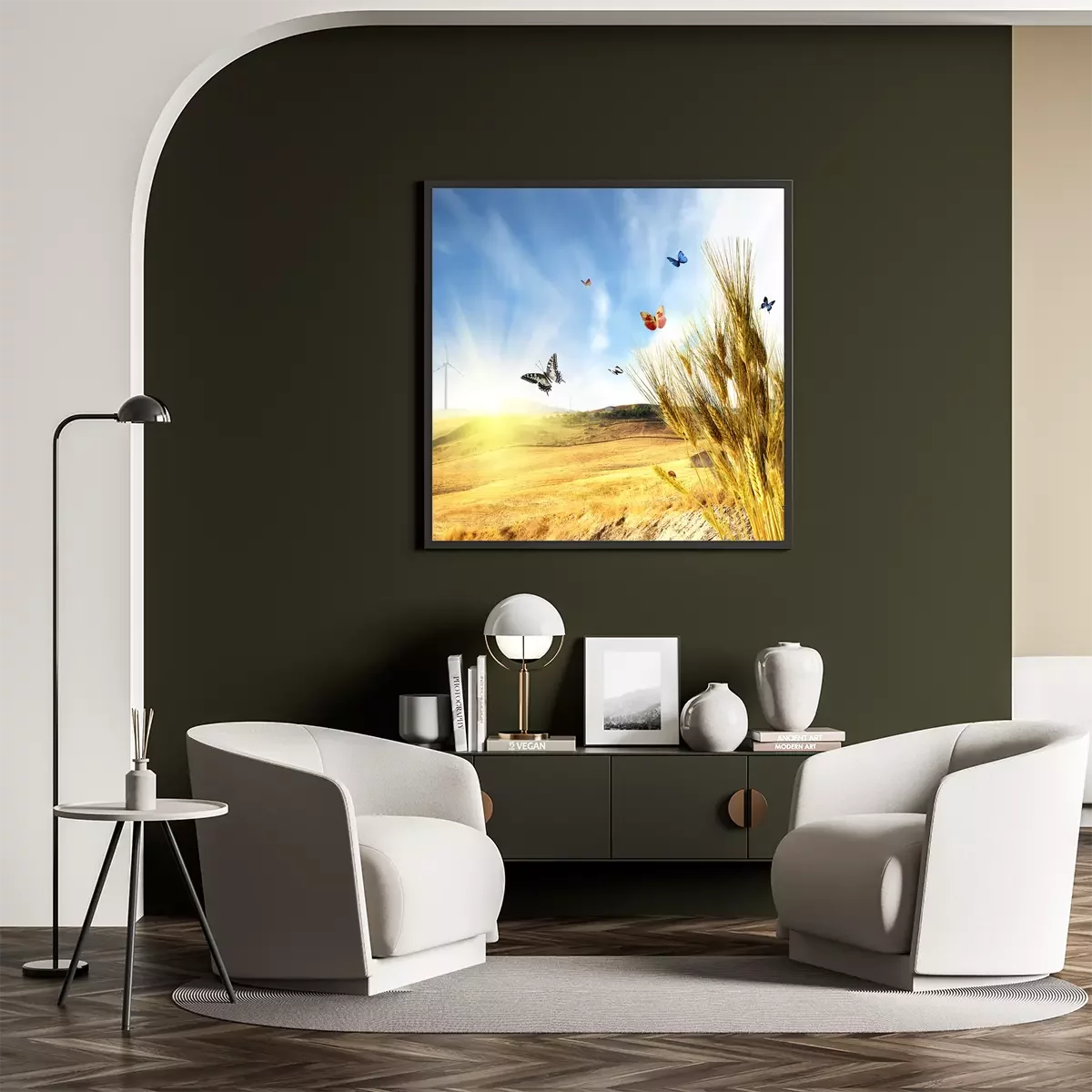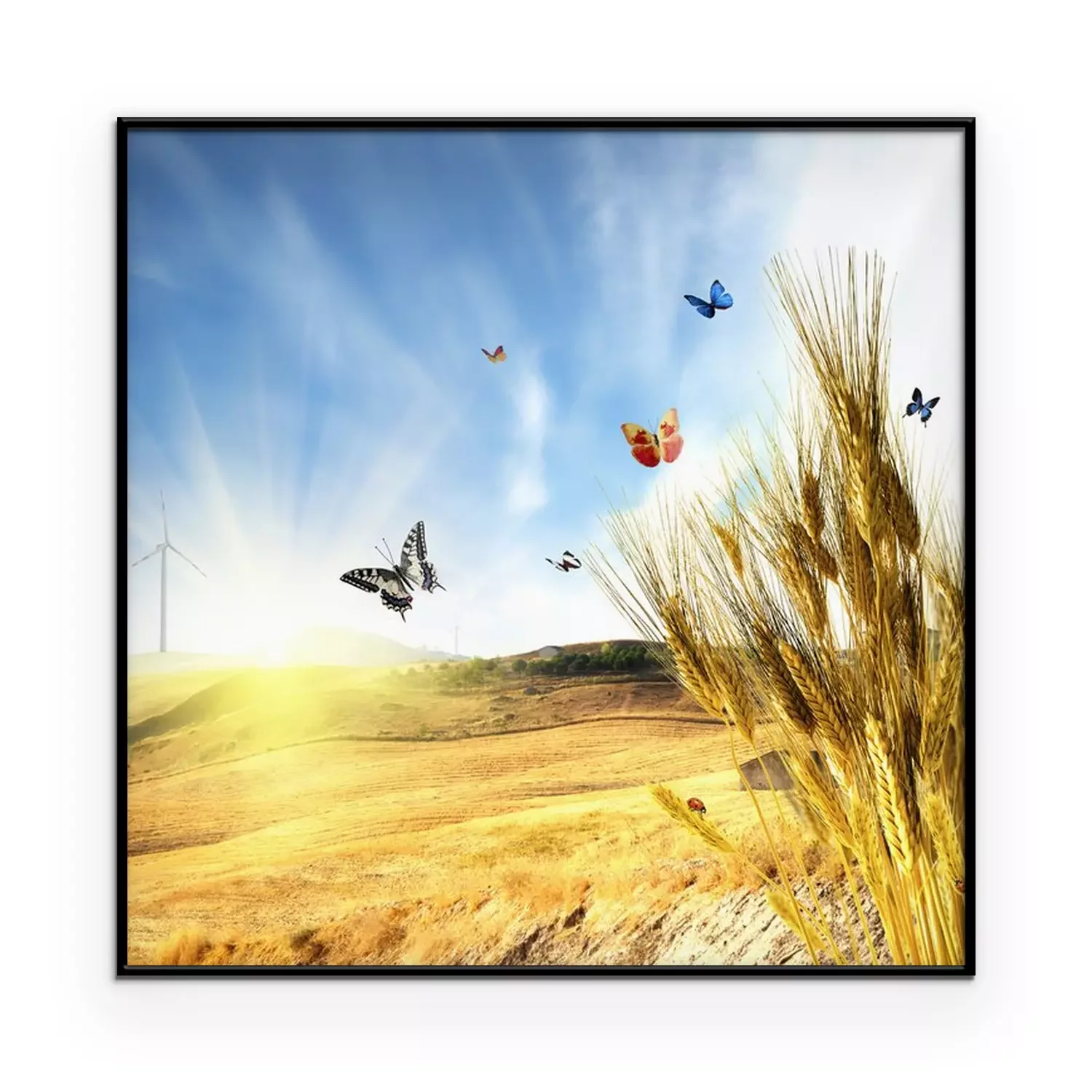 Poster: Vlinders en tarwe op de achtergrond van velden