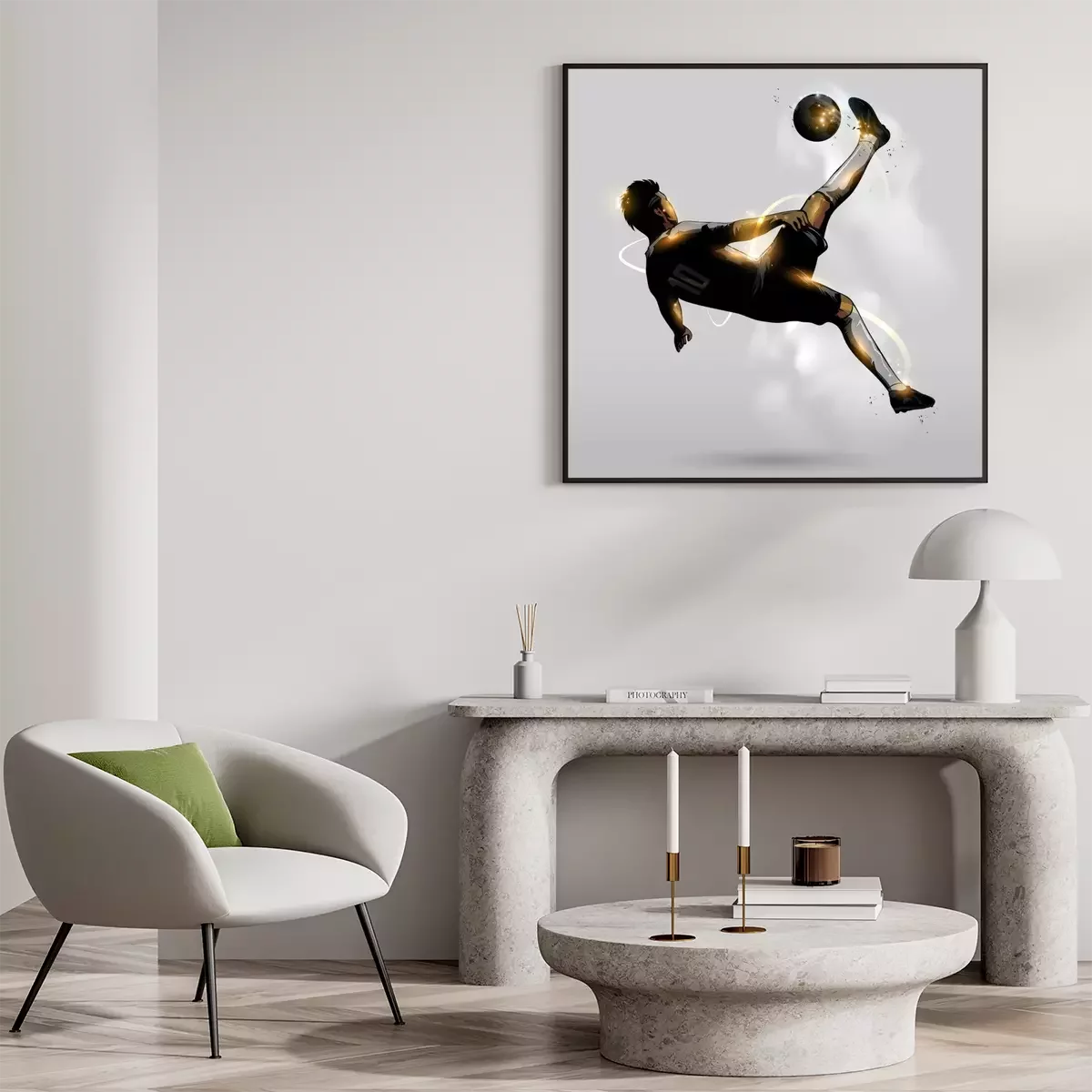 Poster: Voetbal 3D zwarte en gouden voetballer