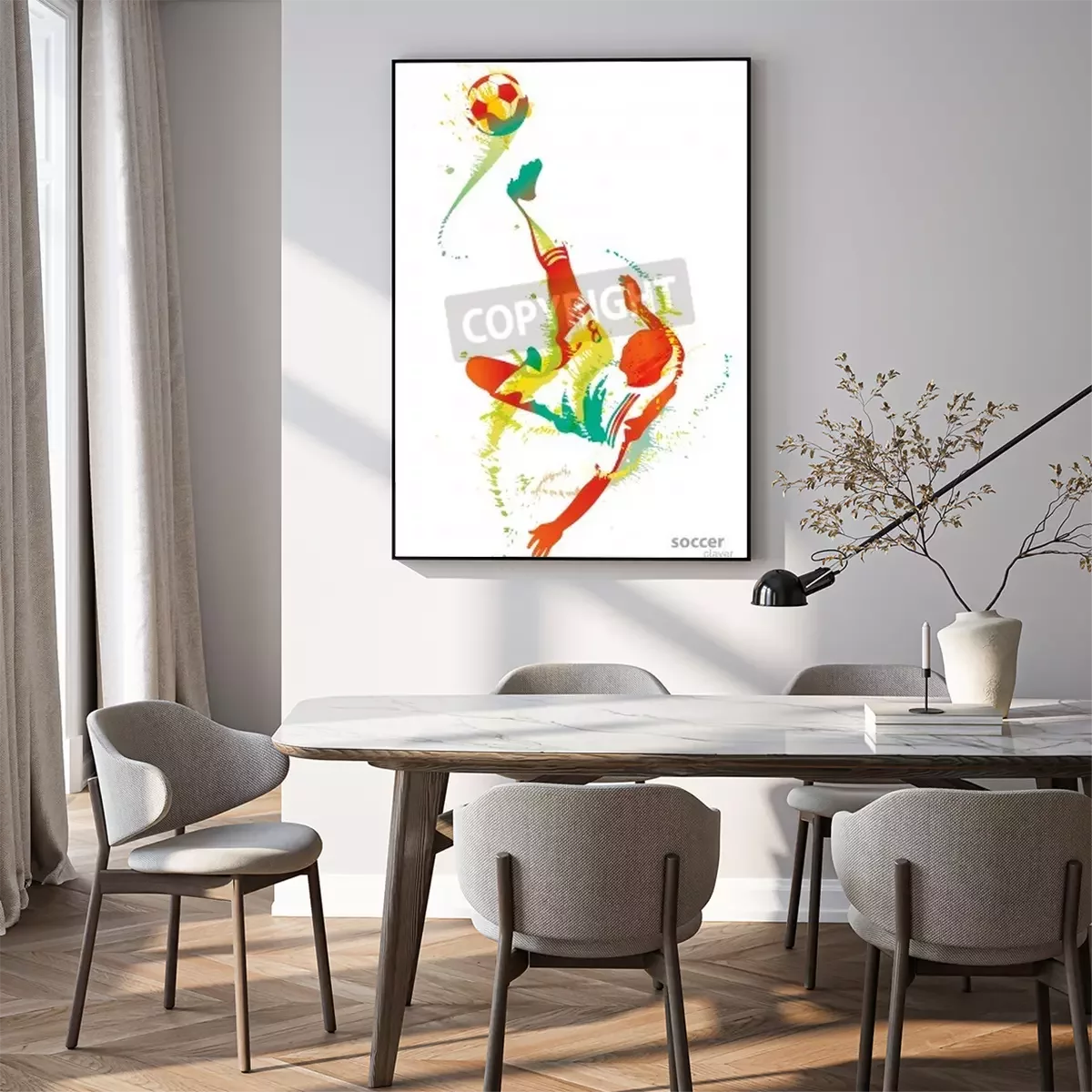 Poster: Voetbal voetballer beschilderd met verfspatten
