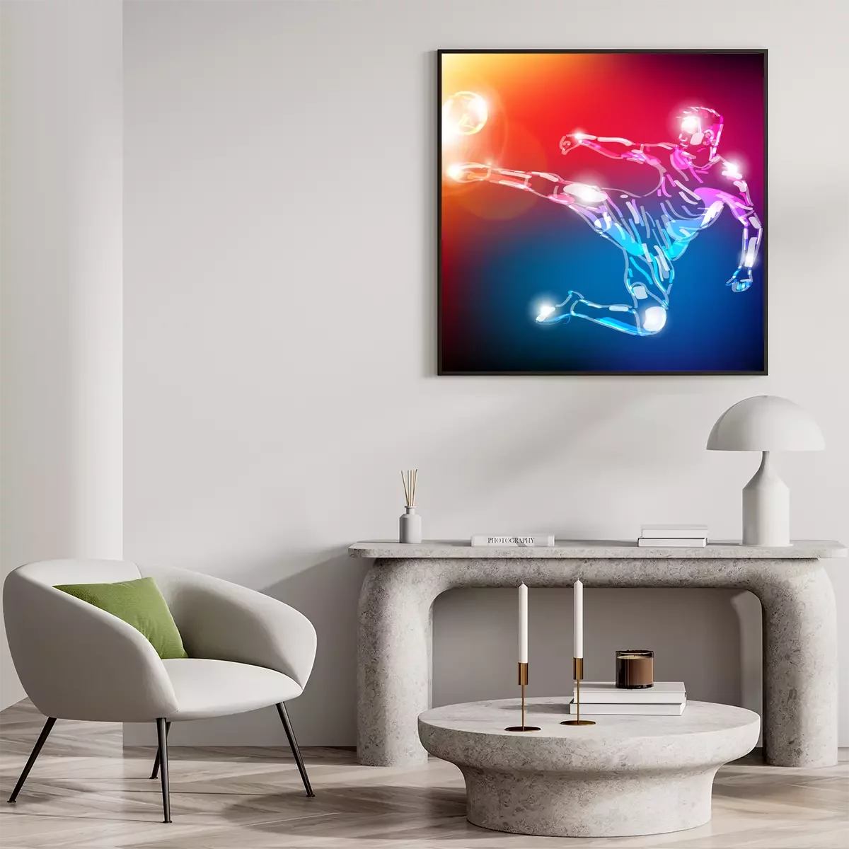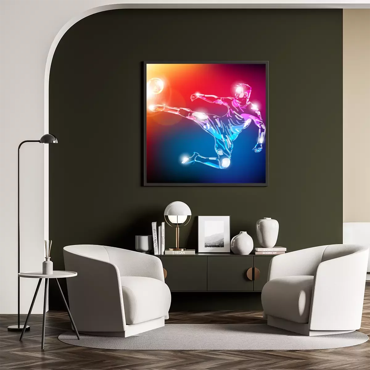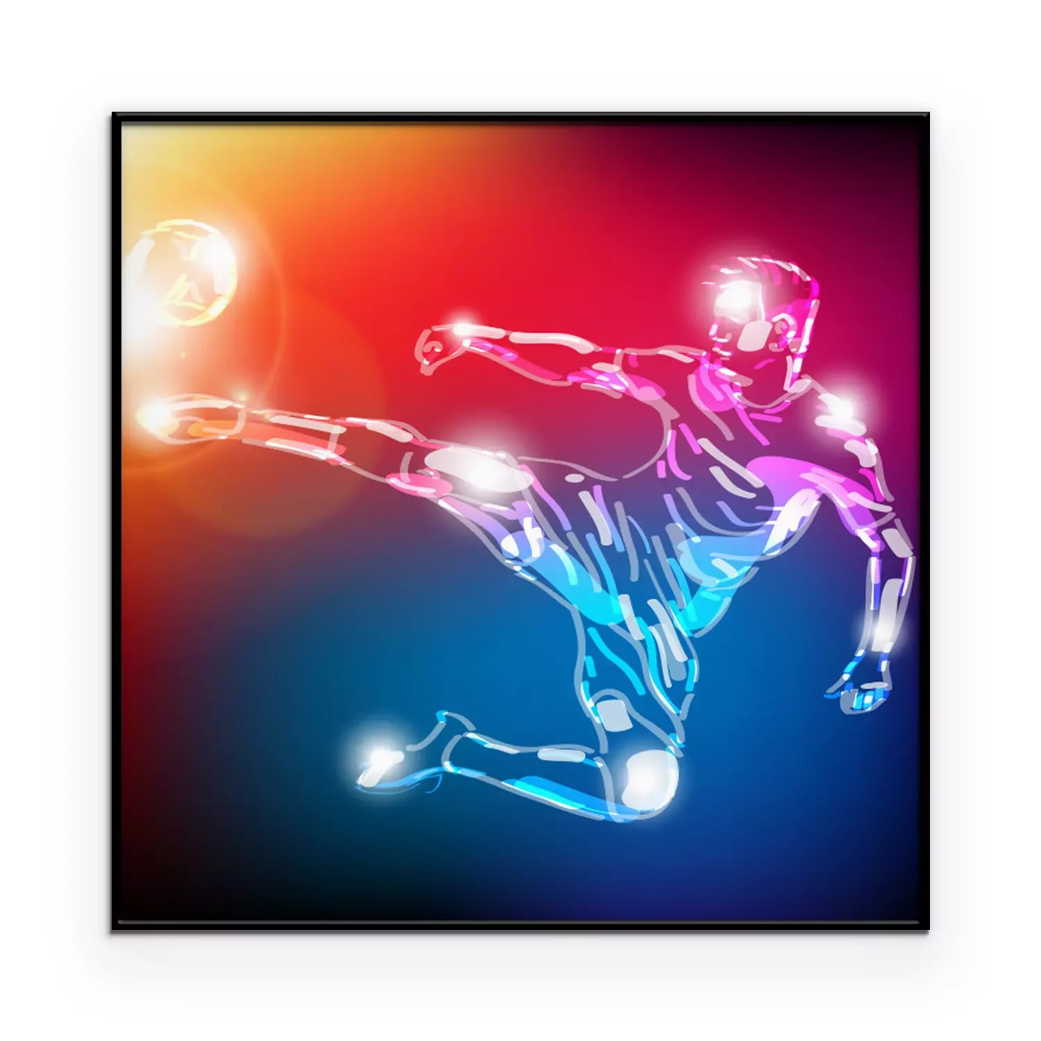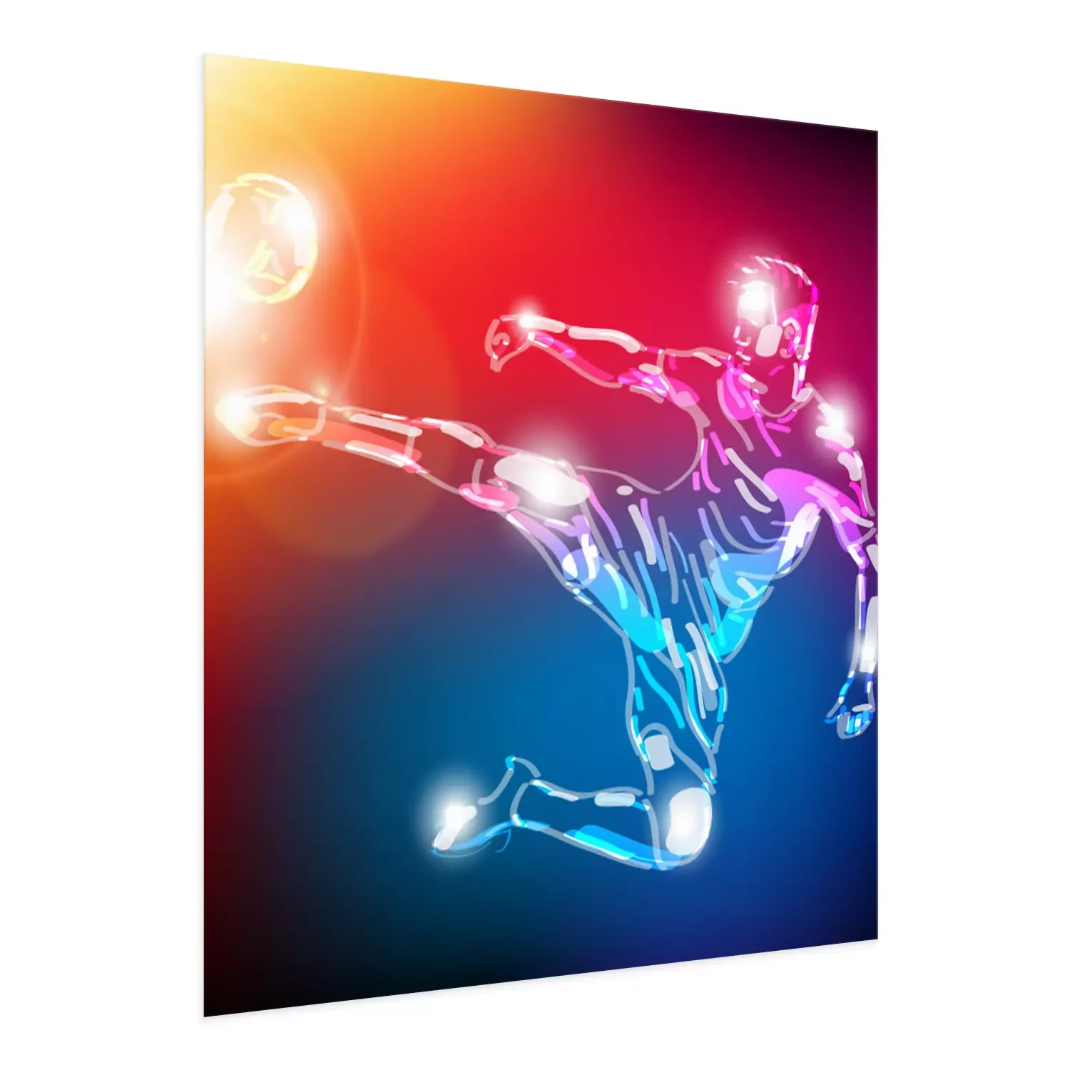 Silhouet van een voetballer op een kleurrijke achtergrond