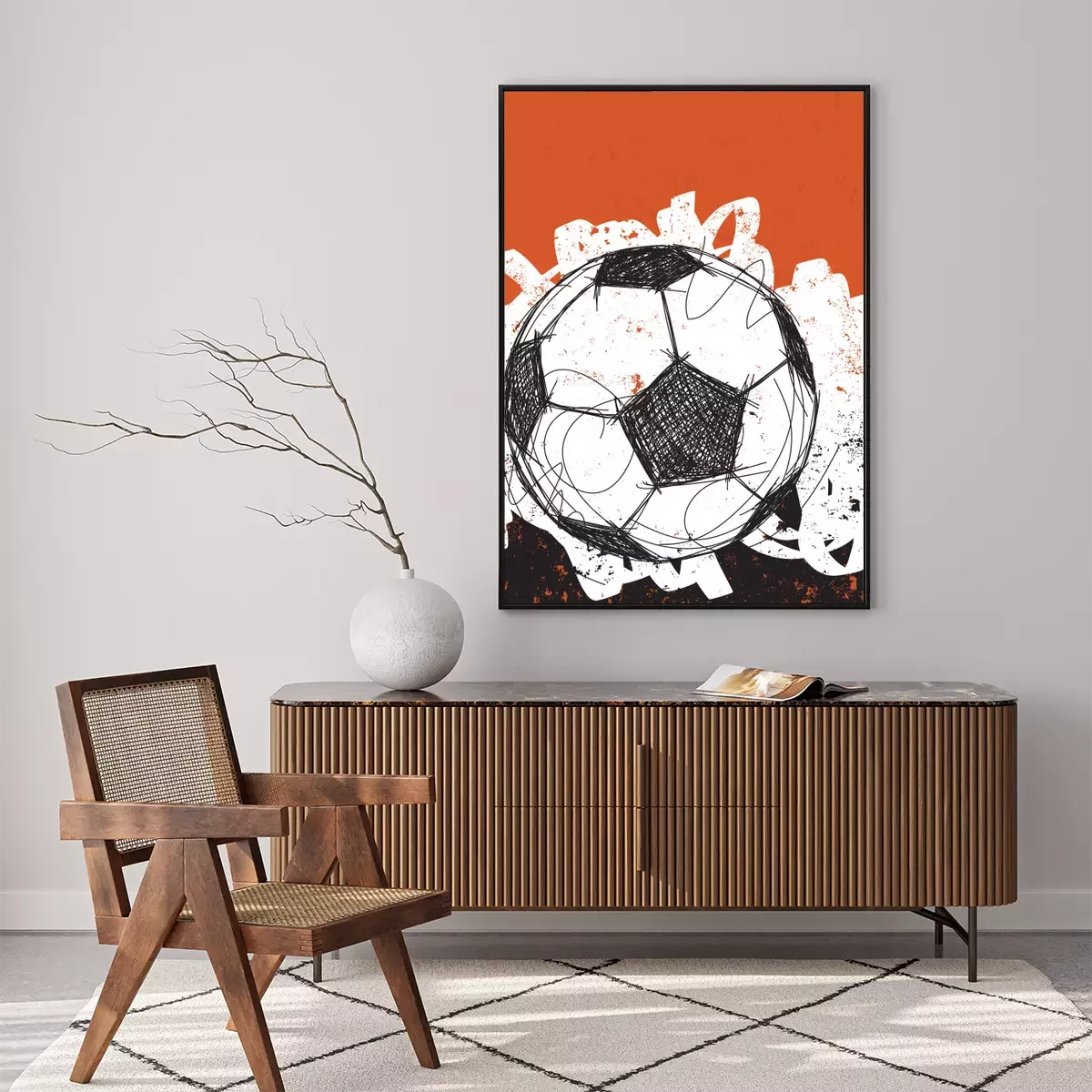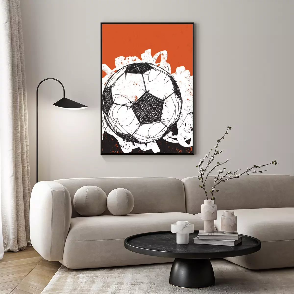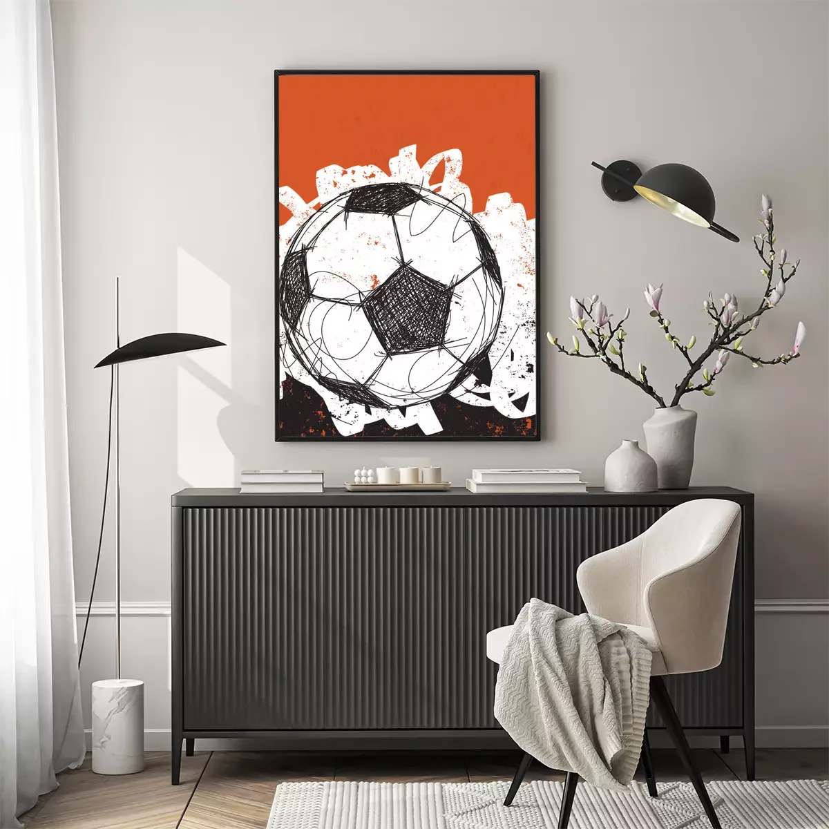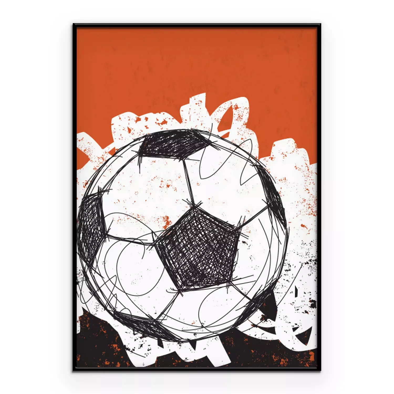 Poster: Voetbalafbeeldingen met een schets van de bal