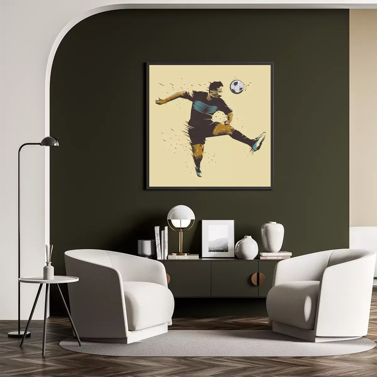Poster: Voetbalafbeeldingen met een voetballer in actie