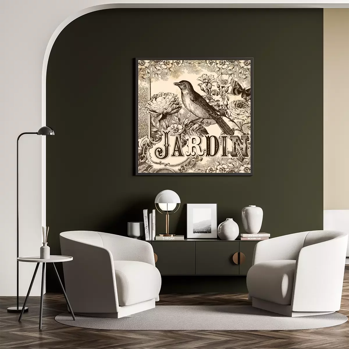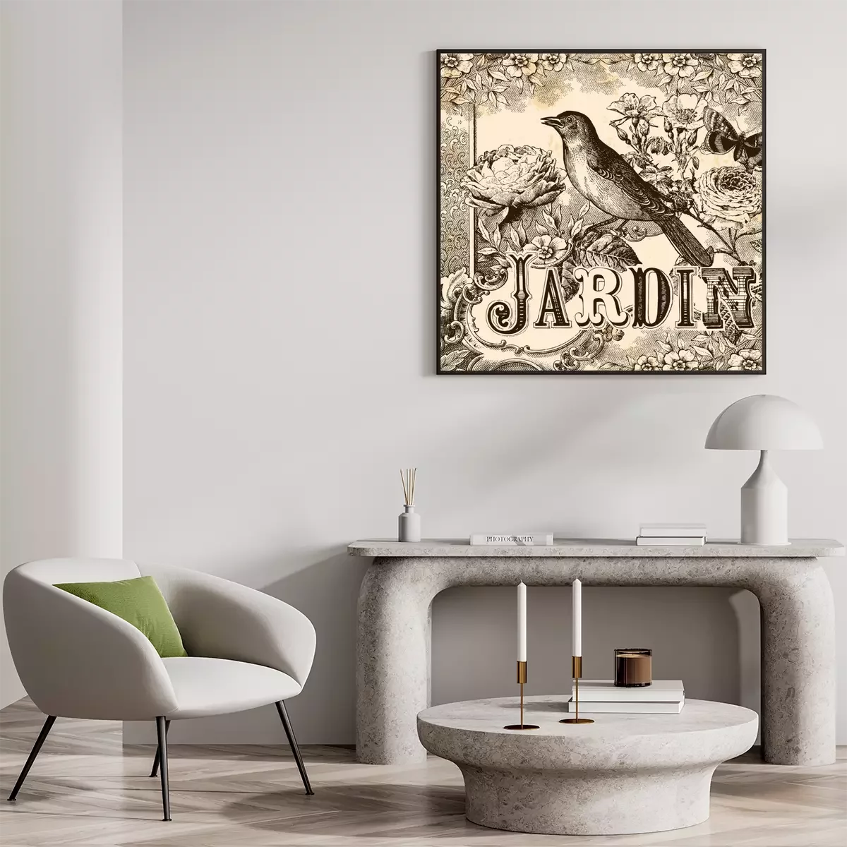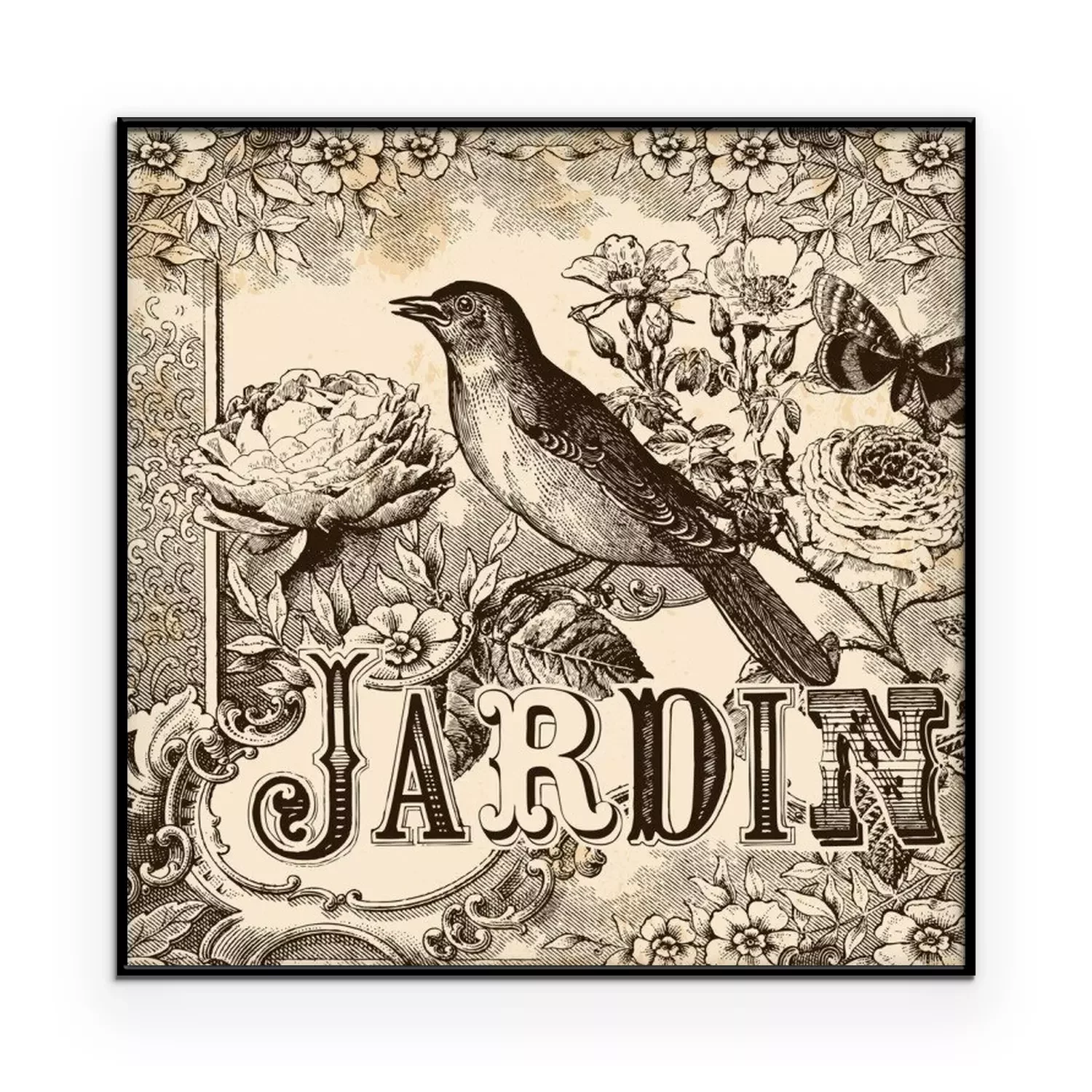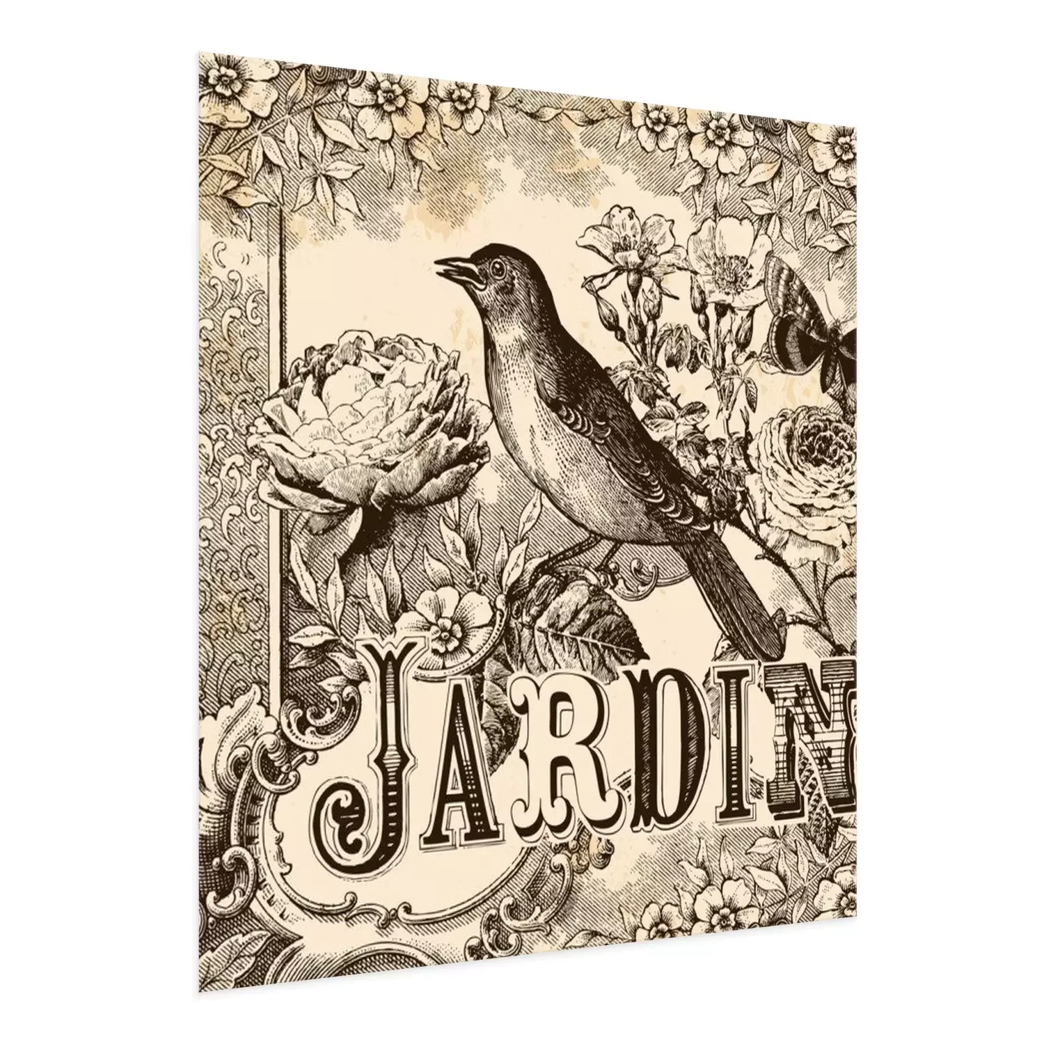 Poster: Vogel en bloemen in vintage illustratie